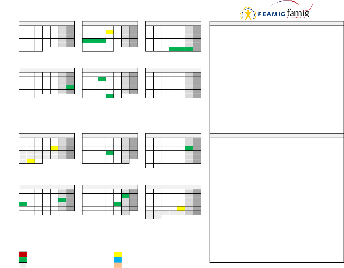 1º SEMESTRE 2024 - 110 dias letivos Seg Ter Qua Qui Sex Sáb Dom Seg Ter Qua Qui Sex Sáb Dom Seg Ter Qua Qui Sex Sáb Dom 02 a 14/01 - Período de Matrículas 1 2 3 4 5 6 7 1 2 3 4 1 2 3 01/02 - Início do semestre letivo 8 9 10 11 12 13 14 5 6 7 8 9 10 11 4 5 6 7 8 9 10 01/02 - Reuniões pedagógicas/preparação 15 16 17 18 19 20 21 12 13 14 15 16 17 18 11 12 13 14 15 16 17 05/02 - Início das aulas 22 23 24 25 26 27 28 19 20 21 22 23 24 25 18 19 20 21 22 23 24 12/02 a 14/02 - Carnaval 29 30 31 26 27 28 29 25 26 27 28 29 30 31 28/03 a 20/03 - Semana Santa 02/31 Férias 01/02 Início Semestre Letivo 28 a 30/03 - Semana Santa 13/04 a 19/04 - Semana de Avaliações Iniciais 12 a 14/02 - Carnaval 25/04 a 29/04 - Período de Requerimento e Pagamento da avaliação suplementar 01/05 - Dia do Trabalhador 02/05 a 08/05 - Suplementares das Avaliações Iniciais 30/05 - Corpus Christi Seg Ter Qua Qui Sex Sáb Dom Seg Ter Qua Qui Sex Sáb Dom Seg Ter Qua Qui Sex Sáb Dom 21/06 - Resultado de todos os trabalhos, avaliações e frequência 1 2 3 4 5 6 7 1 2 3 4 5 1 2 21/06 - Avaliação final unificada (Prática) - AVA 8 9 10 11 12 13 14 6 7 8 9 10 11 12 3 4 5 6 7 8 9 24/06 a 26/06 - Período de requerimento de revisão de notas e frequência; etc. 15 16 17 18 19 20 21 13 14 15 16 17 18 19 10 11 12 13 14 15 16 28/06 - Avaliação final (EAD) – AVA 22 23 24 25 26 27 28 20 21 22 23 24 25 26 17 18 19 20 21 22 23 29/06 e 30/06 - Cursos de Engenharia: Avaliação Final 29 30 27 28 29 30 31 24 25 26 27 28 29 30 01/07 - Avaliação final (Presencial/Remoto) - Sala 21 Tiradentes 01 -Dia do trabalhador 02/07 - Resultado da avaliação final unificada (Presencial/Remoto/Prática) 30 - Corpos Cristi 03/07 - Período de Requerimento e Pagamento da avaliação suplementar 08/07 - Aplicação da avaliação suplementar da final (Prática) - AVA 08/07 - Aplicação da avaliação suplementar da final (Presencial/Remoto) - Sala 09/07 - Avaliação final suplementar (EAD) – AVA 10/07 - Resultado Final 10/07 a 12/07 - Reuniões de acordo com a CCT/Treinamentos/Análise do PPC/ etc 12/07 - Término do período letivo 2º SEMESTRE 2024 - 98 dias letivos Seg Ter Qua Qui Sex Sáb Dom Seg Ter Qua Qui Sex Sáb Dom Seg Ter Qua Qui Sex Sáb Dom 01 a 12/07 - Período de Matrículas 1 2 3 4 5 6 7 1 2 3 4 1 30/07 - Início do semestre letivo 8 9 10 11 12 13 14 5 6 7 8 9 10 11 2 3 4 5 6 7 8 31/07 - Reuniões pedagógicas/preparação 15 16 17 18 19 20 21 12 13 14 15 16 17 18 9 10 11 12 13 14 15 01/08 - Início das aulas 22 23 24 25 26 27 28 19 20 21 22 23 24 25 16 17 18 19 20 21 22 15/08 - Feriado do dia da Assunção de Nossa Senhora 29 30 31 26 27 28 29 30 31 23 24 25 26 27 28 29 05/10 a 11/10 - Semana de Avaliações Iniciais 30 14/10 - Celebração do dia dos Professores(as) 12 - Término do 1 Semestre Letivo 15 - Feriado Municipal Nossa Sra. 21/10 a 23/10 - Período de Requerimento e Pagamento da avaliação suplementar 13 a 29 Recesso CCT 26/10 a 01/11 - Provas Suplementar da Inicial 30 - Início do 2 Semestre Letivo 15/11 - Dia da Proclamação da República 22/11 - Resultado de todos os trabalhos, avaliações e frequência 25/11 a 27/11 - Período de requerimento de revisão de notas e frequência Seg Ter Qua Qui Sex Sáb Dom Seg Ter Qua Qui Sex Sáb Dom Seg Ter Qua Qui Sex Sáb Dom 28/11 - Avaliação final unificada (Prática) - AVA 1 2 3 4 5 6 1 2 3 1 29/11 - Avaliação final (EAD) – AVA 7 8 9 10 11 12 13 4 5 6 7 8 9 10 2 3 4 5 6 7 8 30/11 - Cursos de Engenharia: Avaliação Final 14 15 16 17 18 19 20 11 12 13 14 15 16 17 9 10 11 12 13 14 15 02/12 - Avaliação final (Presencial/Remoto) - Sala 21 22 23 24 25 26 27 18 19 20 21 22 23 24 16 17 18 19 20 21 22 03/12 - Resultado da avaliação final unificada (Presencial/Remoto/Prática) 28 29 30 31 25 26 27 28 29 30 23 24 25 26 27 28 29 04/12 e 05/12 - Período de Requerimento e Pagamento da avaliação suplementar 30 31 09/12 - Aplicação da avaliação suplementar da final (Presencial/Remoto) - Sala 10/12 - Aplicação da avaliação suplementar da final (Prática) - AVA 20 Término do semestre letivo 11/12 - Avaliação final suplementar (EAD) – AVA Celebrado no dia 14/10. 13/12 - Resultado Final 16/12 a 20/12 - Reuniões de acordo com a CCT/Treinamentos/Análise do PPC/ etc. 20/12 - Término do período letivo 14 de Abril: Dia do Índio 05 de junho: Dia Mundial do Meio Ambiente 13 de maio: Dia da Abolição da Escravatura 20 de novembro: Dia Nacional da Consciência Negra Sábados Letivos Início e término do semestre Feriados Período de (re)matrícula Recesso Semana de provas Total: 208 dias letivos CALENDÁRIO 2024 FEVEREIRO - 18 dias letivos MARÇO - 19 dias letivos ABRIL - 22 dias letivos MAIO - 21 dias letivos JUNHO - 20 dias letivos JANEIRO 02 a 14.01 Período de Matrícula AGOSTO - 21 dias letivos SETEMBRO - 21 dias letivos 7 - Independência do Brasil JULHO - 12 dias letivos 15 - Feriado Proclamação da Rep. 08 Feriado Imaculada Conceição OUTUBRO - 22 dias letivos 12 Nossa Sra Aparecida NOVEMBRO - 20 dias letivos 02 - Feriado Finados DEZEMBRO - 14 dias letivos 15 Dia dos(as) Professores(as)