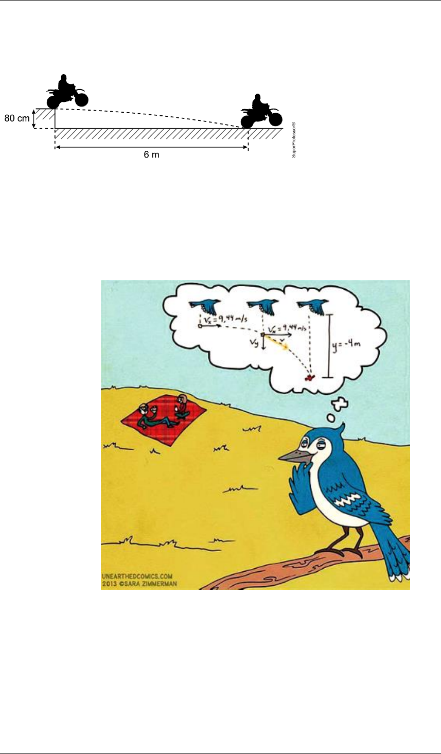 Super Professor Página 1 de 11 1. (Mackenzie 2023) A figura abaixo representa um motociclista em movimento horizontal que decola de um ponto 80 cm acima do solo, pousando a 6 m de distância. Adote g = 10m/s 2 A velocidade, no momento da decolagem, em metros por segundo, é igual a a) 5. b) 10. c) 15. d) 20. e) 25. 2. (Fuvest-Ete 2023) Segundo o quadrinho, qual será a distância aproximada, a partir do lançamento, percorrida pelo pássaro na horizontal no momento em que o "projétil" atingir o alvo? a) x 6mΔ b) 6m x 8mΔ c) 8m x 10mΔ d) 10m x 12mΔ e) x 12mΔ Super Professor Página 2 de 11 3. (Famerp 2022) Dois gatos estão brincando num local onde 2g 10m s , conforme representado na imagem. O gato 1 se encontra sobre o tampo de uma mesa, a 0,8 m do chão. O gato 2, que está no chão, na mesma vertical Q que passa pelo gato 1, inicia uma corrida, a partir do repouso, com aceleração 2a constante. No mesmo instante, o gato 1 salta horizontalmente para frente, com velocidade horizontal 1v 1,5m s, levando 0,40 s para atingir o chão. Por fim, os dois gatos chegam ao ponto P no mesmo instante. Para a resolução da questão, despreze as dimensões dos gatos. a) Após saltar, qual era o módulo da aceleração do gato 1, em 2m s ? Qual era o módulo da componente vertical de sua velocidade, em m/s, quando atingiu o chão? b) Quanto vale a distância d, em metros, entre a linha vertical Q, de onde os dois gatos partiram, e o ponto P, onde se encontraram? Qual era a aceleração do gato 2, em 2m s , para que ambos chegassem a esse ponto P no mesmo instante? 4. (Unesp 2022) Em treinamento para uma prova de trave olímpica, uma atleta faz uma saída do aparelho, representada em quatro imagens numeradas de I a IV, em que o ponto vermelho representa o centro de massa do corpo da atleta. A imagem I representa o instante em que a atleta perde contato com a trave, quando seu centro de massa apresenta velocidade horizontal v0. A imagem IV representa o instante em que ela toca o solo. Considerando que nesse movimento somente a força peso atua sobre a atleta e adotando 2g 10 m s , o valor de v0 é a) 6,0 m/s. b) 3,0 m/s. c) 5,0 m/s. d) 2,0 m/s. e) 4,0 m/s. 5. (Albert Einstein - Medicina 2021) Em uma aula de tênis, um aprendiz, quando foi sacar, Super Professor Página 3 de 11 lançou a bola verticalmente para cima e a golpeou com a raquete exatamente no instante em que ela parou no ponto mais alto, a 2,45 m de altura em relação ao piso da quadra. Imediatamente após esse movimento, a bola partiu com uma velocidade inicial horizontal 0V e tocou o solo a 16,8 m de distância da vertical que passava pelo ponto de partida. Adotando-se 2g 10 m s , desprezando-se a resistência do ar e a rotação da bola ao longo de seu trajeto, o módulo de 0V quando a bola perdeu contato com a raquete foi de a) 20 m s. b) 24 m s. c) 22 m s. d) 28 m s. e) 26 m s. 6. (Fcmscsp 2023) Em um local em que a aceleração gravitacional é igual a 10 m/s 2 , um projétil de massa 8,0 g foi disparado obliquamente de tal forma que as componentes horizontal e vertical da sua velocidade inicial eram, respectivamente, 300 m/s e 120 m/s. a) Na ausência de resistência do ar, esse projétil descreveria uma trajetória parabólica resultado da composição de um movimento uniforme, na direção horizontal, e de um movimento uniformemente variado, na direção vertical. Nesse caso, calcule, em metros, as distâncias horizontal e vertical percorridas por esse projétil, após 2,0 segundos do instante do lançamento. b) Considere que, devido à resistência do ar, esse projétil atingiu o ponto mais alto da sua trajetória com velocidade horizontal de 100 m/s. Sabendo que a intensidade da força de resistência do ar que atuava sobre o projétil nesse instante, era dada, em newtons, por 6 2 AF 6,0 10 v , em que v é a intensidade da velocidade do projétil em m/s, calcule, em newtons, a intensidade da força resultante que atuou sobre esse projétil no ponto mais alto da sua trajetória. 7. (Provão Paulista 1 2023) Um objeto é lançado na superfície de um planeta desconhecido, formando um ângulo de 45° com a horizontal e atinge o solo plano a 125 m de distância. O gráfico representa as posições horizontais (x) e verticais (y) do objeto a cada 2,5 segundos. Super Professor Página 4 de 11 Considerando sen (45°) = cos (45°) = 0,70 e desprezível a ação de forças dissipativas, ao analisar esse movimento, é correto afirmar que a) a velocidade é constante e a aceleração é nula no ponto mais elevado. b) o objeto atinge o alcance máximo 125 m na metade do tempo de voo. c) o objeto atinge a altura máxima 12,5 segundos após o início do movimento. d) a força resultante e igual à força peso e a aceleração é constante. e) a velocidade vertical é maior do que a velocidade horizontal do objeto. 8. (Mackenzie 2023) Um canhão dispara um projétil com velocidade inicial v em um ângulo α com a horizontal. Considere g como a aceleração da gravidade no local. Qual equação é correta para a altura máxima H atingida? a) v sen H 2 g α b) g sen H 2 v α c) 2(v sen ) H 2 g α d) 2(g cos ) H 2 v α e) 2(g cos ) H 2 g α 9. (Unifesp 2023) Uma bola de 0,4 kg é chutada com velocidade inicial V0 = 20 m/s do ponto A, na encosta de um morro, e, depois de descrever um arco de parábola no ar, toca novamente a encosta desse morro no ponto C, que está verticalmente 15 m abaixo do ponto A. No percurso do ponto A ao ponto C, a bola atinge o ponto B, ponto mais alto de sua trajetória, conforme mostra a figura. Super Professor Página 5 de 11 Sabendo que, no momento do chute, a velocidade inicial da bola está inclinada de 30º com a horizontal, desprezando a resistência do ar e adotando g = 10 m/s 2 , calcule: a) a energia cinética da bola, em joules, imediatamente após o chute e imediatamente antes de tocar o solo, no ponto C. b) a distância vertical h, em metros, entre o ponto A e o ponto B. Em seguida, calcule o tempo, e