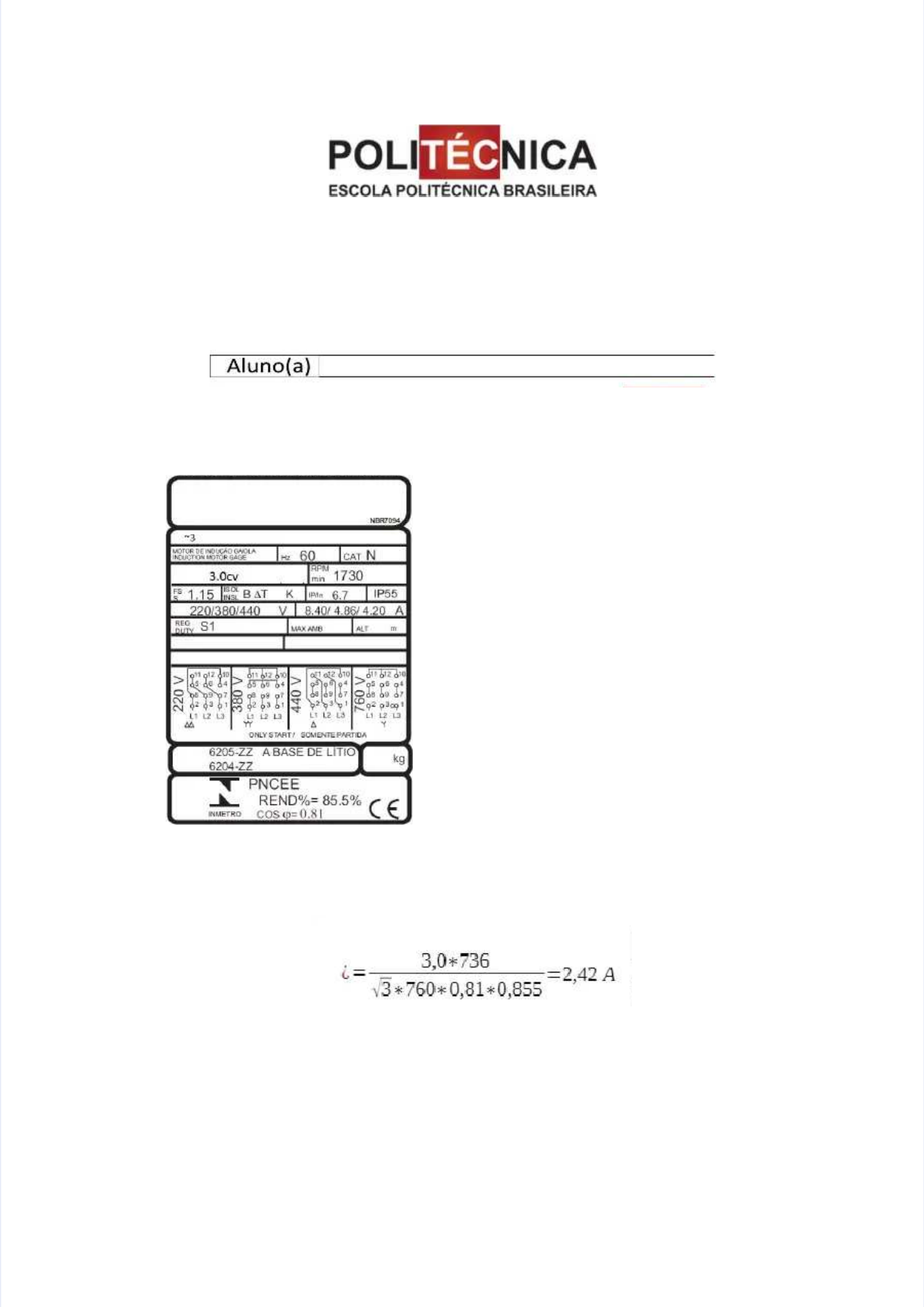 11 A A CA A A CA AA AA .. AA CC 1.1. C . C C . C (( )) :: Considerando apenas tensão de partida 760V. À partir da equação 1 temos:Considerando apenas tensão de partida 760V. À partir da equação 1 temos: () 2,42 () 2,42 22 2.2. AA ,, ,, , , .. ,, . . . . , , . , , . . . , , , , . . . . . . 22 3.3. ? ? , , , , , , , , .. 33 4.4. A, A A, A .. AA ,, : : . . . ( . ( 1, 2, 3), (1), (1), (1). 1, 2, 3), (1), (1), (1). .. 44 5.5. ,, CC CC (CC),(CC), .. ,, .. Diagrama de comando elétrico para partida direta com reversãoDiagrama de comando elétrico para partida direta com reversão 55 Diagrama de potência para partida direta com reversãoDiagrama de potência para partida direta com reversão 66 6.6. CC . . Para suavizar a partida o motor é ligado em estrela. Os terminais W2, U2 e V2 são “jumpeados” e aPara suavizar a partida o motor é ligado em estrela. Os terminais W2, U2 e V2 são “jumpeados” e a alimentação é feita em 380V. Após um alimentação é feita em 380V. Após um tempo determinado por um relé temporizador, a ligação é tempo determinado por um relé temporizador, a ligação é feitafeita em triêngulo, 220V.em triêngulo, 220V. 7.7. ? ? ?? Ambas permitem a partida suavizada, uma vez que a corrente de partida pode ser até 8x maior doAmbas permitem a partida suavizada, uma vez que a corrente de partida pode ser até 8x maior do que a corrente nominal. A partida estrela triângulo permite essa suavização ao que a corrente nominal. A partida estrela triângulo permite essa suavização ao trocar a ligação dotrocar a ligação do motor de estrela (380V) para triângulo (220V). O circuito com chave compensadora possui bobinasmotor de estrela (380V) para triângulo (220V). O circuito com chave compensadora possui bobinas adicionais que são ligadas junto com a chave seccionadora de modo que elas atuem na suavização daadicionais que são ligadas junto com a chave seccionadora de modo que elas atuem na suavização da partida.partida. Na partida estrela-triângulo há uma redução de torque e de corrente na partida de 33%.Na partida estrela-triângulo há uma redução de torque e de corrente na partida de 33%. Com a chave Com a chave compensadocompensadora, depende do modelo utilzado. A redução de ra, depende do modelo utilzado. A redução de corrente e torque é corrente e torque é aindaainda maior.maior. 8.8. ?? É utilizada, principalmente, para motorizações onde serão É utilizada, principalmente, para motorizações onde serão suportadsuportadas cargas elevadas as cargas elevadas (elevador(elevadores,es, por exemplo). A partida precisa ser por exemplo). A partida precisa ser reduzidreduzida a a a ¼ da corrente nominal.Precisa ser bastante suave.¼ da corrente nominal.Precisa ser bastante suave. 9.9. . . Um softstarter permite a regulagem de alguns valores Um softstarter permite a regulagem de alguns valores de corrente de partida e pode serde corrente de partida e pode ser ligado após oligado após o circuito de proteção, em série. É mais barato que um iversor decircuito de proteção, em série. É mais barato que um iversor de frequênciafrequência, porém , porém não permite tantasnão permite tantas variações de velocidade e torque.variações de velocidade e torque. Inversores de frequência recebem e processam a alimentação deInversores de frequência recebem e processam a alimentação de entrada devolvendo naentrada devolvendo na saída a corrente saída a corrente desejada. São dispositivos caros, mas desejada. São dispositivos caros, mas permitem partidaspermitem partidas suaves comsuaves com diversas regulagens. Podemos programas para maiores diversas regulagens. Podemos programas para maiores velocidadvelocidades ou es ou torques.torques. 77 10.10. CA&CA& ,, A .A .