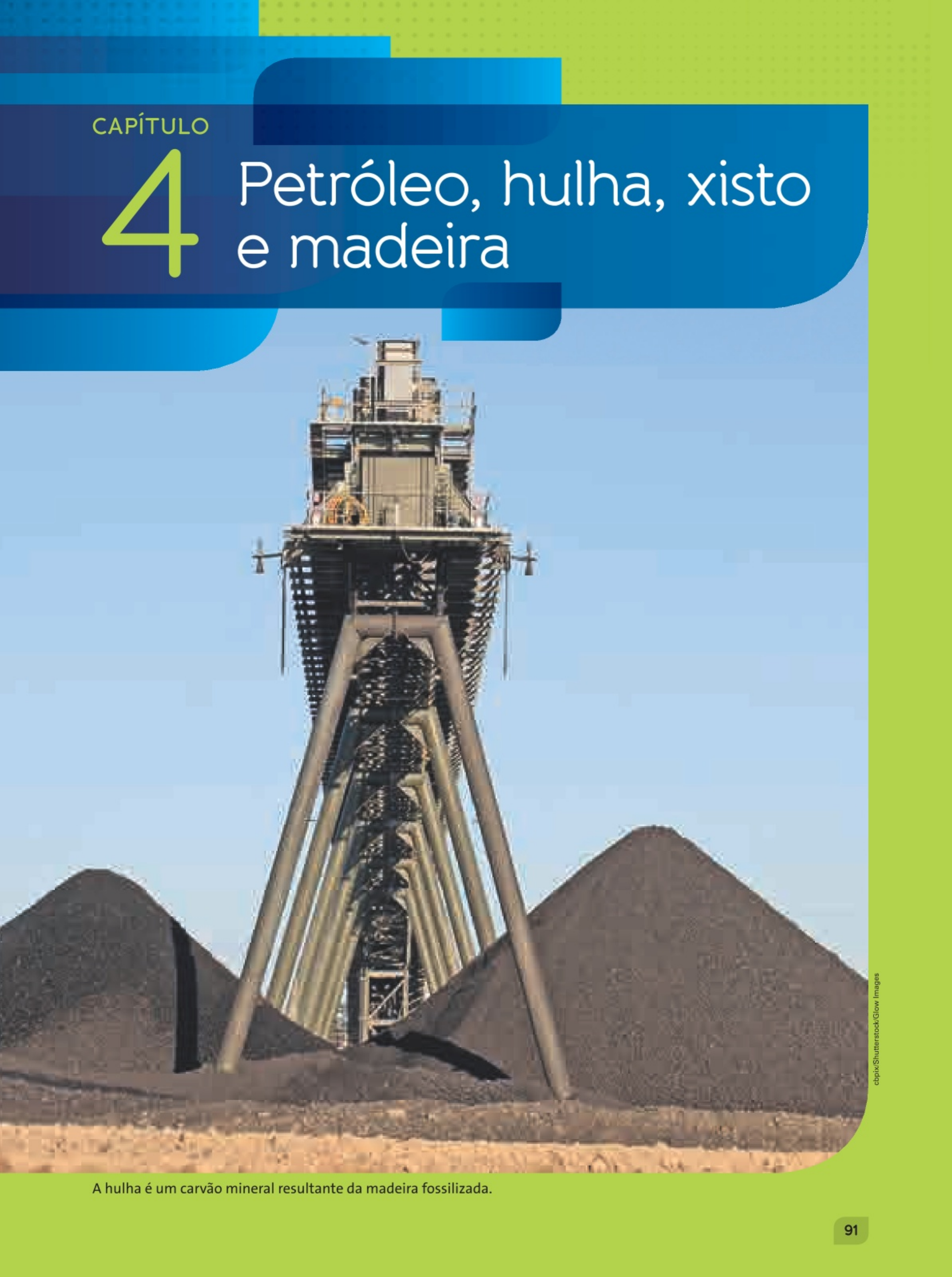 Petróleo, hulha, xisto e madeira ;,,, , ,, - •• ' ..... ,;. 1 1 • • ' t !" •• •• A hulha é um carvão mineral resultante da madeira fossilizada. ' ~ ,- 1 ! f ! '· ·1 .......... '!I . - ', ,,' - ' • . - 91 Brasil quer usar fraturamento hidráulico para explorar gás de xisto "Uma polêmica técnica de extração de gás natural, proibida em alguns países da Europa, será testada pela primeira vez no Brasil. O fraturamento hidráu lico (fracking, em inglês) é questionado pela falta de estudos sobre possíveis danos ambientais. A extração de gás natural por meio de fratura mento hidráulico é considerada uma a lternativa diante do esgotamento das reservas naturais mais acessíveis. Para extrair o gás, é preciso 'explodir' as rochas. O processo começa com uma perfuração até a camada rochosa de xisto. Após atingir uma profundidade de mais de 1,5 m il metros, uma bom ba injeta água com areia e produtos químicos em alta pressão, o que amplia as fissuras na rocha. Es te procedimento liberta o gás aprisionado, que flui para a superfície e pode então ser recolhido. [ ... ] De acordo com a Agência Internacional de Ener gia (IEA, na sigla em inglês), com o fraturamento hidráulico o Brasil poderia chegar à 10ª posição no ranking de maiores reservas mundiais de gás de xis to, também conhecido como gás não convencional. A Agência Nacional do Petróleo (ANP) pretende realizar em outubro um leilão para a exploração desse gás. As bacias cotadas para entrar nesta roda da são a do Pareeis (MT), do Parnaíba (entre Mara nhão e Piauí), do Recôncavo (BA), além das bacias do rio Paraná (entre Paraná e Mato Grosso do Sul) e do rio São Francisco (entre Minas Gerais e Bahia). Mas embora seja promissora economicamente, a técnica controversa é criticada por ambientalistas [ ... ] parece não haver qualquer debate sobre as ques tões ambientais, sociais e de saúde sobre os impac tos gerados por essa atividade. A própria ANP reconhece a falta de estudos so bre os impactos ambientais da prática. [ ... ] Entre os principais impactos ambientais aler tados pelos especialistas estão a contaminação da água e do solo, riscos de explosão com a liberação de gás metano, consumo excessivo de água para provocar o fracionamento da rocha, além do uso de substâncias químicas para favorece r a explora ção. Ainda há a preocupação de que a técnica pos sa estimular movimentos tectônicos que levem a terremotos. [ ... ] Outro ponto questionado [ ... ] é o fato de o Brasil investir na exploração de combustíveis fósseis, em vez de apostar em fontes renováveis. Ele lembra que pelo menos 2/3 das reservas mundiais conhe cidas precisam permanecer no subsolo para evitar o aquecimento global. [ ... ]" MOSER, Maga li. Deutsche Welle, 13 maio 2013. Disponível em: <www.dw.de/br asil-q uer-u sa r-fratu ra mento-hid rá ui ico-para-explor ar gás-de-xisto/a-16794512 >. Acesso em: 8 nov. 2013. Torre de exploração do gás de xisto por fraturamento hidráulico nos Estados Unidos. e Você sabe dizer o que é xisto e quais são os problemas que pode causar ao meio ambiente? 92-2 93-2