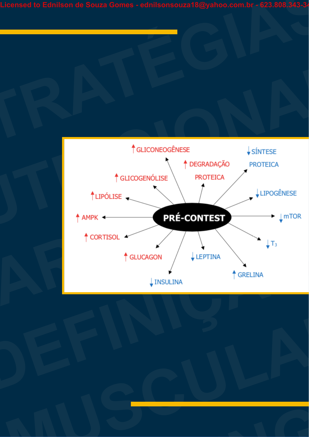 ESTRATÉGIAS NUTRICIONAIS PARA DEFINIÇÃO MUSCULAR (CUTTING / ESTRATÉGIAS NUTRICIONAIS PARA DEFINIÇÃO MUSCULAR (CUTTING / PRÉ-CONTEST) DUDU HALUCH Licensed to Ednilson de Souza Gomes - ednilsonsouza18@yahoo.com.br - 623.808.343-34 - HP12916045276476 ESTRATÉGIAS NUTRICIONAIS PARA DEFINIÇÃO MUSCULAR (CUTTING / PRÉ-CONTEST) DUDU HALUCH Curitiba 2019 “Dudu Haluch”: Carlos Eduardo Ferreira Haluch Licensed to Ednilson de Souza Gomes - ednilsonsouza18@yahoo.com.br - 623.808.343-34 - HP12916045276476 Copyrigth © 2019 por Carlos Eduardo Ferreira Haluch - “Dudu Haluch” Todos os direitos reservados. Capa Dudu Haluch, Marcelo Manduca, Thaís Anastácio Essu Editor Marcelo Manduca Ilustrações Dudu Haluch e Carolina Simião Preparação e revisão Marcelo Manduca Site: www.duduhaluch.com.br E-commerce: www.livrosduduhaluch.com.br facebook.com/eduardo.haluch.5 instagram.com/duduhaluch Licensed to Ednilson de Souza Gomes - ednilsonsouza18@yahoo.com.br - 623.808.343-34 - HP12916045276476 SUMÁRIO APRESENTAÇÃO 6 ......................................................................................................................................... PRÉ-CONTEST / CUTTING 7 ......................................................................................................................... INTRODUÇÃO 7 ............................................................................................................................................... OFF SEASON E BULK 7 ................................................................................................................................... PRÉ-CONTEST / CUTTING: TEMPO DE PREPARAÇÃO E AVALIAÇÃO 8 ...................................................... PRÉ-CONTEST / CUTTING: ADAPTAÇÕES METABÓLICAS 11 ....................................................................... REFERÊNCIAS BIBLIOGRÁFICAS 13 ............................................................................................................... MACRONUTRIENTES 14 ................................................................................................................................. INTRODUÇÃO 14 .............................................................................................................................................. PROTEÍNAS 14 .................................................................................................................................................. CARBOIDRATOS 17 .......................................................................................................................................... LIPÍDIOS (GORDURAS) 24 ................................................................................................................................ REFERÊNCIAS BIBLIOGRÁFICAS 28 ............................................................................................................... GASTO ENERGÉTICO E CÁLCULO DA DIETA 30 ......................................................................................... INTRODUÇÃO 30 .............................................................................................................................................. GASTO ENERGÉTICO E SEUS COMPONENTES 30 ........................................................................................ DIETA NO CUTTING / PRÉ-CONTEST 32 ......................................................................................................... CÁLCULO DA DIETA PARA O CUTTING / PRÉ-CONTEST 33 .......................................................................... REFERÊNCIAS BIBLIOGRÁFICAS 36 ............................................................................................................... ESTRATÉGIAS NUTRICIONAIS: MANIPULANDO MACRONUTRIENTES E ALIMENTOS 37 ..................... INTRODUÇÃO 37 .............................................................................................................................................. DIETAS HIPERPROTEICAS 37 .......................................................................................................................... FIBRAS NA DIETA 40 ......................................................................................................................................... COMA VEGETAIS 42 ......................................................................................................................................... FRUTAS NA DIETA 43 ........................................................................................................................................ LEGUMINOSAS 44 ............................................................................................................................................ CARGA GLICÊMICA E DENSIDADE ENERGÉTICA 45 ..................................................................................... MONTANDO A DIETA 46 ................................................................................................................................... REFERÊNCIAS BIBLIOGRÁFICAS 48 ............................................................................................................... DIETA FLEXÍVEL E DIA DO LIXO 49 ............................................................................................................... INTRODUÇÃO 49 .............................................................................................................................................. DIETA FLEXÍVEL E METABOLISMO 49 ............................................................................................................. DIA DO LIXO OU REFEIÇÃO LIXO 51 ............................................................................................................... REFERÊNCIAS BIBLIOGRÁFICAS 53 ............................................................................................................... Licensed to Ednilson de Souza Gomes - ednilsonsou