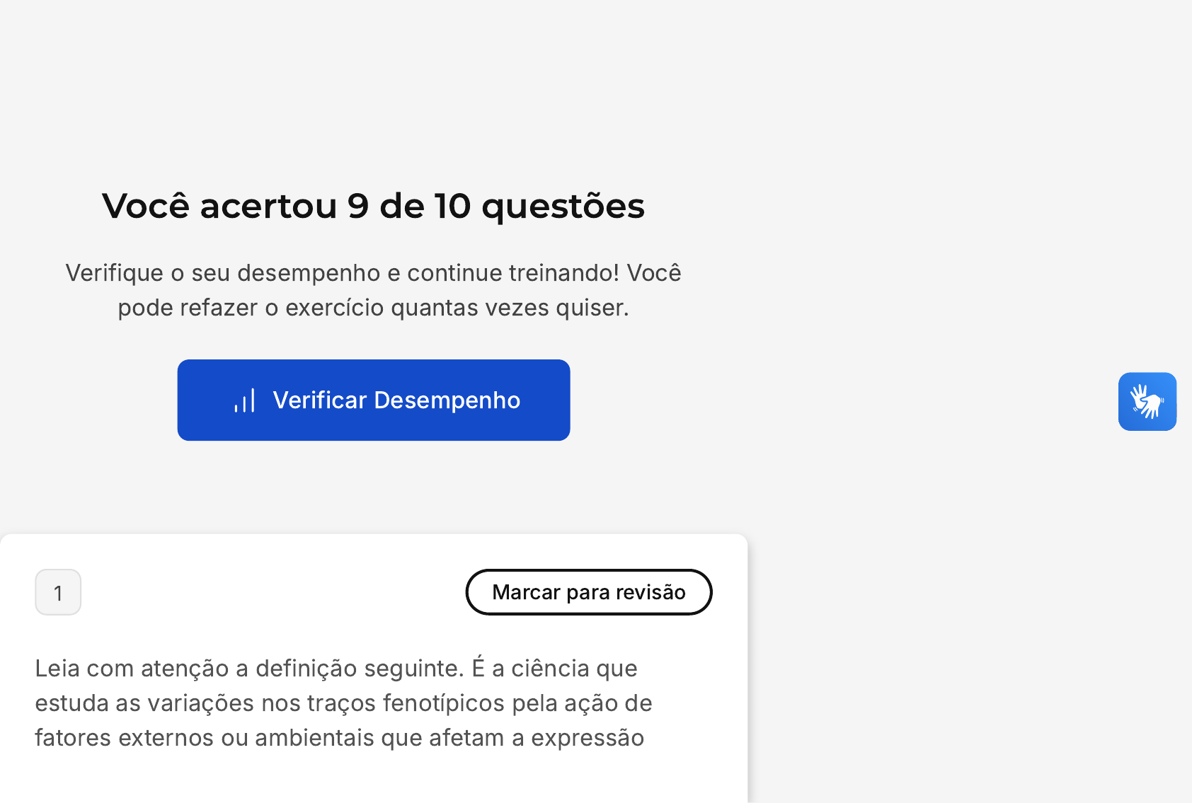 Você acertou 9 de 10 questões Verifique o seu desempenho e continue treinando! Você pode refazer o exercício quantas vezes quiser. Verificar Desempenho 1 Marcar para revisão Leia com atenção a definição seguinte. É a ciência que estuda as variações nos traços fenotípicos pela ação de fatores externos ou ambientais que afetam a expressão A B C D E gênica de modo reversível. Em relação ao termo definido, assinale a opção correta. Genética. Epigenética. Transgenética. Exogenética. Neurogenética. Resposta correta Parabéns, você selecionou a alternativa correta. Confira o gabarito comentado! Gabarito Comentado A definição apresentada no enunciado refere-se à Epigenética. A Genética é a ciência que estuda os genes e as características hereditárias que são guardadas nas moléculas de DNA. Já a Epigenética, cujo prefixo "epi" deriva do radical grego que indica a posição superior, estuda as características que vão além dos genes. Ela se concentra nas variações nos traços fenotípicos que são influenciadas pela ação de fatores externos ou ambientais que afetam a expressão gênica de modo reversível. O estudo da Epigenética é fundamental para estabelecer relações entre o nosso estilo de vida e o surgimento de determinadas doenças. A B 2 Marcar para revisão A metilação e a acetilação têm papel importante na compactação e descompactação do DNA em eucariotos, devido à sua modulação das histonas. Sobre o processo de metilação, assinale a alternativa correta. Adição de grupamentos metila favorece a compactação do DNA pelas histonas, impossibilitando a atuação da maquinaria transcricional. Remoção de grupamentos metila favorece a compactação do DNA pelas histonas, impossibilitando a atuação da maquinaria transcricional. C D E Adição de grupamentos metila dificulta a compactação do DNA pelas histonas, impossibilitando a atuação da maquinaria transcricional. Remoção de grupamentos metila dificulta a compactação do DNA pelas histonas, impossibilitando a atuação da maquinaria transcricional. Adição e remoção de grupamentos metila dificultam a compactação do DNA pelas histonas, impossibilitando a atuação da maquinaria transcricional. Resposta correta Parabéns, você selecionou a alternativa correta. Confira o gabarito comentado! Gabarito Comentado A compactação e descompactação do DNA em eucariotos são controladas pelas proteínas histonas, que desempenham um papel crucial na regulação gênica. As histonas determinam o grau de compactação da cromatina e são moduladas por pequenas alterações químicas em sua estrutura. A metilação, que envolve a adição de grupamentos metila, favorece a compactação do DNA pelas histonas, o que impede a atuação da maquinaria transcricional. Por outro lado, a acetilação, que envolve a adição de grupamentos acetil, favorece a descompactação do DNA, permitindo a atuação da maquinaria de transcrição. 3 Marcar para revisão O operon Lac tem como função principal: A B C Transcrever um RNAm policistrônico que irá ser traduzido em proteínas responsáveis pela metabolização da galactose e lactose. Transcrever um RNAm policistrônico que irá ser traduzido em proteínas responsáveis pela metabolização da galactose e glicose. Transcrever um RNAm policistrônico que irá ser traduzido em proteínas responsáveis pela inibição do metabolismo da glicose. Exercicio Introdução À Biologia Molecular Sair D E Transcrever um RNAm policistrônico que irá ser traduzido em proteínas responsáveis pela inibição do metabolismo da galactose e lactose. Transcrever um RNAm monocistrônico que irá ser traduzido em proteínas responsáveis pela metabolização da galactose e lactose. Resposta incorreta Opa! A alternativa correta é a letra A. Confira o gabarito comentado! Gabarito Comentado O operon Lac é um conjunto de genes que trabalham juntos para realizar uma função específica, neste caso, a metabolização da galactose e lactose. A alternativa correta é a A, pois o operon Lac transcreve um RNAm policistrônico, que é um único RNA mensageiro que codifica para múltiplas proteínas. Essas proteínas são Questão 4 de 10 Corretas �9� Incorretas �1� Em branco �0� 1 2 3 4 5 6 7 8 9 10 responsáveis pela metabolização da galactose e lactose, que são tipos de açúcares. Portanto, a principal função do operon Lac é transcrever um RNAm policistrônico que será traduzido em proteínas responsáveis pela metabolização da galactose e lactose. 4 Marcar para revisão A origem da vida é uma das questões mais polêmicas e que intrigam a humanidade. Como a vida originou-se na Terra? Na tentativa de responder essa questão, surgiram várias hipóteses. �Origem da Vida. Disponível em:https://www.biologianet.com/origem-universo-vida. Acessado em 21/09/2022�. Uma das hipóteses se baseia na ideia da formação espontânea. Assinale a alternativa que contém o nome dessa teoria. A B C D E Criacionismo. Darwinismo. Lamarckismo. Teoria de Oparin e Haldane Teoria da panspermia. Resposta correta Parabéns, você selecionou a alternativa correta. Confira o gabarito comentado! Gabarito Comentado Entre as diversas teorias que tentam explicar a origem da vida, a Teoria de Oparin e Haldane se destaca por propor a ideia da formação espontânea de pequenas moléculas orgânicas. Segundo essa teoria, essas moléculas, ao longo do tempo, passaram a se organizar de maneira cada vez mais complexa até se replicarem e evoluírem, formando as células primitivas. A Teoria da Panspermia, por outro lado, sugere que a vida na Terra pode ter sido originada a partir de compostos orgânicos presentes em meteoritos. No entanto, essa teoria ainda carece de evidências científicas suficientes para ser amplamente aceita. O Criacionismo, o Darwinismo e o Lamarckismo são outras teorias que tentam explicar a origem e a evolução da vida, mas não se baseia