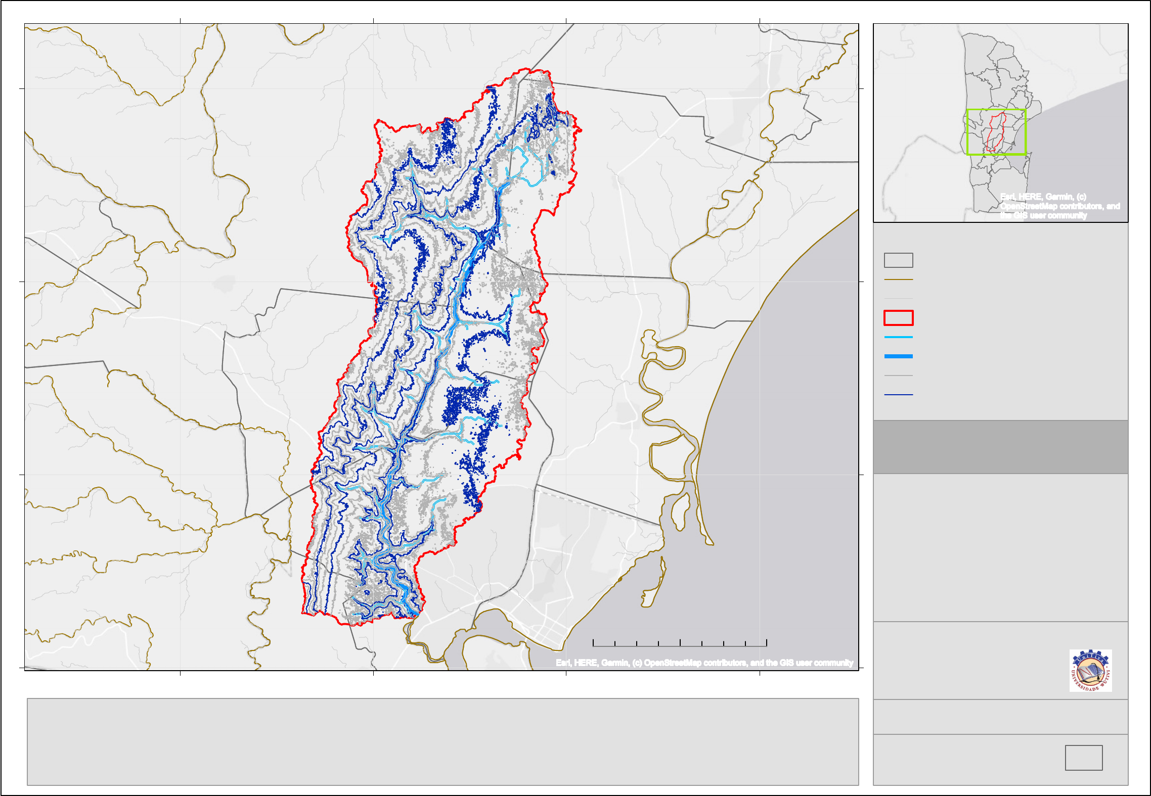 75 10 0 50 25 12 5 50 50 75 50 50 50 75 25 50 50 50 R. Ma tol a MOAMBA NAMAACHA MOAMBA MANHIÇA MOAMBA MARRACUENE MANHIÇA BOANE CIDADE_DA_MATOLA BOANE MARRACUENEMOAMBA CIDADE_DE_MAPUTO MANHIÇA MANHICA CIDADE_DE_MAPUTO MARRACUENE CIDADE_DE_MAPUTO Esri, HERE, Garmin, (c) OpenStreetMap contributors, and the GIS user community 32,200000 32,400000 32,600000 32,800000-26 ,00 00 00 -25 ,80 00 00 -25 ,60 00 00 -25 ,40 00 00 Esri, HERE, Garmin, (c) OpenStreetMap contributors, and the GIS user community Tema: Delimitação da Bacia hidrogáfica Bacia do Rio Matola ² Delimitação da Bacia hidrogáfica Divisão_administrativa Demais_rios Demais_cursos_de_agua Bacia_do_Rio_Matola Cursos_de_água_do_Rio_Matola Rio_Matola Curvas_de_nivel 5 em 5 metros Curvas de nivel mestres 25 em 25 m Projeçao GCS; DATUM WGS 1984; Elaborado por: Calton Maela e Zebedeu Siquela Boane. 2021 Folha A3 1 Docente: Daiane Bertoli 0 10 000 20 0005 000 Metros Esc: 1/330 300 Análise:Atraves do Mapa da Delimitaçao da Bacia, conseguimos definir uma unidade Territorial em que fazemos o gerenciamento dos recursos hidricos; Este gerenciamento que fazemo-lo atraves de definiçao dos cursos de agua; definiçao dos divisores de cursos de agua, definiçao da nascente do rio e a definiçao dos Distritos e Postos Administrativos contidos na Bacia. Universidade Unitiva Facudade de Arquitetura e planeamento Físico Fontes: EARTH EXPLORER; CENACARTA.COM Disciplina: Atelier VI Ano: 4