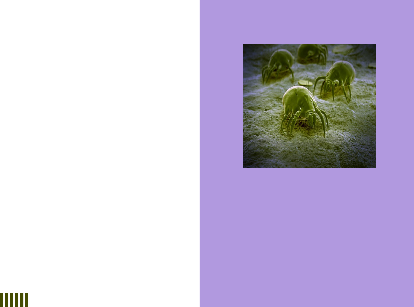 Os sinais de infestação por ácaros podem incluir a presença de pequenos pontos pretos ou marrom-avermelhados nas roupas de cama, colchões ou estofados, além de possíveis reações alérgicas, como espirros, coceira nos olhos e congestão nasal.