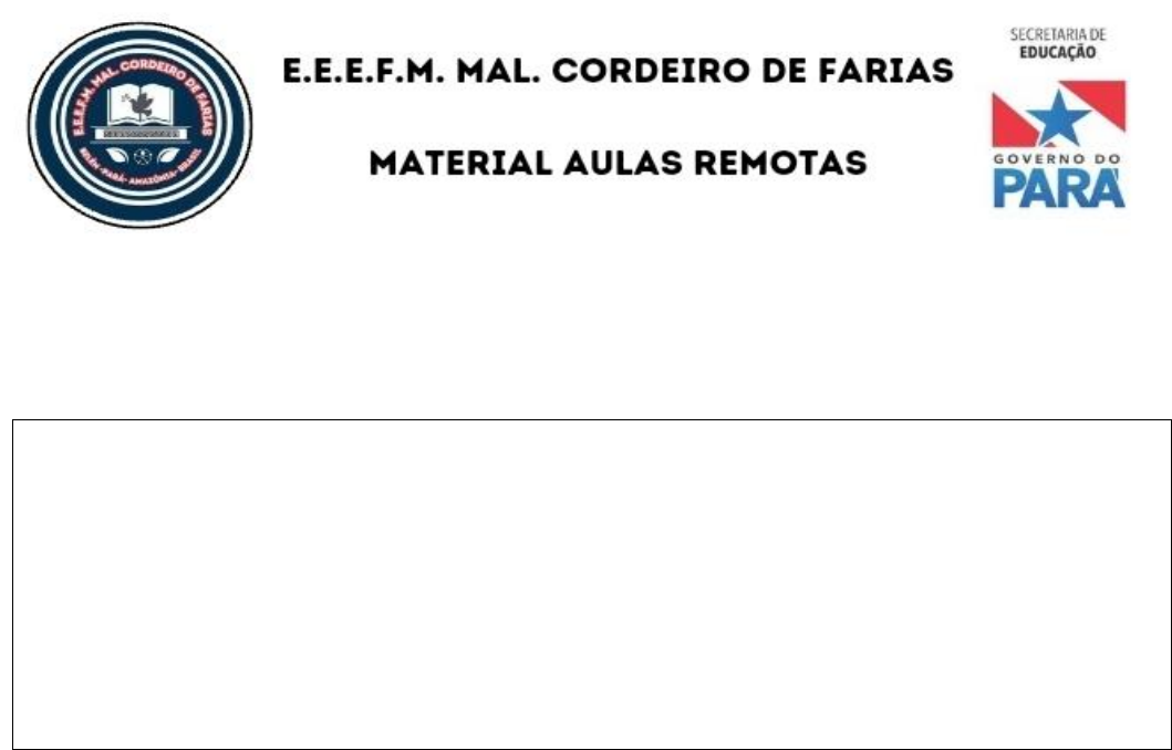 COMPONENTE CURRICULAR: FILOSOFIA Professor(a): ALINE G. ROSSI MORAES Série: 1º ANO Vamos aos estudos! 1- O que você vai encontrar por aqui... • Revisão assunto trabalhado na 2ª Avaliação - Quem sou eu? História de si. História do homem. O que é o mundo. A existência. A construção do sujeito histórico. Iniciação filosófica Ocidental e aproximações amazônicas paraense. A história do conhecimento, a linha histórica do conhecimento. O mito, os deuses gregos, as lendas gregas, Ué? Existe a filosofia na Amazônia? 2- Revisão Leia ao texto em seguida responda às questões O ser humano é um ser vivo que possui muitas dimensões, ele é social, psíquico, transcendente, conhecimento, razão, emoção, relações ético-morais e políticas etc. Tudo começou em um tempo distante dois milhões e 1,8 milhões de anos atrás, a linha histórica abaixo reafirma de forma organizada esta constatação veja em seguida. Saudações iniciais- Acolhimento Preparados para continuar? Recomeçando a trilhar o Projeto de Vida! Olá, queridos alunos, bem-vindos ao 2º semestre na Escola Mal. Cordeiro de Farias. Que bom estarmos juntos para as conquistas que ainda podemos fazer este ano. Quero lembrá-los que todo o esforço que é feito em busca do sonho e propósito de vida faz a diferença no alcance dos seus objetivos. Estamos juntos! Com afeto, profa. Aline Rossi Escola Integral de tempo Integral Escolha da Escolha, onde o seu sonho é prioridade. 1º ANO Na Amazônia paraense também houve a evolução so ser humano e suas especificidades. No Pará temos as lendas Amazônicas que refletem o início de uma Era, chamada Mítica, que traz consigo a tentativa de explicar o inexplicável para aquele período. Ocidente Grécia Ocidente ( Amazônia) Era Mítica Era Mítica Deuses Gregos Seres da natureza com poderes divinos e vida imortal Lendas e Mitos Gregos Lendas e Mitos Amazônicos Períodoo cosmogônico( explicação por meio dos mitos) Períodoo cosmogônico( explicação por meio dos mitos) Atividades 1ª) Observe e responda no caderno: De acordo com a imagem e o assunto estudado, explique a imagem anterior. 2ª) O que foi a Era mítica na história? 3ª) Qual a importância da Era mítica para a humanidade? 4ª) De amaneira o ser humano está constituído segundo as suas dimensões? Cite e explique. 5ª) Qual a importância da linha histórica para a compreensão da existência humana? Explique. Parabéns! Você concluiu a revisão com sucesso! Entregue as respostas no seu caderno no dia da aula de Filosofia presencial. Grande abraço! Profa. Aline Rossi Vamos recordar o seu projeto de vida? Você já deve ter refletido sobre o seu futuro e as suas expectativas para como chegar nele tendo os seus objetivos concretizados. Um sonho sem projeto é a penas um sonho! Na escola Mal. Cordeiro de Farias, além de nos preocuparmos com o seu desempenho acadêmico, o seu sonho é uma prioridade para nós! Estamos na reta final do ano letivo, é necessário reorganizar a agenda pessoal para ver se as suas atitudes estão te ajudando a estar na direção do seu sonho. Que estes dias você pare para refletir e colocar no papel qual o seu sonho, o que você precisa fazer para realizá-lo e quando e como irá fazer para concretizar esse plano. Lembre-se estamos cm você.