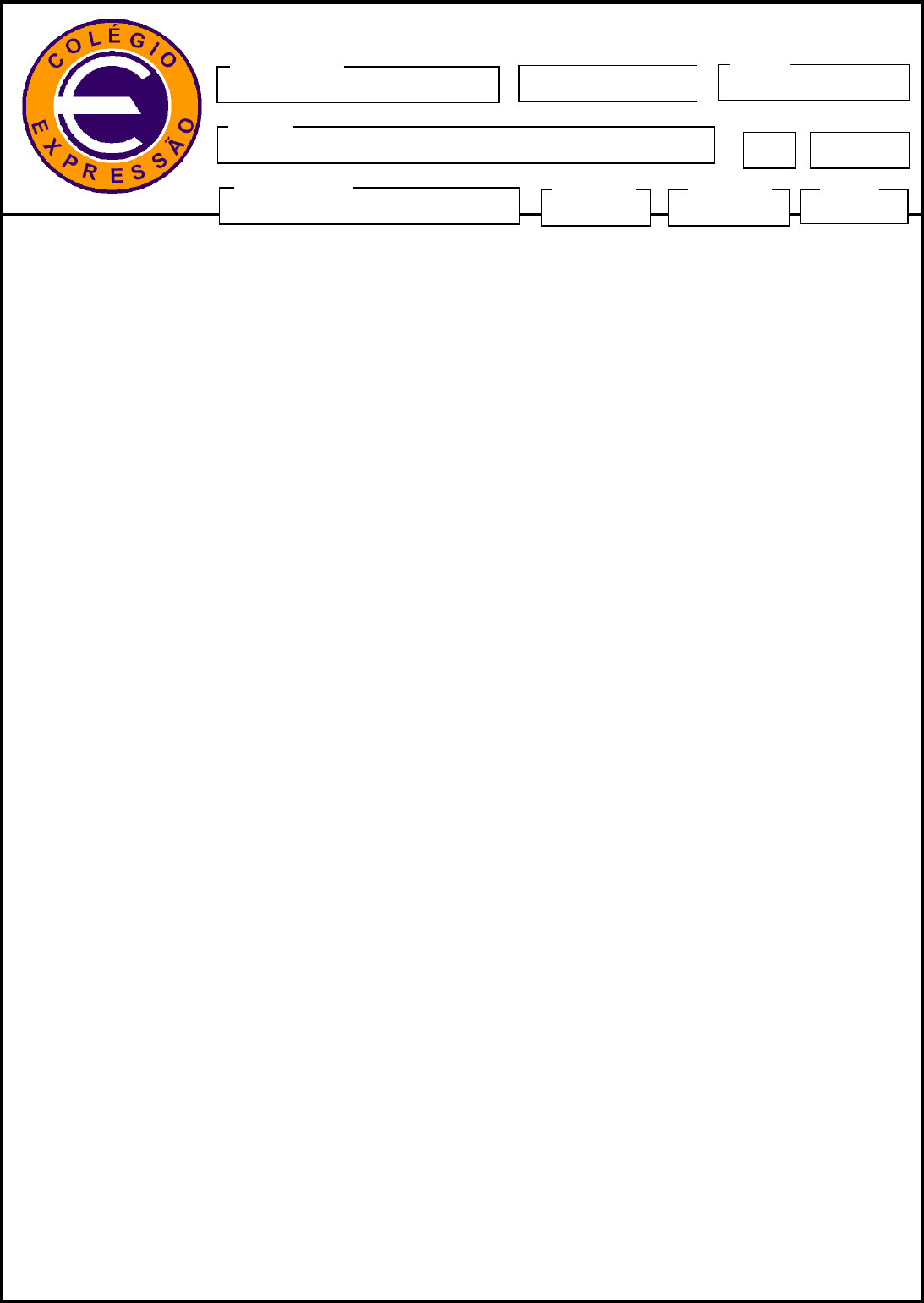 Língua Portuguesa AVALIATIVA IVAN 20 pontos 1º 1- Descreva. a) Linguagem verbal: b) Linguagem não verbal: c) Linguagem mista: 2 – Formule três frases utilizando corretamente as seguintes palavras: mas, más e mais. 3 - “Brasileiro não sabe português / Só em Portugal se fala bem português” E essa história de dizer que “brasileiro não sabe português” e que “só em Portugal se fala bem português”? Trata-se de uma grande bobagem, infelizmente transmitida de geração a geração pelo ensino tradicional da gramática na escola. O brasileiro sabe português, sim. O que acontece é que nosso português é diferente do português falado em Portugal. Quando dizemos que no Brasil se fala português, usamos esse nome simplesmente por comodidade e por uma razão histórica, justamente a de termos sido uma colônia de Portugal. Do ponto de vista lingüístico, porém, a língua falada no Brasil já tem uma gramática — isto é, tem regras de funcionamento — que cada vez mais se diferencia da gramática da língua falada em Portugal. Por isso os lingüistas (os cientistas da linguagem) preferem usar o termo português brasileiro, por ser mais claro e marcar bem essa diferença. Na língua falada, as diferenças entre o português de Portugal e o português do Brasil são tão grandes que muitas vezes surgem dificuldades de compreensão: no vocabulário, nas construções sintáticas, no uso de certas expressões, sem mencionar, é claro, as tremendas diferenças de pronúncia — no português de Portugal existem vogais e consoantes que nossos ouvidos brasileiros custam a reconhecer, porque não fazem CURSO E COLÉGIO EXPRESSÃO - EIEFMPV AVALIAÇÃO DE NOME PROFESSOR Nº RI E SÉRIE DATA VALOR NOTA BIMESTRE parte de nosso sistema fonético. E muitos estudos têm mostrado que os sistemas pronominais do português europeu e do português brasileiro são totalmente diferentes. (Preconceito lingüístico: o que é, como se faz (1999), de Marcos Bagno) Sobre o texto é correto afirmar: a) As diferenças entre o português do Brasil e de Portugal são geradas pela variação histórica, a qual influencia as diferenças gramaticais das línguas. b) O português brasileiro é inferior ao português de Portugal, pois a língua portuguesa original foi inserida no Brasil pelos portugueses. c) A diferença linguística marcada pelos diferentes usos da língua portuguesa é fruto das variações sociais existentes entre os dois países. d) As variações linguísticas que existem entre Portugal e Brasil representam os diferentes dialetos criados por cada nação. e) O português do Brasil e de Portugal são fruto da variação geográfica chamada de regionalismo. 4 - Dependendo do contexto e das situações comunicativas, a linguagem utilizada pode ser formal ou informal. A variação linguística em que isso acontece é chamada de: a) variante linguística b) variante linguística histórica c) variante linguística mista d) variante linguística regional e) variante linguística social 5 - Indique a alternativa cuja sequência de vocábulos apresenta, na mesma ordem, o seguinte: ditongo, hiato, hiato, ditongo. a) jamais / Deus / luar / daí b) joias / fluir / jesuíta / fogaréu c) ódio / saguão / leal / poeira d) quais / fugiu / caiu / história 6- Qual palavra possui dois dígrafos? a) fechar b) sombra c) ninharia d) correndo e) pêssego 7 - Marque a alternativa cuja sequência de palavras seja formada apenas por HIATO: a) Juiz – anel – paulista; b) Coar – raiz – oceano; c) Energia – pressione – efeito; d) Enjoar – caída – altura; e) Saúde – colmeia – artificial. 8 - Dadas as palavras: 1) des – a – ten – to 2) sub – es – ti – mar 3) trans – tor – no Constatamos que a separação silábica está correta: a) apenas em 1. b) apenas em 2. c) apenas em 3. d) em todas as palavras. e) n.d.a 9- Indique a alternativa em que todas as palavras têm a mesma classificação no que se refere ao número de sílabas: a) enchiam, saíam, dormiu, noite b) feita, primeiro, crescei, rasteiras c) ruído, saudade, ainda, saúde d) eram, roupa, sua, surgiam e) dia, sentia, ouviam, loura 10 – Crie uma nota de rodapé para o seguinte texto: O que faz um biólogo marinho O biólogo marinho é o profissional que deseja trabalhar com os seres vivos que vivem nos ambientes marítimos. O raciocínio de que este profissional trabalha exclusivamente com mares e oceanos é muito frequente, mas também há possibilidades de estudo e análise em outros ambientes, como as zonas de mangue, praias, costões, recifes e atóis.