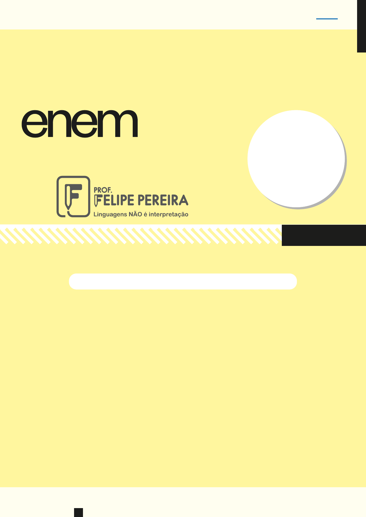 1º SIMULADO DE LINGUAGENS PROVA DE LINGUAGENS, CÓDIGOS E SUAS TECNOLOGIAS (CONTEÚDO COMPLETO) QUESTÕES 100% AUTORAIS 2023 LEIA ATENTAMENTE AS INSTRUÇÕES SEGUINTES: 1. Este CADERNO DE QUESTÕES contém 45 questões numeradas de 01 a 45, dispostas da seguinte maneira: questões de número 01 a 45, relativas à área de Linguagens, Códigos e suas Tecnologias; ATENÇÃO: as questões de 01 a 05 são relativas à língua estrangeira. Você deverá responder apenas às questões relativas à língua estrangeira (inglês ou espanhol) escolhida no ato de sua inscrição. 2. Confira se a quantidade e a ordem das questões do seu CADERNO DE QUESTÕES estão de acordo com as instruções anteriores. Caso o caderno esteja incompleto, tenha defeito ou apresente qualquer divergência, comunique o professor Felipe Pereira :) 3. Para cada uma das questões objetivas, são apresentadas 5 opções. Apenas uma responde corretamente à questão. 4. O tempo disponível para esta prova é de 1 hora e quarenta e cinco minutos. 5. Reserve tempo suficiente para preencher o CARTÃO-RESPOSTA 6. Os rascunhos e as marcações assinaladas no CADERNO DE QUESTÕES não serão considerados na avaliação. 7. Quando terminar as provas, observe como você se sentiu fazendo o ENEM e se matricule na Plataforma Linguagens IHM do Professor Felipe Pereira. 8. Faz 4 anos seguidos que algum elemento do nosso simulado autoral aparece depois IDÊNTICO no Enem. Fazer este simulado com máxima atenção pode ser uma oportunidade de você viver o Enem antes do Enem. Não desperdice. 1º DIA CADERNO 1 AMARELO ATENÇÃO: transcreva no espaço apropriado do seu CARTÃO-RESPOSTA, com sua caligrafia usual, considerando as letras maiúsculas e minúsculas, a seguinte frase: LINGUAGENS NÃO É INTERPRETAÇÃO Assista à Aula de Apresentação da Plataforma Linguagens IHM, clique AQUI. https://cursoenem.profelipereira.com/linguagens-sales?utm_source=simulado&utm_medium=simulado-23-1&utm_campaign=ple-p23 Linguagens | Caderno 1 - AMARELO - Página 2 2023 Assista à Aula de Apresentação da Plataforma Linguagens IHM, clique AQUI. LINGUAGENS, CÓDIGOS E SUAS TECNOLOGIAS Questões de 01 a 45 Questões de 01 a 05 (opção inglês) QUESTÃO 01 Disponível em: https://www.instagram.com. Acesso em: 20 dez. 2022 Os recursos verbais e não verbais do quadrinho promo- vem um efeito de humor pelo contraste entre A a vida doméstica e o falecimento da personagem B a expressão “short break” e o desfecho do quadrinho C a declaração final da personagem e sua imagem D a narrativa e a fala contraditória da personagem E a cena doméstica e a descrição das atividades QUESTÃO 02 Disponível em: https://www.mercurynews.com. Acesso em: 10 jan. 2023 Nesse cartum, que retrata Donald Trump em um julga- mento, o pensamento da personagem mais à direita da imagem expressa A a inteligência jurídica do ex-presidente B a descoberta de fatos importantes para o julgamento C a precisão da pergunta do interrogador para o interrogado D a expectativa de um julgamento longo e interessante E a possibilidade de ouvir respostas longas e duvidosas QUESTÃO 03 TikTok banned on U.S. government devices, and the U.S. is not alone. Here’s where the app is restricted. Hong Kong — The U.S. and Canada both issued orders this week banning the use of TikTok on govern- ment-issued mobile devices amid growing privacy and cybersecurity concerns about the Chinese-owned video- -sharing app. TikTok, owned by the larger tech company Bytedance, has long maintained that it does not and will not share data with the Chinese government and that its data is not held in China. Disponível em: www.cbsnews.com. Acesso em: 31 mar. 2023 A expressão “amid growing privacy and cybersecurity concerns” introduz a ideia de A ações tomadas pelo governo contra o TikTok B direcionamento da proibição para o governo C contextualização do banimento da plataforma D presença de espionagem no governo chinês E regulação das redes sociais nos Estados Unidos https://cursoenem.profelipereira.com/linguagens-sales?utm_source=simulado&utm_medium=simulado-23-1&utm_campaign=ple-p23 https://www.mercurynews.com http://www.cbsnews.com Linguagens| Caderno 1 - AMARELO - Página 3 2023 Assista à Aula de Apresentação da Plataforma Linguagens IHM, clique AQUI. QUESTÃO 04 Cultural identity is a matter of ‘becoming’ as well as of ‘being’. It belongs to the future as much as to the past. It is not something which already exists, transcending place, time, history and culture. Cultural identities come from somewhere, have histories. But, like everything which is historical, they undergo constant transforma- tion. Far from being eternally fixed in some essentialised past, they are subject to the continuous ‘play’ of history, culture and power. Far from being grounded in a mere ‘recovery’ of the past, which is waiting to be found, and which, when found, will secure our sense of ourselves into eternity, identities are the names we give to the dif- ferent ways we are positioned by, and position ourselves within, the narratives of the past. Hall, S. Essential Essays, Volume 2: Identity and Diaspora. Duke University Press, 2019 O texto traça uma definição de identidade cultural que leva em conta A o resgate de um passado bem definido e estável B a retomada e conservação de manifestações culturais C a valorização de tradições de um passado D a recuperação precisa de valores culturais antigos E posição histórica frente às identidades culturais QUESTÃO 05 The Cask of Amontillado THE thousand injuries of Fortunato I had borne as I best could; but when he ventured upon insult, I vowed re- venge. You, who so well know the nature of my soul, will not suppose, however, that I gave utterance to a threat. At length I would be avenged; this was a point definitively settled — but the very definitiveness with which it was re- solved, precluded the idea of risk. I must not only punish, 