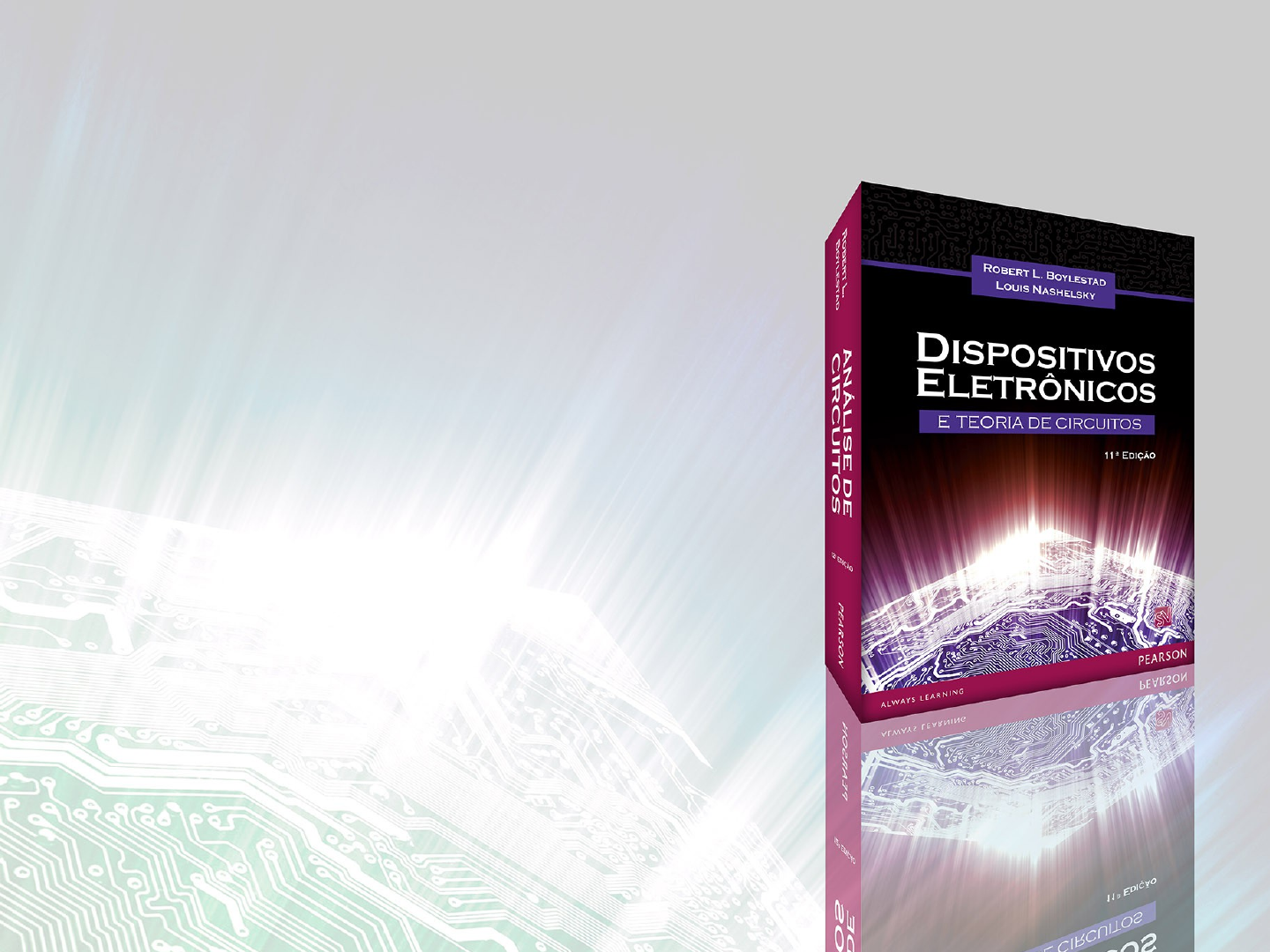 © 2013 Pearson. Todos os direitos reservados.slide 1 Eletrônica AnalógicaI Transistores – Parte I Polarização CC-TBJ © 2013 Pearson. Todos os direitos reservados.slide 1 Fonte: Slides dos Capítulos 3 e 4 – Transistores bipolares de junção e Polarização CC – TBJ. Dispositivos Eletrônicos e Teoria de Circuitos. Pearson. Disponível em: https://loja.grupoa.com.br/dispositivos-eletronicos-e-teoria-dos- circuitos9788564574212-p1004830 Electronic Devices and Circuit Theory Boylestad © 2013 by Pearson Higher Education, Inc Upper Saddle River, New Jersey 07458 • All Rights Reserved© 2013 Pearson. Todos os direitos reservados.slide 2 • 23 de dezembro de 1947 Electronic Devices and Circuit Theory Boylestad © 2013 by Pearson Higher Education, Inc Upper Saddle River, New Jersey 07458 • All Rights Reserved© 2013 Pearson. Todos os direitos reservados.slide 3 • 23 de dezembro de 1947 Electronic Devices and Circuit Theory Boylestad © 2013 by Pearson Higher Education, Inc Upper Saddle River, New Jersey 07458 • All Rights Reserved© 2013 Pearson. Todos os direitos reservados.slide 4 •Lei de Moore (1965): a quantidade de transistores em CI dobraria a cada dois anos Electronic Devices and Circuit Theory Boylestad © 2013 by Pearson Higher Education, Inc Upper Saddle River, New Jersey 07458 • All Rights Reserved© 2013 Pearson. Todos os direitos reservados.slide 5 Construção do transistor • Há dois tipos de transistores: pnp e npn • Os terminais são rotulados: E - Emissor B - Base C - Coletor Electronic Devices and Circuit Theory Boylestad © 2013 by Pearson Higher Education, Inc Upper Saddle River, New Jersey 07458 • All Rights Reserved© 2013 Pearson. Todos os direitos reservados.slide 6 Correntes em um transistor B I C I E I  Uma corrente de emissor é a soma das correntes de coletor e de base: Electronic Devices and Circuit Theory Boylestad © 2013 by Pearson Higher Education, Inc Upper Saddle River, New Jersey 07458 • All Rights Reserved© 2013 Pearson. Todos os direitos reservados.slide 7 Configuração emissor- comum O emissor é comum aos circuitos de entrada (base-emissor) e de saída (coletor-emssor). A entrada é aplicada à base e a saída é retirada do coletor. Electronic Devices and Circuit Theory Boylestad © 2013 by Pearson Higher Education, Inc Upper Saddle River, New Jersey 07458 • All Rights Reserved© 2013 Pearson. Todos os direitos reservados.slide 8 Regiões de operação • Ativa • Faixa de operação do amplificador. • De corte • O amplificador está basicamente desligado. Há tensão, mas pouca corrente. •De saturação • O amplificador está totalmente ligado. Há corrente, mas pouca tensão. Electronic Devices and Circuit Theory Boylestad © 2013 by Pearson Higher Education, Inc Upper Saddle River, New Jersey 07458 • All Rights Reserved© 2013 Pearson. Todos os direitos reservados.slide 9 Aproximações EC II  silício) (para7,0 V VBE  • Correntes de emissor e de coletor: • Tensão base-emissor: Electronic Devices and Circuit Theory Boylestad © 2013 by Pearson Higher Education, Inc Upper Saddle River, New Jersey 07458 • All Rights Reserved© 2013 Pearson. Todos os direitos reservados.slide 10 Alfa () Idealmente:  = 1 Realidade:  fica algo entre 0,9 e 0,998 Alfa () é a razão de IC para IE : EI CI dcα  Alfa () no modo CA: EIΔ CIΔ acα  Electronic Devices and Circuit Theory Boylestad © 2013 by Pearson Higher Education, Inc Upper Saddle River, New Jersey 07458 • All Rights Reserved© 2013 Pearson. Todos os direitos reservados.slide 11 Correntes de amplificador emissor-comum IE = IC + IB IC =  IE Correntes reais Quando IB = 0 A, está em corte, mas há uma corrente minoritária correndo chamada ICEO. μA0 I CBO CEO Bα I I   1 Onde ICBO = corrente de coletor minoritário ICBO é geralmente tão pequena que pode ser ignorada, exceto em transistores de alta potência e em ambientes de alta temperatura. Correntes ideais IC =  IE + ICBO Electronic Devices and Circuit Theory Boylestad © 2013 by Pearson Higher Education, Inc Upper Saddle River, New Jersey 07458 • All Rights Reserved© 2013 Pearson. Todos os direitos reservados.slide 12 Beta () No modo CC: No modo CA: Às vezes refere-se ao CA como hfe, um termo usado nos cálculos do desenvolvimento de transistores B C dc I I β  constanteac    CEV B C I I  representa o fator de amplificação do resistor. Electronic Devices and Circuit Theory Boylestad © 2013 by Pearson Higher Education, Inc Upper Saddle River, New Jersey 07458 • All Rights Reserved© 2013 Pearson. Todos os direitos reservados.slide 13 A relação entre os fatores de amplificação  e  são: 1  β β α 1  α α β Relação entre correntes: BC βII  BE )I(βI 1 Beta () Electronic Devices and Circuit Theory Boylestad © 2013 by Pearson Higher Education, Inc Upper Saddle River, New Jersey 07458 • All Rights Reserved© 2013 Pearson. Todos os direitos reservados.slide 14 Polarização CC  Respostas CA.  Respostas CC.  Análise das condições CC pode ser separada da resposta CA. • Polarização: Aplicar tensões CC a um transistor no intuito de ligá- lo de modo que ele amplifique sinais CA. Electronic Devices and Circuit Theory Boylestad © 2013 by Pearson Higher Education, Inc Upper Saddle River, New Jersey 07458 • All Rights Reserved© 2013 Pearson. Todos os direitos reservados.slide 15 Ponto de operação Electronic Devices and Circuit Theory Boylestad © 2013 by Pearson Higher Education, Inc Upper Saddle River, New Jersey 07458 • All Rights Reserved© 2013 Pearson. Todos os direitos reservados.slide 16 As três regiões de operação • Operação em região ativa ou linear o A junção base-emissor é polarizada diretamente (VBE = 0,7V). o A junção base-coletor é polarizada reversamente. • Operação na região de corte o A junção base-emissor é polarizada reversamente. o A junção base-coletor é polarizada reversamente. • Operação na região de saturação o A jun
