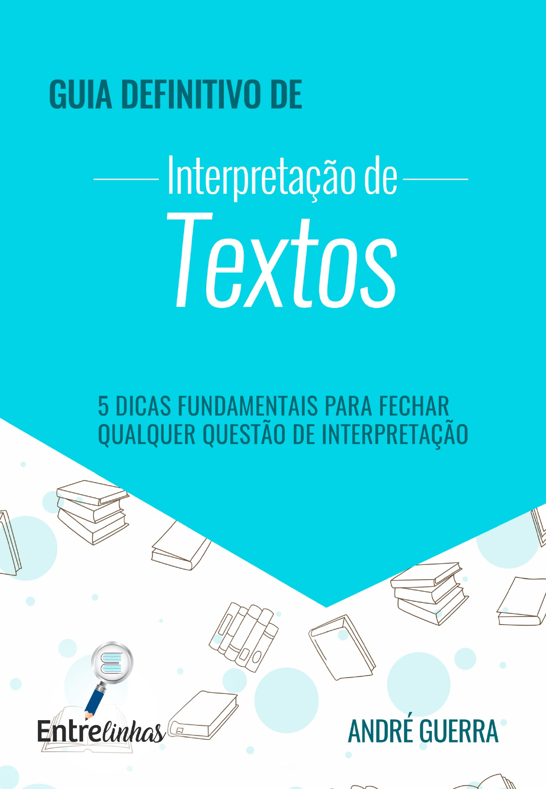 Guia definitivo de Interpretação de Textos 5 dicas fundamentais para você fechar qualquer questão de interpretação em provas. André Guerra Entrelinhas Introdução A interpretação de textos se apresenta, hoje, como uma peça-chave em provas, independentemente do modelo avaliativo e do elaborador. Seja em uma prova para concurso público, ENEM ou processo seletivo de alguma Universidade, há um elemento invariável, indispensável e inevitável: as suas habilidades e competências ligadas à Interpretação de textos diversos serão exigidas! Mas o que isso quer dizer? Quer dizer que o conhecimento de disciplinas específicas ao concurso prestado, o domínio de cálculos absurdamente difíceis, a memorização de informações, de nomes, datas, conceitos, são elementos de suma importância para uma boa colocação. A grande questão é que o domínio desses pontos vai te COLOCAR NO PÁREO, vai te deixar em condições de disputar com os melhores, mas... Isso não é o bastante! Estar entre os melhores não garante uma vaga. Mas há o elemento chave que te torna capaz de deixar até os melhores concorrentes para trás. Esse elemento que pode te levar a fazer a diferença é o domínio da INTERPRETAÇÃO DE TEXTOS. 2 Entrelinhas Antes de avançar, deixa eu te fazer duas perguntinhas: Primeira pergunta: Você sabe qual é o percentual de provas de português que apresentam questões dessa natureza? A resposta é: 100% Isso mesmo! Todos os exames têm prova de Linguagens e Códigos (a famosa prova de português) e toda prova de português cobra interpretação! Segunda pergunta: Quando você se depara com “aquele texto” bem no início da prova e percebe que a questão é de interpretação, dá um frio na barriga? Então você se pergunta: por que fazem isso? Por que não facilitam sua vida e cobram questões teóricas ou técnicas como gramática ou escolas literárias? Bem, se você se sente assim, esse e-book foi feito pra você! Vamos apresentar 5 dicas fundamentais para você se tornar proficiente em questões de Interpretação de textos em provas das diversas instituições e processos seletivos. A partir da nossa experiência na área e conhecimento dos aspectos teóricos (sim, eles existem!) da interpretação de textos, montamos um panorama do que você deve fazer e deixar de fazer para fechar sua prova de interpretação. Nesse e-book esse mapa será apresentado a você! 3 Entrelinhas Quem é o Autor? colégios e cursos de renome em Salvador, Feira de Santana e Vitória da Conquista (onde resido hoje). Sou idealizador e proprietário do Curso Entrelinhas, que funciona nas versões presencial e on-line. Sou membro da Academia Conquistense de Letras, poeta e autor do livro “Casa de Espelhos” (2011), premiado pela Universidade Estadual do Sudoeste da Bahia (UESB) na categoria poesia Prazer em conhecê-lo(a). Agora, “Mãos à Obra”! Meu nome é André Guerra. Nasci em Salvador-BA, onde me graduei em Letras Vernáculas pelo Instituto de Letras da Universidade Federal da Bahia (UFBA). Atuo no ensino e preparação de candidatos para ENEM, Vestibulares e Concursos há 18 anos, nas áreas de Literatura, Gramática, Redação e Interpretação de Textos, já tendo lecionado em 4 Índice Antes de mais nada, o enunciado..................................06 Use a questão a seu favor................................................11 Ler o texto X Ganhar tempo.............................................17 Conheça os erros e não erre!...........................................21 5. Cuidado consigo mesmo!...............................................29 6. Conclusão.........................................................................33 5 1. Antes de mais nada, o enunciado Diante de qualquer desafio, é muito normal a gente se perguntar: “por onde eu começo?” Isso também vale para a resolução de questões de Interpretação de texto. Existe uma forma de começar a responder a questão, e (acredite) essa forma NÃO É ler o texto! Calma, você vai ver mais adiante que a leitura do texto é obrigatória, mas ler o texto não é a primeira ação diante da questão. Numa prova, você se depara com duas necessidades: a primeira é encontrar as respostas corretas para garantir a pontuação e a segunda é fazer isso no menor tempo possível para terminar sua prova com tranquilidade, no tempo determinado. Diante disso, fica claro que o conteúdo não é suficiente para um bom resultado nas provas. Você precisa de ESTRATÉGIA! E a estratégia ideal para questões de interpretação começa pela leitura atenta do ENUNCIADO da questão, pois a partir dele é que você vai ler, entender, interpretar e responder as questões da prova. É no enunciado que você encontra o comando da questão, a intenção do elaborador da prova e o caminho para a resposta. Em resumo, o enunciado é “QUEM MANDA” na questão! Então domine-o! 6 Mas como eu faço isso? Leia atentamente o enunciado e sublinhe, destaque os elementos principais (contextualização, comando da questão, informações, indícios da abordagem pretendida) que vão te direcionar durante a leitura do texto. É como aquela velha história… “quem não sabe o que procura, não reconhece o que encontra”. Você precisa ir para o texto sabendo o que precisa encontrar. É também no enunciado que você consegue identificar o tipo de questão que está fazendo. O que geralmente se chama de questão de Interpretação, na verdade se subdivide em duas categorias específicas de questão: Questões de COMPREENSÃO de texto e questões de INTERPRETAÇÃO de texto. Vamos entender um pouco mais. Compreensão de texto Nesse tipo de questão, a informação está no texto. Você precisa, simplesmente, identificá-la dentre as alternativas apresentadas. Mas cuidado: um pequeno detalhe para o qual se deve estar atento é que nem sempre essa informação estará copiada Ipsis litteris (com as mesmas palavras)... muitas vezes 