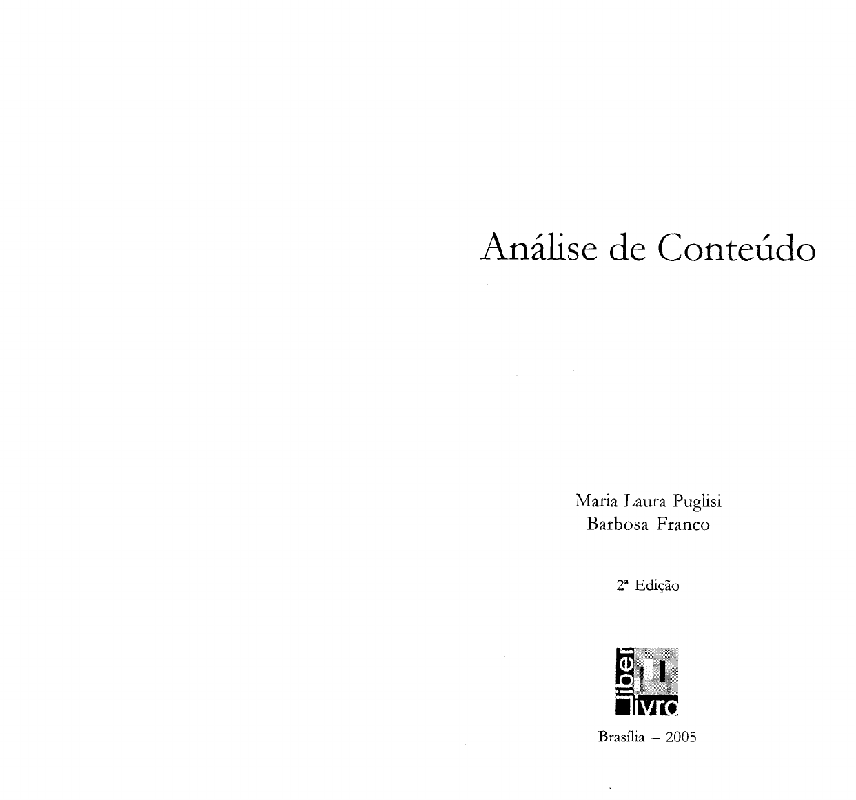 F825 Anilise de conte~do / Maria Laura Puglisi