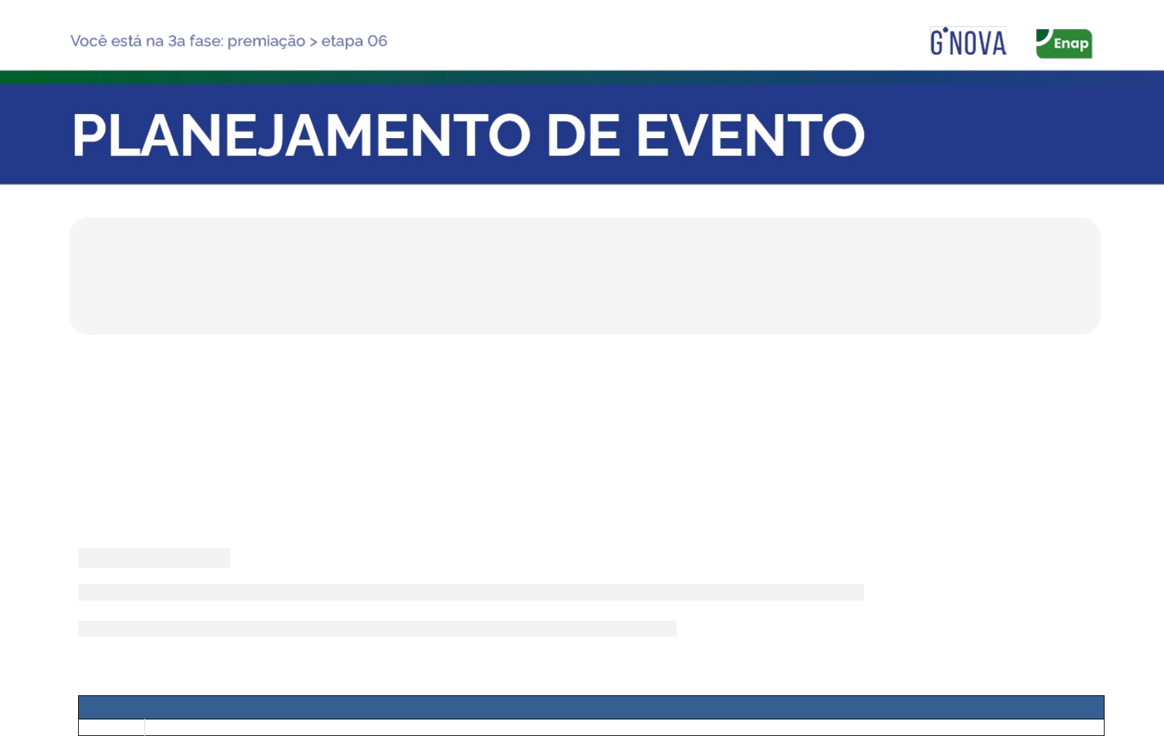 NOTA EXPLICATIVA O modelo de planejamento de evento fornece uma base para realização de eventos de premiação de soluções inovadoras. Este é um modelo amplo e genérico e pode ser adequado às especificidades de cada evento. IDENTIFICAÇÃO Nome: Tema: Data/Período: Horário(s): Local: Cidade/Estado: Público: Número estimado de participantes: Tipo: Abrangência: Modalidade: Formato: Área(s) demandante(s): Líder/Contato: Parceiro(s) externo(s): Líder/Contato: Líder/Contato: Parceiro(s) internos: Líder/Contato: Líder/Contato: INFORMAÇÕES Objetivo(s) do Evento: Premissas e/ou observações importantes: RESPONSABILIDADES Atribuições gerais da(s) áreas(s) demandante(s): Unidade A Unidade B Atribuições gerais do(s) parceiros externos Parceiro A Parceiro B Atribuições gerais do(s) parceiro(s) interno(s) Unidade A Unidade B CHECK LIST PROVIDÊNCIAS INICIAIS Ação: Responsável/Contato: Prazo final: Coordenação das providências iniciais Recebimento da demanda do Gabinete do Presidente ou Diretoria responsável pelo evento Reunião com responsáveis para definir convite e programação (atos, composição de mesa, falas, etc.). Contatar outros Cerimoniais, no caso de parcerias ou participação em eventos de terceiros. Registro do evento no sistema da instituição Definição e reserva do local do evento Realizar visita prévia ao local para verificar condições e necessidades. Importante checar: - Acesso dos convidados, acesso das autoridades, sala vip, copa, toilettes, espaço para imprensa, etc. - Posicionamento da mesa principal, cadeiras, púlpitos, decoração floral, banner e/ou fundo de palco, equipamentos audiovisuais adequados à programação do evento (microfones com ou sem fio, de mesa, datashow, telão, sonorização, cabine e equipamentos de tradução, etc.) - Garçom para serviço de água e/ou café na mesa principal e para Mestre de Cerimônias. - Se houver bandeiras, verificar se estão na posição (direita do palco) e precedência corretas. - Se houver assinatura de atos, providenciar: mesa pequena e móvel para assinatura do(s) documento(s), pasta(s) de couro para colocação dos documentos, caneta(s) reserva. Receber documentos previamente. - Se houver entrega de prêmios, providenciar: mesa de apoio para colocação das peças (troféus, medalhas, placas, certificados, etc.). Receber e conferir as peças previamente. Contratação de serviços da empresa de eventos Contratação de serviços de terceiros Para evento virtual, definir plataformas de transmissão e gerar links. Bloqueio de hotel para palestrantes/convidados/participantes Controle financeiro (planilha excel com custos estimados e realizados do evento) CONVITES Ação: Responsável/Contato: Prazo final: Coordenação dos convites Contato com outros Cerimoniais (para convites em eventos com outros realizadores/parceiros) Elaboração do texto Elaboração do layout Aprovação Seleção de mailing Carta convite para autoridades Envio dos convites Reenvio de convites em caso de erros ou inclusões Confirmação de presenças Lista de convidados para credenciamento PALESTRANTES Ação: Responsável/Contato: Prazo final: Coordenação dos palestrantes Prospecção/definição de palestrantes Contato prévio para convite Convite oficial Confirmação de presença Verificação de necessidades especiais ou restrições (alimentares, físicas, etc.) Orientações/briefing/links para palestrantes Currículo e foto dos palestrantes Autorização para uso de imagem/voz/conteúdos dos palestrantes Passagens, diárias, traslados e apoio Apresentação do palestrante (arquivo ou pen drive) Para eventos virtuais, realização de teste prévio da transmissão Certificados para os palestrantes Cartas/cartões de boas-vindas (hotel) e de agradecimento DIVULGAÇÃO Ação: Responsável/Contato: Prazo final: Coordenação da divulgação Definição/elaboração/execução das ações de divulgação (cards, flyers, folders, mala-direta, etc.) Definição/elaboração/execução das ações de imprensa (contato com imprensa, press kit, etc) Definição/elaboração/execução das ações de comunicação interna MATERIAL GRÁFICO - IDENTIDADE VISUAL - OUTRAS PEÇAS Ação: Responsável/Contato: Prazo final: Coordenação do material gráfico, identidade visual e outros Criação de marca e/ou identidade visual Banners e thumbnails, no caso de eventos virtuais Pastas Blocos Canetas Programas Folheteria Fichas de avaliação Crachás Certificados (palestrantes e participantes) Fundo de palco Banners Faixa de mesa Sinalização e identificação de salas Prismas de mesa (autoridades) Prismas de pé (reservas de lugares para autoridades) Prismas de identificação em mesas de buffet Prismas de marcação de lugares em mesas de refeição Cartazetes de reservados Cartazetes de marcação de tempo Placas/troféus Lembranças (livros, brindes, etc.) INFRAESTRUTURA E LOGÍSTICA Ação: Responsável/Contato: Prazo final: Coordenação de infra e logística Informática: computadores, internet, redes, impressoras Streaming (transmissão ao vivo, verificar adaptações para eventos virtuais/híbridos) Áudio, vídeo, suporte: projetores, telões, microfones, televisões, geradores, cabos elétricos Equipamentos e cabines de tradução Móveis: mesas, cadeiras, balcões, bistrôs, bancos, púlpitos, sofás, tapetes Decoração floral: púlpito, mesa principal, entrada, sala vip, buffet Montagem de áreas, estandes Jardinagem e paisagismo Apoio: porta-banners, porta-folders Atendimento médico (UTI móvel) ALIMENTAÇÃO Ação: Responsável/Contato: Prazo final: Coordenação do serviço de alimentação Coffee-break Almoço Jantar Coquetel Serviço para mesa principal (água e café) Serviço para participantes/convidados (água e café sempre disponíveis no hall ou espaços) RECURSOS HUMANOS - SERVIÇOS Ação: Responsável/Contato: Prazo final: Coordenação de recursos humanos e serviços Recepcionistas Gar