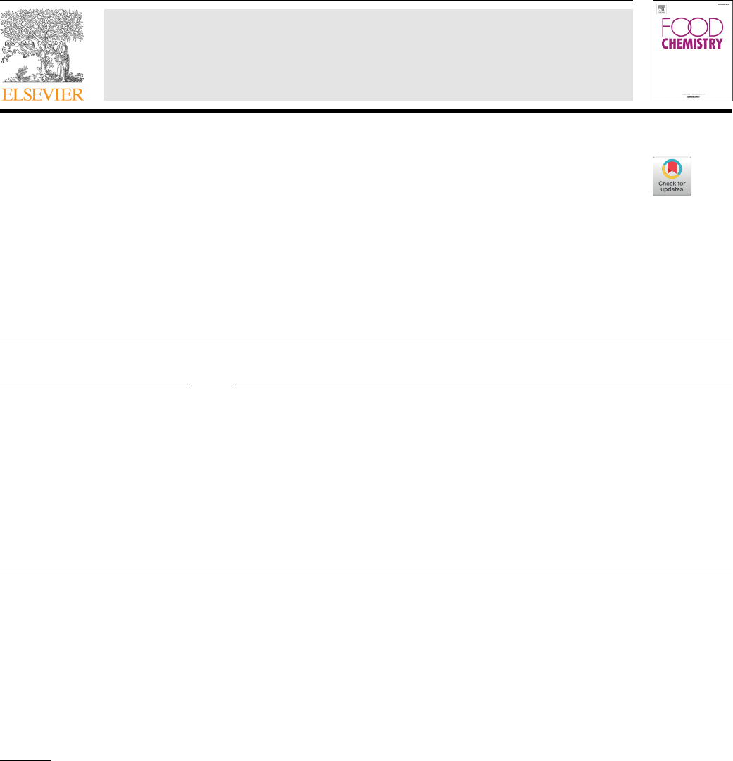 Contents lists available at ScienceDirect Food Chemistry journal homepage: www.elsevier.com/locate/foodchem Microfiltered red–purple pitaya colorant: UPLC-ESI-QTOF-MSE-based metabolic profile and its potential application as a natural food ingredient Ana Carolina Viana de Limaa, Ana Paula Dionisiob,⁎, Fernando Antonio Pinto de Abreub, Gisele Silvestre da Silvab, Rodolfo Dantas Lima Juniorc, Hilton César Rodrigues Magalhãesb, Deborah dos Santos Garrutib, Idila Maria da Silva Araújob, Adriana Guirado Arturb, Carlos Alberto Kenji Taniguchib, Maria do Carmo Passos Rodriguesa, Guilherme Julião Zocolob a Department of Food Engineering, Federal University of Ceará, 60356-000 Fortaleza, Ceará, Brazil b Embrapa Agroindústria Tropical, Sara Mesquita Street, 2270, 60511-110 Fortaleza, Ceará, Brazil c Biotechnology and Mass Spectrometry Research Group, Federal University of Ceará, 60440-900 Fortaleza, Ceará, Brazil A R T I C L E I N F O Chemical compounds studied in this article: Phyllocactin (PubChem CID: 101056997) Sucrose (PubChem CID: 5988) Betanine (PubChem CID: 12300103) Quercetin (PubChem CID: 528045) Luteolin (PubChem CID: 5280445) Keywords: Hylocereus polyrhizus (F.A.C. Weber) Britton & Rose Storage conditions Chemometric methods Colorant properties Yogurt A B S T R A C T Complete characterization of microfiltered red–purple pitaya colorant (MRPPC) and its potential applications in foods is described. Using sensorial analysis, products that use carmine or beetroot dye as a food colorant in their formulations were compared. The effect of storage under refrigeration on the microbiological, physicochemical, and chemical changes of MRPPC were evaluated. The results showed that UPLC-ESI-QTOF-MSE was effective for the simultaneous determination of twenty metabolites, putatively identified as carbohydrates, flavonoids, and betalains. The MRPPC was shown to have microbiological and physicochemical stability through twelve weeks of storage, and chemometric analyses efficiently distinguished the metabolic profile in each storage period. Sensory analysis revealed that the MRPPC was useful as a food colorant in yogurt, where it improved color quality without affecting aroma and other characteristics. These results indicate that MRPPC is promising food ingredient as a natural red–purple colorant. 1. Introduction Color plays an important role in enhancing the aesthetic appeal of food products. Colorants are commonly used to recover the loss of natural food color as a result of food processing procedures (e.g., heat treatment, acidification, etc.) and enhance the appearance of food products (Yee & Wah, 2017). Public concern about possible or proven harmful effects of artificial food colorants has motivated the search for natural sources of colorants (Sigurdson, Tang, & Giusti, 2017). Conse- quently, natural pigments extracted from biological sources such as plants, fungi, bacteria, and algae have attracted significant attention. Recently, the use of natural colorant carmine, a pigment derived from the scale insect cochineal (Dactylopius coccus Costa), has received widespread criticism because of to its “non-vegan” origin, undesired aluminum content of carmine lakes, recurring microbiological issues, and its ability to induce allergic reactions (Schweiggert, 2018). The https://doi.org/10.1016/j.foodchem.2020.127222 Received 16 March 2020; Received in revised form 27 May 2020; Accepted 31 May 2020 Abbreviations: MRPPC, Microfiltered red–purple pitaya colorant; UPLC-ESI-QTOF-MSE, ultra-performance liquid chromatography-quadrupole time-of-flight mass spectrometry; iPCA, interactive principal component analysis; HCA, hierarchical cluster analysis; Heatmap2, two-way heatmap analysis; GAE, gallic acid equivalent; SD, standard deviation; HS-SPME, headspace solid-phase microextraction; PCs, principal components; 3D, three dimensions; GC–MS, gas chromatograph equipped with a mass spectrometer detector; tR, mass data (m/z) and retention time; PPO, polyphenol oxidase; Cfu, (colony-forming unit); ΔE, difference in color; BPI, base peak intensity; MRPPCT(n), where (n): n= 0 1 2 and 3 refer to period of storage MRPPCT0 after processing MRPPCT1 after four weeks of storage MRPPCT2 after eight weeks of storage and MRPPCT3 after twelve weeks of storage similarity index (SI) and mass error = (detected m/z –theoretical m/z)/ theoretical m/z x 106 ppm ⁎ Corresponding author. E-mail addresses: carolv6lima@gmail.com (A.C.V.d. Lima), ana.dionisio@embrapa.br (A.P. Dionisio), Fernando.abreu@embrapa.br (F.A.P.d. Abreu), gihchemistry@gmail.com (G.S.d. Silva), rodolfodantasquimica@alu.ufc.br (R.D. Lima Junior), hilton.magalhaes@embrapa.br (H.C.R. Magalhães), deborah.garruti@embrapa.br (D.d.S. Garruti), idila.araujo@embrapa.br (I.M.d.S. Araújo), driguirado@yahoo.com.br (A.G. Artur), carlos.taniguchi@embrapa.br (C.A.K. Taniguchi), carminha@ufc.br (M.d.C.P. Rodrigues), guilherme.zocolo@embrapa.br (G.J. Zocolo). Food Chemistry 330 (2020) 127222 Available online 02 June 2020 0308-8146/ © 2020 Elsevier Ltd. All rights reserved. T http://www.sciencedirect.com/science/journal/03088146 https://www.elsevier.com/locate/foodchem https://doi.org/10.1016/j.foodchem.2020.127222 https://doi.org/10.1016/j.foodchem.2020.127222 mailto:carolv6lima@gmail.com mailto:ana.dionisio@embrapa.br mailto:Fernando.abreu@embrapa.br mailto:gihchemistry@gmail.com mailto:rodolfodantasquimica@alu.ufc.br mailto:hilton.magalhaes@embrapa.br mailto:deborah.garruti@embrapa.br mailto:idila.araujo@embrapa.br mailto:driguirado@yahoo.com.br mailto:carlos.taniguchi@embrapa.br mailto:carminha@ufc.br mailto:guilherme.zocolo@embrapa.br https://doi.org/10.1016/j.foodchem.2020.127222 http://crossmark.crossref.org/dialog/?doi=10.1016/j.foodchem.2020.127222&domain=pdf search for alternatives sources of carmine has gained momentum worldwide because it is one of the most commonly used colors for fruit preparations and dairy products (e.g., strawberry yogu