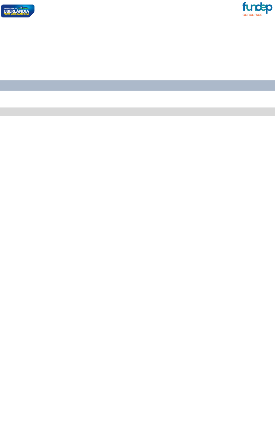PROGRAMAS E REFERÊNCIAS BIBLIOGRÁFICAS PREFEITURA MUNICIPAL DE UBERLÂNDIA ENSINO FUNDAMENTAL COMPLETO LÍNGUA PORTUGUESA (TODOS OS CARGOS) PROGRAMA 1. Leitura e interpretação de textos. 2. Conhecimentos linguísticos (norma padrão da língua portuguesa): ortografia (conforme o Novo Acordo Ortográfico); acentuação gráfica; emprego de sinais de pontuação. Formação de palavras, sinonímia, antonímia. Classe de palavras. Função das palavras nos enunciados e nos textos. Emprego de conectores. Colocação pronominal. Emprego de tempos e modos verbais. Estruturação sintática e semântica dos termos na oração e das orações no período: coordenação e subordinação. Regência nominal e verbal; uso do sinal indicativo de crase. Concordância nominal e verbal. 3. Tipologia textual (narração, descrição, exposição, argumentação e injunção). Argumentação: formas de articulação dos argumentos; elementos da organização textual: segmentação, progressão, encadeamento e ordenação. Gêneros textuais: estrutura e função. Princípios de textualidade: coesão e coerência textuais. Paragrafação. A construção dos sentidos do texto. 4. Funções de linguagem. Figuras de Linguagem. Multimodalidade: linguagem verbal e não verbal. REFERÊNCIAS ANTUNES, Irandé. Análise de textos: fundamentos e práticas. São Paulo: Parábola, 2011. COSTA VAL, Maria da Graça. Repensando a textualidade. In: AZEREDO, José Carlos (org.). Língua Portuguesa em Debate: conhecimento e ensino. Petrópolis: Vozes, 2000. p. 34-51. CUNHA, Celso; CINTRA, Lindley. Nova Gramática do Português Contemporâneo. 6. ed. Rio de Janeiro: Lexikon, 2013. EMEDIATO, Wander. A fórmula do texto. São Paulo: Geração Editorial, 2007. FARACO, Carlos Alberto. Novo Acordo Ortográfico. Editora Parábola. Disponível em: https://www.escrevendoofuturo.org.br/EscrevendoFuturo/arquivos/187/novoacordo2.pdf. Acesso em: 26 maio 2023. FERNANDES, Francisco. Dicionário de Sinônimos e Antônimos da Língua Portuguesa. São Paulo: Globo, 1999. FONTANA, Niura M., PAVAIANI, Neires; PRESSATO, Isabel. Práticas de Linguagem: gêneros discursivos e interação. Caxias do Su-RSl: Educ, 2009. INFANTE, Ulisses. Do texto ao texto. São Paulo: Scipione, 1991. KOCH, Ingedore Villaça. O texto e a construção dos sentidos. São Paulo: Contexto, 1998. KOCH, Ingedore Villaça; ELIAS, Vanda Maria. Ler e escrever: estratégias de produção textual. São Paulo: Contexto, 2014. KOCH, Ingedore Villaça; TRAVAGLIA, L. Carlos. Texto e coerência. São Paulo: Contexto, 1997. https://www.escrevendoofuturo.org.br/EscrevendoFuturo/arquivos/187/novoacordo2.pdf MARCUSCHI, Luiz Antônio. Produção textual, análise de gêneros e compreensão. São Paulo: Parábola Editorial, 2008. MARINHO, Janice Helena Chaves; DACONTI, Geruza Corrêa; CUNHA, Gustavo Ximenes. O texto e sua tipologia: fundamentos e aplicações. Belo Horizonte: Faculdade de Letras da UFMG, 2012. PASQUALE; ULISSES. Gramática da Língua Portuguesa. São Paulo: Scipione. PLATÃO e FIORIN. Lições de texto: leitura e redação. São Paulo: Ática, 2002. MATEMÁTICA (TODOS OS CARGOS) PROGRAMA 1. Linguagem básica de conjuntos: pertinência, inclusão, igualdade, reunião, interseção e diferença, problemas. 2. Sistema de numeração decimal. 3. Conjunto dos números naturais: adição, subtração, multiplicação e divisão de números naturais. 4. Conjunto dos números racionais: operações com frações e números decimais (adição, subtração, multiplicação e divisão). 5. Porcentagem, proporção, regra de três simples e composta. 6. Sistema monetário brasileiro, medidas de comprimento, massa, capacidade e tempo. 7. Média aritmética simples. 8. Geometria plana: elementos primitivos, semirretas, semiplanos, segmentos e ângulos; retas perpendiculares e retas paralelas; área de triângulos e quadriláteros. 9. Leitura e identificação de dados apresentados em gráficos e tabelas. REFERÊNCIAS BIGODE, Antônio José Lopes; GIMENEZ, Joaquim. Matemática do Cotidiano & suas Conexões. 3º, 4º e 5º anos. São Paulo: FTD. DANTE, Luiz Roberto. Projeto Apis Matemática. Ensino Fundamental, 3º, 4º e 5º anos. São Paulo: Ática. GIOVANNI, José Ruy; GIOVANNI Jr., José Ruy. A Conquista da Matemática. 3º, 4º e 5º anos. São Paulo: FTD. CONHECIMENTOS GERAIS (TODOS OS CARGOS) PROGRAMA Atualidades e conhecimentos gerais do município de Uberlândia, do estado de Minas Gerais e do Brasil. Conhecimentos relativos a aspectos históricos, geográficos, políticos, econômicos, culturais e sociais do município de Uberlândia, do estado de Minas Gerais e do Brasil. REFERÊNCIAS CIDADE-BRASIL. Município de Uberlândia. Disponível em: https://www.cidade- brasil.com.br/municipio-uberlandia.html. Acesso em: 7 jun. 2023. IBGE. Uberlândia. Site eletrônico do IBGE relativo ao Município de Uberlândia. Disponível em: https://cidades.ibge.gov.br/brasil/mg/uberlandia/panorama. Acesso em: 7 jun. 2023. Imprensa escrita, falada, televisiva ou por internet. Livros de História de Minas Gerais e do Brasil, e de Geografia de Minas Gerais e do Brasil (didáticos, ensaísticos ou científicos). UBERLÂNDIA. Prefeitura Municipal de Uberlândia. Site eletrônico oficial. Disponível em: https://www.uberlandia.mg.gov.br/. Acesso em: 7 jun. 2023. UBERLÂNDIA. Câmara Municipal de Uberlândia. Site eletrônico oficial. Disponível em: https://www.camarauberlandia.mg.gov.br/. Acesso em: 7 jun. 2023. ENSINO MÉDIO E MÉDIO TÉCNICO LÍNGUA PORTUGUESA (TODOS OS CARGOS) PROGRAMA Leitura e interpretação de textos. Tipologia textual e gêneros textuais. Ortografia e acentuação. Funções da linguagem. Recursos verbais, não verbais e multissemióticos. Denotação e conotação. Argumentação, opinião e informação. Figuras de linguagem. Conhecimentos linguísticos de acordo com a gramática tradicional: formação de palavras e seleção vocabular; classe de palavras e colocação