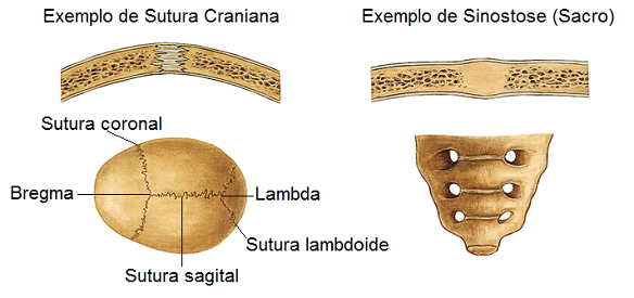 Exemplo de Sutura Craniana Exemplo de Sinostose (Sacro Sutura coronal Bregma Lambda Sutura lambdoide Sutura sagital