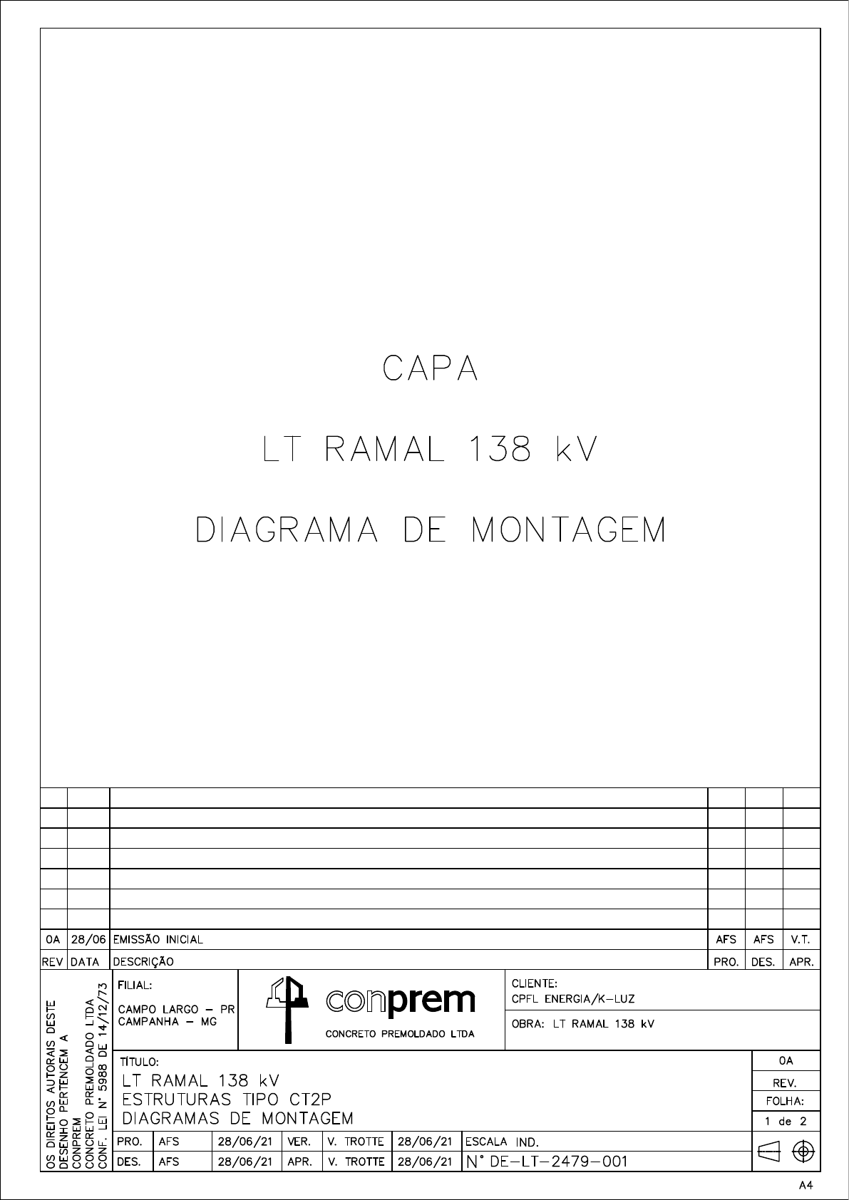 N O T A S : 1 ) DIMENSÕES EM MILIMETRO, EXCETO ONDE INDICADO EM OUTRA UNIDADE DE MEDIDA ; 2 ) PARA LISTA DE MATEIRAL VER LM-LT-2405-001.02 ; 3 ) DESENHO DE REFERÊNCIA : PE-PD-381-CT2P, FOLHA 1/1, REVISÃO 00 ; 4 ) TODOS OS MÓDULOS DA ESCADA UTILIZAÇÃO PRESILHAS BIFILARES . L I S T A D E M A T E R I A L R-20/ 6.000/ 27,00 m D E S C R I Ç Ã O N° DESENHO QTDEPEÇA C1 1 PRESILHA BIFILARF1 OLHAL PARA PARAFUSO Ø 3/4" W PARAF. CAB. SEXT. Ø 1/2" W x 60 mm, C/1 P e 1 A. R. F3 F4 50 18 31 6PARAF. CAB. SEXT. Ø 3/4" W x 275 mm, C/2 P e 2 A. Q. 4 F12 CRUZETA COM 4,30 m - (PR)A1 CRUZETA COM 5,70 m - (1° CONDUTOR) CRUZETA COM 5,70 m - (2° CONDUTOR) CRUZETA COM 5,70 m - (3° CONDUTOR) A2 A3 A4 1 1 1 1 22 4 8 PARAF. CAB. SEXT. Ø 9/16" W x 650 mm, C/2 P, 1 AL e 1 A.Q. 1 CHAPA DE ATERRAMENTO TIPO 3F2 19PARAF. CAB. SEXT. Ø 1/2" W x 50 mm, C/1 A. REDONDA F5 12 27.000 24.000 375 2.525 POSIÇÃO A1 DA CRUZETA DESENHO A2 A3 DE-LT-2358-003.03 It. 1 DE-LT-2358-003.04 It. 2 DE-LT-2358-003.04 It. 3 POSIÇÃO A5 DOS BRAÇOS DESENHO A6 A7 DE-LT-2405-003.05 DE-LT-2405-003.06 It. 1 3.500 3.500 3.000 14.100 12 ° - 3. 21 5 - 6. 71 5 - 10 .2 15 A2 A3 A4 2. 00 0 2. 00 0 A1 - 55 0 0. 00 0 2. 70 0 2. 70 0A5 A6 A7 A8 QUANTITATIVO DOS MÓDULOS DA ESCADA: 1x MÓDULO COM 1,99 E 5x MÓDULOS COM 2,99 m A4 DE-LT-2358-003.04 It. 3A8 F8 F1 F2 F5 F9 F10 F11 F5F2F1 VISTA A CORTE B DETALHE 1 DETALHE 3 DETALHE 4 DETALHE 6 F2 F5F1 F8 DETALHE 2 DETALHE 5 F3 F3 ESCADA F2F1 F5F8 F2 F5F1 F8 F3 DETALHE 4 DETALHE 6 DETALHE 5 F2 F5F1F8 DETALHE 1 DETALHE 3 F3 F2 F5F1 F2 F5F1 F8 DETALHE 2 F3 F3 F7 F2 F5F1 F1 F4 F1 F4 F1 F4 F1 F4 F1 F4 F1F4 F1 F4 F1 F4 F1 F4 F1 F4 A5 DE-LT-2405-003.03 A6 A7 A8 DE-LT-2405-002.03 DE-LT-2405-003.04 It. 1 DE-LT-2405-003.04 It. 2 DE-LT-2405-003.06 It. 2 DE-LT-2405-003.04 It. 3 DE-LT-2405-003.06 It. 3 DE-LT-2405-003.05BRAÇO COM 2,595m - (PR) 1 1 1 DE-LT-2405-003.06 It. 1 1 BRAÇO COM 3,32m - (1° CONDUTOR) BRAÇO COM 3,32m - (2° CONDUTOR) BRAÇO COM 3,36m - (3° CONDUTOR) DE-LT-2405-003.06 It. 2 DE-LT-2405-003.06 It. 2 DE-LT-2405-004.02 F7 PARAF. CAB. SEXT. Ø 3/4" W x 350 mm, C/2 P e 2 A. Q. F7 MANILHA DE AÇO FORJADO CANTONEIRA L 2 1/2" x 1/4" x 300 mm F8 F9 F10 F11 F9 F10 PARAF. CAB. SEXT. Ø 5/8" W x 250 mm, C/2 P e 2 A. Q. DE-LT-2405-004.07 DE-LT-2405-004.08 DE-LT-2405-004.04 DE-LT-2405-004.05 F6 F6 F6 F6 F6 F6 F6 F6 F6 F6 F12 F6 F6 PARAF. CAB. SEXT. Ø 5/8" W x 55 mm, C/ 1 ARRUELA DE PRESSÃO 12 F11 ESCADA MODULADA COMPOSTA DE: Módulo de Escada C/1,99 m, C/4 Paraf. Sext. Ø 1/2"W x 50mm, C/1 P e 1AP Módulo de Escada C/2,99 m, C/4 Paraf. Sext. Ø 1/2"W x 50mm, C/1 P e 1AP E1 E2 E3 PERFIL DOBRADO 200 x 50 x 100 x 8 mm CHAPA DE AÇO 1/4" x 100 x 820 mm PARAF. CAB. SEXT. Ø 1/2" W x 50 mm, C/1 P. e 1 A.P. E4 E5 DE-LT-2405-004.06 DE-LT-2405-004.06 DE-LT-2405-004.06 DE-LT-2405-004.06 1 5 7 7 14 FERRAGEM PARA FIXAÇÃO DAS BASES (PEÇAS 4 e 6) DOS MÓDULOS: E6 E7 E8 E9 E10 PARAF. CAB. SEXT. Ø 5/8" W x 700 mm, C/2 P, 1 C.P, 2 AL e 2 A.Q. PARAF. CAB. SEXT. Ø 5/8" W x 750 mm, C/2 P, 1 C.P, 2 AL e 2 A.Q. PARAF. CAB. SEXT. Ø 5/8" W x 825 mm, C/2 P, 1 C.P, 2 AL e 2 A.Q. E11 PARAF. CAB. SEXT. Ø 5/8" W x 850 mm, C/2 P, 1 C.P, 2 AL e 2 A.Q. PARAF. CAB. SEXT. Ø 5/8" W x 925 mm, C/2 P, 1 C.P, 2 AL e 2 A.Q. PARAF. CAB. SEXT. Ø 5/8" W x 975 mm, C/2 P, 1 C.P, 2 AL e 2 A.Q. PARAF. CAB. SEXT. Ø 5/8" W x 1.025 mm, C/2 P, 1 C.P, 2 AL e 2 A.Q. 1 1 1 1 1 1 1E12 E13 19mARAME GUIA GALVANIZADO E13 500 C1 2. 70 0 A3 A4A2 A7 A8A6 2. 00 0A1 A5 1.150 3.000 (E2) 3.000 (E2) 2.000 (E1) 3.000 (E2) 3.000 (E2) 4.500500 PL ID PL IDPL ID PL ID PL ID PL ID PL ID PL ID DETALHE 7 (9X) INTERLIGAÇÃO DOS MÓDULOS DA ESCADA COM AS BASES (F3; F4) E SISTEMA P/ATERRAMENTO E2E1 E/OU F5F1 E3 E4 E5 E5 PARAF. Ø 5/8" W PL ID PL ID A - B - B - B - E6 E7 E8 E9 E10 E11 E12FIX. ESCADA FIX. ESCADA FIX. ESCADA FIX. ESCADA FIX. ESCADA PARAF. Ø 5/8" W E2E1 E/OU E5E5 E2E1 E/OU E3 E4 1° CONDUTOR 2° CONDUTOR 3° CONDUTORPR VER DETALHE 7, P/ INTELIGAÇÃO DOS MODULOS FIX. ESCADA 3.000 (E2) FIX. ESCADA