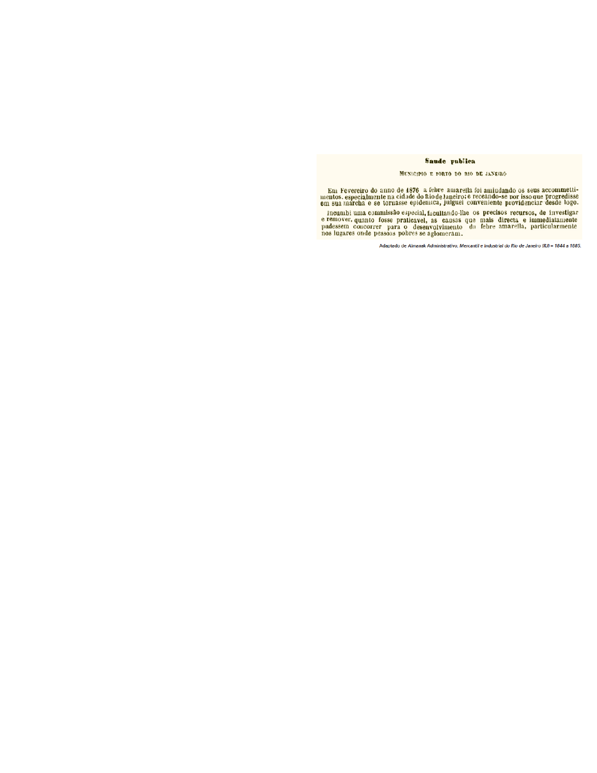 26.(FIP) De 1840 a 1889, em todos os aspectos do cotidiano brasileiro procurou-se imprimir a marca europeia. No café da manhã, por exemplo, o pão “francês” substitui a mandioca cozida, enquanto no almoço a cerveja começa a ser registrada e, na sobremesa, os sorvetes disputam, palmo a palmo, com os centenários doces, cujas receitas foram transmitidas de geração a geração nas fazendas açucareiras coloniais. (...) Fonte: DEL PRIORE, Mary; VENÂNCIO, Renato P. Uma breve História do Brasil. Editora Planeta do Brasil, 2012. A situação descrita resulta da: a)intensificação da presença francesa, em terras brasileiras. b)diminuição dos padrões coloniais questionados pela elite local. c)incorporação do modelo civilizador europeu às tradições existentes. d)depreciação dos hábitos escravocratas, em relação ao modelo europeu. e)substituição do modelo português colonizador de exploração. 27.(ENEM) Lei n. 3 353, de 13 de maio de 1888 A Princesa Imperial Regente, em nome de Sua Majestade o Imperador, o Senhor D. Pedro II, faz saber a todos os súditos do Império que a Assembleia-Geral decretou e ela sancionou a lei seguinte: Art. 1°: É declarada extinta desde a data desta lei a escravidão no Brasil. Art. 2°: Revogam-se as disposições em contrário. Manda, portanto, a todas as autoridades, a quem o conhecimento e execução da referida lei pertencer, que a cumpram, e façam cumprir e guardar tão inteiramente como nela se contém. Dada no Palácio do Rio de Janeiro, em 13 de maio de 1888, 67° ano da Independência e do Império. Princesa Imperial Regente. Disponível em: www.planalto.gov.br. Acesso em: 6 fev. 2015 (adaptado). Um dos fatores que levou à promulgação da lei apresentada foi o(a) a)abandono de propostas de imigração. b)fracasso do trabalho compulsório. c)manifestação do altruísmo britânico. d)afirmação da benevolência da Corte. e)persistência da campanha abolicionista. 28.(UERJ) Os relatos sobre as ondas epidêmicas de febre amarela na cidade do Rio de Janeiro apareceram com frequência nos periódicos, especialmente a partir da década de 1850. De acordo com o documento acima, no início da década de 1870, o alastramento da doença era associado ao seguinte fator: a)elevação de taxas de natalidade b)variação das condições climáticas c)ingresso de estrangeiros com infecção d)insalubridade das residências populares 29.(ESPCEX) Ideias republicanas estavam presentes entre os brasileiros há tempos. No século XVIII, inspiraram movimentos contra o domínio português. Em 1870, um grupo de políticos lançou, no Rio de Janeiro, o Manifesto Republicano. Os seguintes episódios, ocorridos na segunda metade do século XIX, abalaram o Império Brasileiro. Considerando os seguintes fatos: I – Questão Militar. II – Questão de Fronteiras. III – Questão Religiosa. IV – Questão da Cisplatina. V – Questão Abolicionista. Assinale abaixo a alternativa em que todas as proposições estão corretas no que se refere às questões que contribuiram para o fim do período Imperial Brasileiro. a)I e II. b)I, II e III. c)I, III e V. d)III, IV e V. e)IV e V. 30.(UFPR) Em 1888, a princesa Isabel, filha do imperador do Brasil, Pedro 2º, assinou a Lei Áurea, decretando a abolição […]. A decisão veio após mais de três séculos de escravidão, que resultaram em 4,9 milhões de africanos traficados para o Brasil, sendo que mais de 600 mil morreram no caminho. (Amanda Rossi e Camilla Costa, postado em 13 de maio de 2018 – BBC Brasil em São Paulo. Disponível em: https://www.bbc.com/ portuguese/brasil-44091469. Acesso em 25 de junho de 2019.) De acordo com o trecho acima, considere as seguintes afirmativas: 1. A chamada “Lei Áurea”, assinada pela princesa Isabel, não pode ser vista como uma concessão da monarquia, sendo resultado de um longo processo de luta e resistência que contou com a presença ativa de escravizados e escravizadas para sua libertação do cativeiro. 2. No período imediato que sucedeu à abolição, os libertos puderam contar com medidas de apoio na forma de distribuição de pequenos lotes de terra, tal como aconteceu nos Estados Unidos após a Guerra Civil, com a chamada “Reconstrução”. 3. Escravizados e escravizadas receberam apoio de muitos setores da sociedade da época ligados ao movimento abolicionista, sendo Luís Gama, filho de escrava e advogado autodidata, um dos personagens mais célebres e atuantes, empenhando-se na libertação de centenas de cativos e cativas. 4. Os segmentos da sociedade adeptos do regime escravista defendiam a “emancipação gradual” e nutriam o profundo receio de que a abolição imediata da escravidão trouxesse desorganização econômica e provocasse o caos social. Assinale a alternativa correta. a)Somente a afirmativa 3 é verdadeira. b)Somente as afirmativas 1 e 2 são verdadeiras. c)Somente as afirmativas 2 e 4 são verdadeiras. d)Somente as afirmativas 1, 3 e 4 são verdadeiras. e)As afirmativas 1, 2, 3 e 4 são verdadeiras. 1. (FMP) Considere o texto sobre deslocamento populacional. A perseguição aos judeus e a outros grupos étnicos e religiosos, durante a Segunda Guerra Mundial, alertou o mundo para a necessidade de ampliar a proteção internacional às vítimas de perseguição e de estruturar um programa de asilo que envolvesse o maior número possível de países. Em meados dos anos 2010, o mundo conheceu o início de uma crise provocada pelo deslocamento geográfico de pessoas em dimensões globais. Trata-se da maior crise desta natureza desde a Segunda Guerra Mundial. Segundo dados da ONU, o número de pessoas deslocadas por guerras, perseguições de toda ordem e conflito, além daquelas que se deslocam devido a eventos ambientais extremos, atingia cerca de 60 milhões, considerando os que se deslocaram interna e externamente. Um dos maiores fluxos dessas pessoas passou a ocorrer do Oriente Médio e da África em direção à Europa. LU