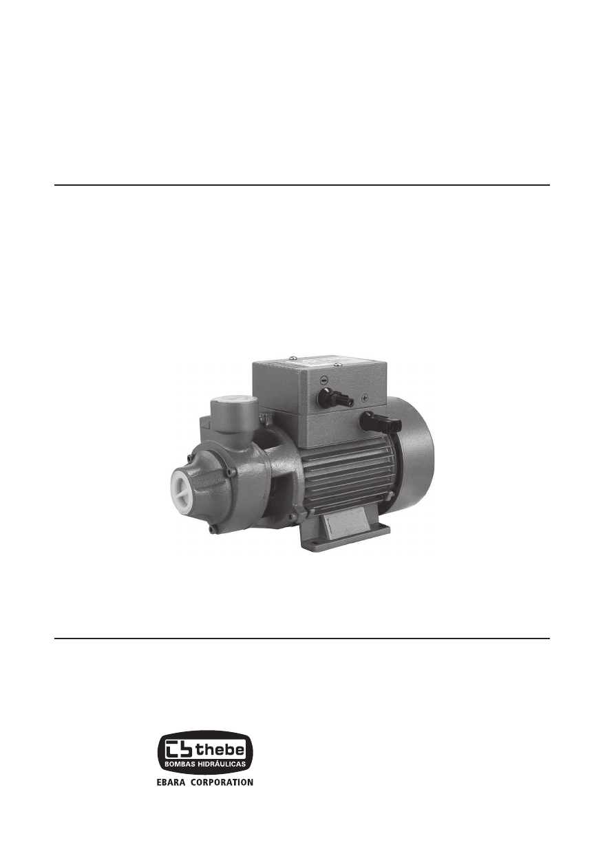 EBARA BOMBAS AMÉRICA DO SUL LTDA. Modelos TP ciMANUAL DE INSTRUÇÕES 1 Modelo TP ci Motobomba Solar Periférica Manual de Instruções e Termo de Garantia EBARA BOMBAS AMÉRICA DO SUL LTDA. EBARA BOMBAS AMÉRICA DO SUL LTDA. Modelos TP ciMANUAL DE INSTRUÇÕES 3 Você acaba de adquirir um dos produtos com a marca THEBE, construído com materiais de primeira linha, sob rígidos padrões de qualidade e segundo normas elétricas e hidráulicas da mais alta tecnologia mundial. Este manual tem o caráter de orientação e foi elaborado para sua maior segurança e tranquilidade na instalação e operação do equipamento EBARA. Eventuais esclarecimentos e outras informações que não constem neste manual deverão ser obtidas através de nosso Departamento de Assistência Técnica. EBARA BOMBAS AMÉRICA DO SUL LTDA. Modelos TP ciMANUAL DE INSTRUÇÕES 4 1. Aplicações ........................................................................................................................................................................................... 2. Características ................................................................................................................................................................................... 3. Controlador Eletrônico ..................................................................................................................................................................... 4. Instalação Hidráulica ................................................................................................................................................................. 5. Posicionamento e angulação do suporte ......................................................................................... 6. Assistência Técnica .................................................................................................................................................................... 7. Garantia ............................................................................................................................................................................................. 5 5 7 10 11 12 13 ÍNDICE Página EBARA BOMBAS AMÉRICA DO SUL LTDA. Modelos TP ciMANUAL DE INSTRUÇÕES 5 1. Aplicações • Abastecimento de reservatórios/caixas d’água, transferência entre cisternas, pressurização de jardins. • Aplicação de pequeno porte na indústria • Uso em pequenas irrigações 2. Características Bombeador • Carcaça em ferro fundido • Rotor em bronze com dispositivo antitravamento • Bocais de sucção e recalque 1” BSP Motor • Motor trifásico (CC) de ímã permanente sem escovas, com alimentação em corrente contínua. • Carcaça em alumínio • Refrigeração por ventilação forçada • Vedação com selo mecânico • Mancais: Rolamento de esferas • Controlador eletrônico interno (ci) com função MPPT • Ponta do eixo em inox Limites de aplicação • Água limpa • Temperatura máxima da água: 80°C • Concentração máxima de partículas sólidas: 0,05% • pH da água: 6,5 - 8,5 • Teor máximo de sais minerais na água: 400mg/L Operação • A operação do equipamento deve seguir as recomendações e limites de aplicação citados, caso contrário poderá causar danos ao equipamento. • Recomendamos a operação com água limpa sem areia e detritos, caso contrário poderá causar avarias ao equipamento. • Encha completamente a bomba periférica com água limpa antes da partida. Ao completar esta operação, rosqueie o bujão com cuidado para não danificar o o-ring. Deve-se escorvar a bomba periférica toda vez que ficar sem funcionar por longos períodos ou no caso de entrada de ar no sistema. EBARA BOMBAS AMÉRICA DO SUL LTDA. Modelos TP ciMANUAL DE INSTRUÇÕES 6 Figura – Escorva da bomba ATENÇÃO Nunca ligue a bomba sem escorvar. Se isto acontecer, desligue a bomba e espere que se resfrie para poder voltar a escorvar. Tabela – Dados técnicos dos equipamentos Modelo Controlador Potência (W) Corrente Nominal (A) Tensão (Vcc) Vazão Máxima (m³/h) Altura Máxima (mca) Ø Sucção Ø Recalque TP ci Interno 272 8 44 1.5 34 1” BSP 1” BSP 540 7.58 72 2.5 51 EBARA BOMBAS AMÉRICA DO SUL LTDA. Modelos TP ciMANUAL DE INSTRUÇÕES 7 Figura – Curvas de performance nas tensões nominais dos equipamentos Obs: Em dias nublados, períodos de menor incidência de luminosidade solar ou quando houver redução na intensidade de luz solar, a tensão de alimentação fornecida pelos painéis solares se reduzirá também, diminuindo a performance da motobomba. As curvas foram traçadas com base na tensão nominal do equipamento, isto é, recebendo a máxima intensidade de luz solar. 3. Controlador eletrônico Nomenclatura • TP ci: modelo com controlador eletrônico interno Princípio de operação Os painéis fotovoltaicos convertem a energia da luz solar em energia elétrica (corrente contínua). O controlador eletrônico estabiliza a tensão de entrada (Vcc) e cria uma saída trifásica em corrente contínua para acionamento da motobomba. Funções do controlador eletrônico I. Proteção contra subtensão (automática); II. Proteção contra sobrecorrente (automática); III. Proteção contra superaquecimento; IV. Proteção contra perda de fase; 0 10 20 30 40 50 60 0 0,5 1 1,5 2 2,5 ) m( acirté mona M arutl A Vazão (m³/h) 272W 540W EBARA BOMBAS AMÉRICA DO SUL LTDA. Modelos TP ciMANUAL DE INSTRUÇÕES 8 V. Função MPPT com rastreamento automático do ponto de máxima potência; Instalação elétrica e diagnóstico de falhas Tabela – Valores máximos e mínimos de tensão de entrada (Vcc) Em dias nublados, períodos de menor incidência de luminosidade solar ou quando houver redução na intensidade de luz solar, a tensão de alimentação fornecida pelos painéis solares se reduzirá também. Caso a tensão de alimentação esteja menor que a tensão mínima do equipam