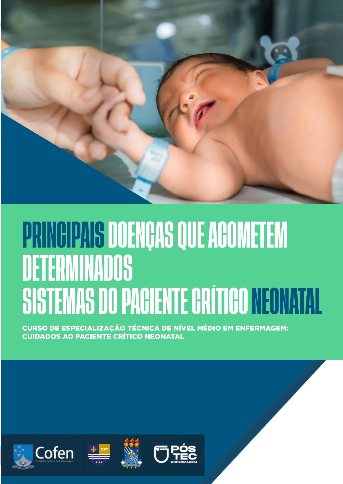 1 PRINCIPAIS DOENÇAS QUE ACOMETEM DETERMINADOS SISTEMAS DO PACIENTE CRÍTICO NEONATAL CURSO DE ESPECIALIZAÇÃO TÉCNICA DE NÍVEL MÉDIO EM ENFERMAGEM: Catalogação na Publicação Biblioteca Setorial do CPT-ETS/UFPB Autor: Mariana Cavalcante Martins Organizador: Kalina Coeli Costa de Oliveira Dias Nathalia Costa Gonzaga Saraiva M386p Martins, Mariana Cavalcante. Principais doenças que acometem determinados sistemas do paciente crítico neonatal: curso de especialização técnica de nível médio em enfermagem - cuidados ao paciente crítico neonatal / Mariana Cavalcante Martins ; organizadores Kalina Coeli Costa de Oliveira Dias, Nathalia Costa Gonzaga Saraiva. – João Pessoa: Programa Pós-Tec Enfermagem do Conselho Federal de Enfermagem (Cofen) e da Universidade Federal da Paraíba (UFPB), [2023]. ISBN 978-65-5621-365-1 Recurso digital: 3,5 MB Formato: ePDF. Requisito do Sistema: Adobe Acrobat Reader. 1. Enfermagem – Cuidados intensivos. 2. Paciente crítico – Recém- nascido. 3. Patologias – Neonatologia. 4. Unidade de Terapia Intensiva Neonatal – UTIN. I. Dias, Kalina Coeli Costa de Oliveira. II. Saraiva, Nathalia Costa Gonzaga. III. Título. UFPB/BS-CPT-ETS CDU 616-083.98-053.31 3 PRINCIPAIS DOENÇAS QUE ACOMETEM DETERMINADOS SISTEMAS DO PACIENTE CRÍTICO NEONATAL CURSO DE ESPECIALIZAÇÃO TÉCNICA DE NÍVEL MÉDIO EM ENFERMAGEM: APRESENTAÇÃO ......................................................................................... 5 PRINCIPAIS PATOLOGIAS QUE ACOMETEM SISTEMAS DO PACIENTE CRÍTICO EM NEONATOLOGIA .................................................................. 6 1 Principais alterações neurológicas em neonatologia .......................... 7 1.1 Hemorragia Peri-intraventricular (HPIV) ............................................ 8 1.2 Microcefalia e Hidrocefalia .................................................................. 11 1.3 Encefalopatia Hipóxico-Isquêmica (EHI) ......................................... 14 1.4 Crise epiléptica neonatal – Convulsões ............................................ 17 1.5 Assistência do técnico de enfermagem na monitorização intracraniana ............................................................................................. 20 1.6 Assistência do técnico de enfermagem na coleta de líquor para exames ....................................................................................................... 24 2. Principais alterações respiratórias em neonatologia ....................... 27 2.1 Síndrome do desconforto respiratório (SDR) ................................. 27 2.2 Síndrome da aspiração de mecônio (SAM) .................................... 30 2.3 Pneumotórax ....................................................................................... 31 2.4 Taquipneia transitória ....................................................................... 34 2.5 Hipertensão pulmonar persistente ................................................... 35 3. Principais alterações cardiológicas em neonatologia ..................... 36 3.1 Cardiopatias congênitas ..................................................................... 36 3.2 Pressão Arterial Média e Pressão Venosa Central: monitorização ..................................................................................................................... 37 3.3 Eletrocardiograma – ECG .................................................................. 39 REFERÊNCIAS............................................................................................ 41 5 PRINCIPAIS DOENÇAS QUE ACOMETEM DETERMINADOS SISTEMAS DO PACIENTE CRÍTICO NEONATAL CURSO DE ESPECIALIZAÇÃO TÉCNICA DE NÍVEL MÉDIO EM ENFERMAGEM: Este é o seu e-book da disciplina: Principais patologias que acometem sistemas do paciente crítico neonatal. Mediante a leitura do e-book você será capaz de compreender as principais doenças inerentes aos sistemas neurológico, sistema respiratório e sistema cardiológico. Nesse e-book, abordaremos conceito, manifestações clínicas, diagnósticos, tratamento com ênfase nos cuidados do técnico de enfermagem e prognóstico. Iremos abordar esses aspectos teóricos por meio de uma linguagem simples, guiados por glossário de termos e imagens para melhor compreensão dos conteúdos. Essas patologias/alterações que iremos abordar aqui são de fundamental importância para a sua atuação de excelência quanto técnico de enfermagem da UTI Neonatal. Vamos lá?! Bons estudos! 6 PRINCIPAIS DOENÇAS QUE ACOMETEM DETERMINADOS SISTEMAS DO PACIENTE CRÍTICO NEONATAL CURSO DE ESPECIALIZAÇÃO TÉCNICA DE NÍVEL MÉDIO EM ENFERMAGEM: Um paciente crítico (alto risco) em neonatologia é aquele que apresenta risco de Morbidade: e Mortalidade: devido a condições ou circunstâncias associadas ao nascimento e à adaptação à vida extrauterina, independentemente de sua idade gestacional ou peso ao nascimento. Esses pacientes/recém-nascidos apresentam alterações que devem ser conhecidas pelo técnico de enfermagem, envolvendo aspectos referentes ao conceito, manifestações clínicas, diagnósticos, tratamento e prognóstico, para que ocorra uma atuação multiprofissional de qualidade. Antes de começar vamos relembrar a diferença entre Diagnóstico e Prognóstico? Morbidade: Qualquer desequilíbrio no estado de bem- estar biopsicossocial do indivíduo Mortalidade: Óbitos que ocorrem em tempo e espaço determinados 7 PRINCIPAIS DOENÇAS QUE ACOMETEM DETERMINADOS SISTEMAS DO PACIENTE CRÍTICO NEONATAL CURSO DE ESPECIALIZAÇÃO TÉCNICA DE NÍVEL MÉDIO EM ENFERMAGEM: Antes de começar vamos relembrar a diferença entre Diagnóstico e Prognóstico? As alterações neurológicas são comuns nos recém-nascidos críticos, pois são mais susceptíveis à Lesão celular isquêmica que pode ser causada por variação do fluxo sanguíneo cerebral (tanto aumentado como reduzido) decorrente da Asfixia. As alterações n