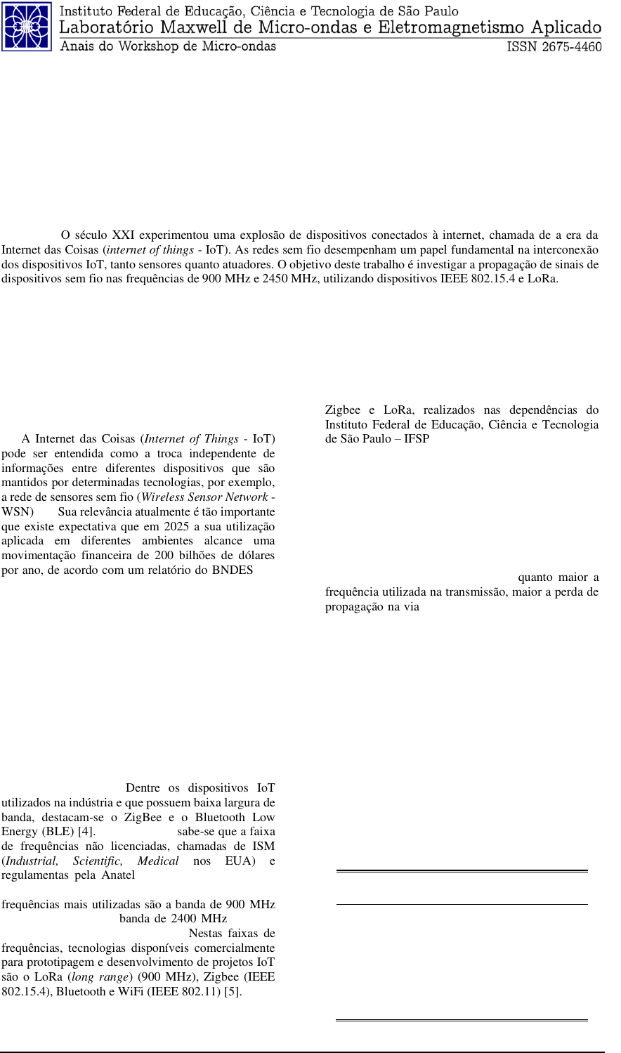 Palavras-chave: IoT; LoRa; IEEE 802.15.4; WSN; Propagação.