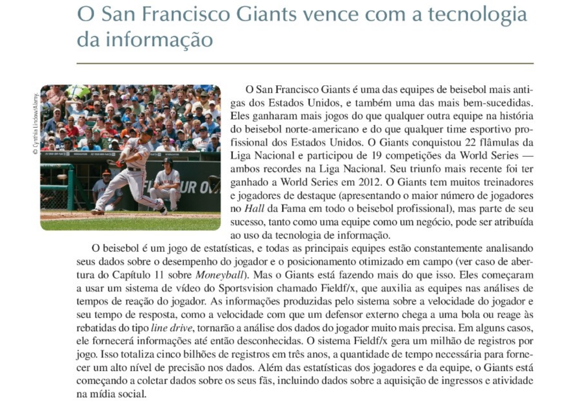 ATIVIDADE PRÁTICA FUNDAMENTOS DE SISTEMAS DE INFORMAÇÃO - 2024 - Pode ser entregue em equipes de até 5 pessoas - OBRIGATÓRIO ENTREGAR EM ARQUIVO .PDF ATIVIDADE 1 - ESTUDO DE CASO: O San Francisco Giants vence com a tecnologia da informação Leia o texto sobre como o San Francisco Giants utilizou o sistema de informação, quais objetivos tinha e que resultados foram obtidos. Responda as perguntas colocadas na sequência do texto. Questões 1 No sistema de vendas de ingressos do San Francisco Giants quais dados brutos poderiam ser considerados como dados de entrada? O que poderia ser considerado como a saída do sistema 2 Se estivesse começando a criar o site para o San Francisco Giants, quais questões humanas, organizacionais e tecnológicas seriam esperado encontrar ? 3 Considerando o método de 4 passos para a resolução de problemas e com base no texto, identifique os problemas que o Giants resolveu com o uso da Tecnologia da Informação. 4 Quais os objetivos organizacionais alcançados pelo Giants com a utilização dos sistemas de informação citados no texto ? ATIVIDADE 2 - ESTUDO DE CASO: UPS A United Parcel Service (UPS) começou sua operação em 1907, com seu escritório em um porão do tamanho de um cubículo. Jim Cassey e Claude Ryan - dois adolescentes de Seattle munidos de duas bicicletas e um telefone - prometiam “o melhor serviço e o preço mais baixo”. A UPS tem usado essa fórmula com sucesso há mais de um século para se tornar a maior empresa mundial de distribuição de encomendas, por via terrestre e por via aérea. Hoje é uma organização global, com cerca de 400 mil empregados, 96 mil veículos e a nona maior companhia aérea do mundo. Hoje, a UPS entrega diariamente 16,3 milhões de encomendas e documentos nos Estados Unidos e em mais de 220 outros países do mundo. A empresa conseguiu manter a liderança nos serviços de entrega de pequenos pacotes, apesar da concorrência acirrada com a FedEx e a Airbone Express, investindo pesado em tecnologia de informação avançada. A UPS gasta mais de 1 bilhão de dólares por ano para manter um alto nível de serviços ao cliente mantendo os custos baixos e otimizando suas operações gerais. Tudo começa com a etiqueta com código de barras colada a um pacote, que contém informações detalhadas sobre o remetente, o destino e a data prevista de entrega. Os clientes podem baixar, imprimir suas próprias etiquetas usando um software especial fornecido pela UPS ou acessando o site da empresa. Antes mesmo que o pacote seja recolhido, informações da etiqueta “inteligente” são transmitidas a uma das redes de computadores da UPS em Mahway, Nova Jersey, ou Alpharetta, Georgia e enviadas ao centro de distribuição mais próximo de seu destino final. Os entregadores nesses centros copiam os dados da etiqueta e utilizam um software especial para criar a rota de entrega mais eficiente para cada motorista, considerando o tráfego, as condições climáticas, bem como a localização de cada parada. Em 2009, a UPS começou a instalar sensores em seus veículos de entrega, que podem captar a velocidade e a localização do caminhão, o número de vezes que ele é posicionado em marcha ré e seu cinto de segurança do motorista está afivelado. No final de cada dia, essas informações são enviadas aos computadores centrais da UPS e são analisadas durante a noite. Através da combinação das informações do GPS e dos dados obtidos a partir dos sensores de eficiência de combustível instalados em mais de 46 mil veículos, a UPS reduziu, em 2011, o consumo de combustível em 8,4 milhões de galões e suprimiu 85 mil milhas de suas rotas. Diariamente, a primeira coisa que um motorista da UPS recebe é um computador de mão chamado Dispositivo de Coleta de Informações das Entregas (DIAD - Delivery Information Acquisition Device), que pode acessar uma das redes sem fio disponíveis para celular. Assim que o motorista se conecta, sua rota diária é copiada para o dispositivo. O DIAD também registra automaticamente a assinatura do cliente, juntamente com as informações sobre a retirada/entrega de encomendas. As informações de rastreamento do pacote são, então, transmitidas para rede de computadores da UPS para armazenagem e processamento. A partir daí, as informações podem ser acessadas de qualquer lugar do mundo, tanto para fornecer protocolo de entrega aos clientes, quanto para responder as suas consultas. Normalmente, são necessários menos de 60 segundos do momento em que o motorista conclui a operação no DIAD até que as novas informações estejam disponíveis na Web. Por meio de seu sistema automático de rastreamento, a UPS pode monitorar e até mesmo reencaminhar as encomendas ao longo de todo o processo de entrega. Em vários pontos ao longo da rota entre remetente e destinatário, o leitor de código de barras verifica informações de expedição contidas no rótulo do pacote, e alimenta os dados sobre o progresso do pacote no computador central. O serviço de atendimento ao cliente pode verificar a situação de qualquer encomenda em seus computadores, ligados aos computadores centrais, e responder imediatamente as perguntas dos clientes. Estes também podem acessar essas informações diretamente do site da UPS usando seus próprios computadores ou smartphones. A UPS agora tem aplicativos móveis e um site web móvel para iPhone, BlackBerry e usuários de smartphones Android. Quem tiver uma encomenda a ser enviada pode acessar o site da UPS para rastreá-la, verificar rotas de entrega, calcular taxas de expedição, determinar o tempo de trânsito, imprimir etiquetas e agendar uma data para empresa retirar a encomenda. Os dados coletados no site da UPS são transmitidos ao computador central e retornam ao cliente depois de processados. A empresa também oferece ferramentas que habilitam seus clientes, como a Cisco Systems, a incorporar a seus sites algumas funções da UPS, como r