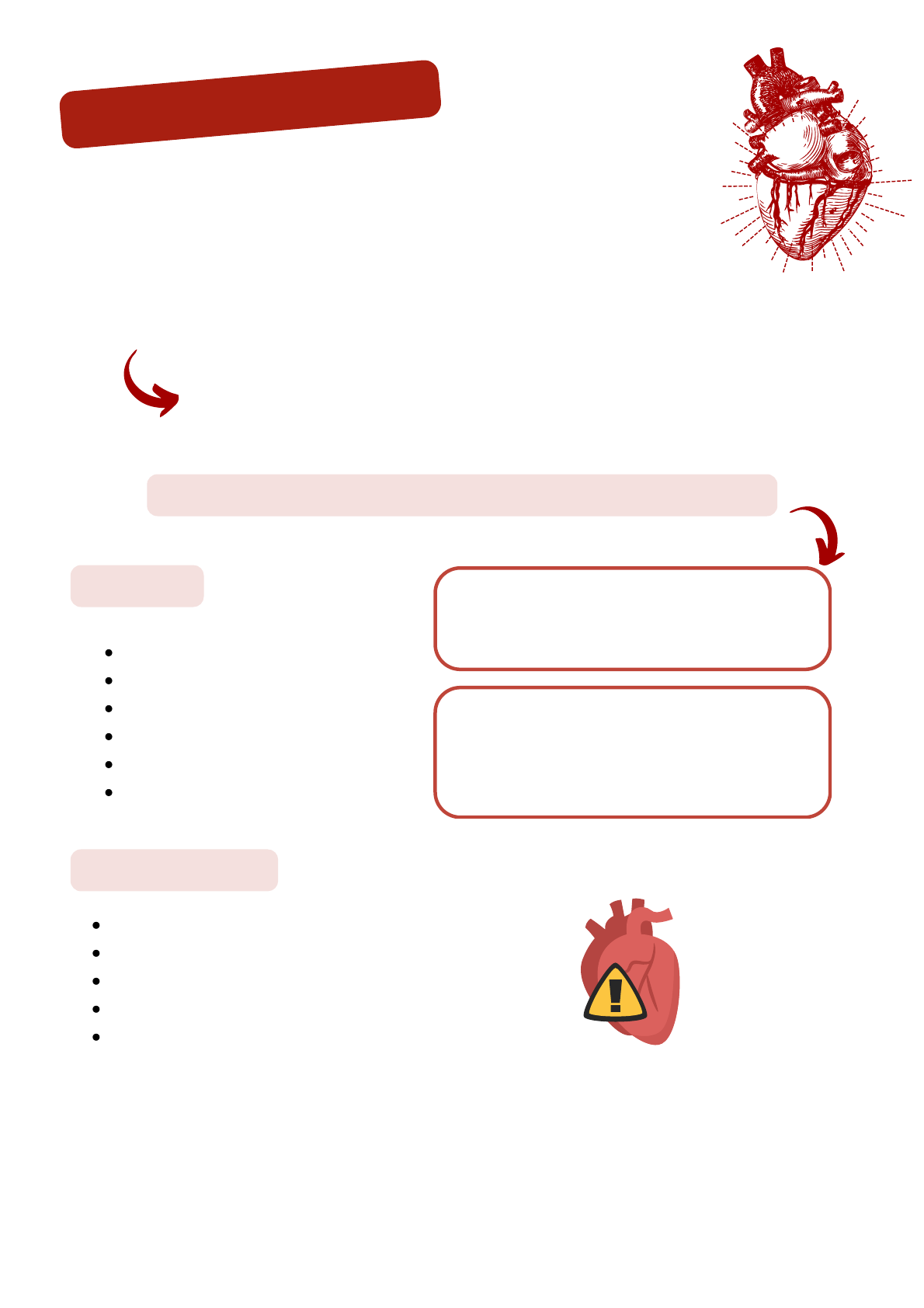 IC sistólica: o coração não consegue bombear sangue suficiente para fora do coração IC diastólica: onde o coração não consegue encher com sangue suficiente durante o período de relaxamento entre batimentos. Existem 2 tipos principais de insuficiência cardíaca A insuficiência cardíaca é uma condição crônica em que o coração não consegue bombear sangue suficiente para atender às necessidades do corpo. Isso geralmente ocorre quando o músculo cardíaco enfraquece ou fica muito rígido. Insuficiência Ca rdíaca Sintomas Dispneia Fadiga, Edema de MMII ou abdômen Aumento de peso repentino Tosse persistente Noctúria Fatores de risco HAS (Hipertensão rterial Sistêmica) DAC (doença arterial coronariana) Diabetes Obesidade Histórico familiar de doenças cardíacas. Tratamento transplante cardíaco em casos graves Diagnóstico Exames de sangue: Podem ser realizados para verificar os níveis de certas substâncias no sangue, como enzimas cardíacas e hormônios, que podem indicar problemas cardíacos. Radiografia de tórax: pode mostrar a forma e o tamanho do coração, bem como se há acúmulo de líquido nos pulmões, um sinal comum de insuficiência cardíaca. Eletrocardiograma (ECG): Registra a atividade elétrica do coração, ajudando a identificar ritmos cardíacos anormais e sinais de danos ao músculo cardíaco. Ecocardiograma: Utiliza ultrassom para produzir imagens em tempo real do coração em movimento, permitindo avaliar a função cardíaca, o tamanho das câmaras cardíacas e a espessura das paredes. Testes de estresse: Como o teste ergométrico ou cintilografia cardíaca, podem ser realizados para avaliar como o coração responde ao esforço físico. Ressonância magnética cardíaca (RMC) ou tomografia computadorizada (TC): Esses exames podem fornecer imagens mais detalhadas do coração, ajudando a identificar problemas estruturais e funcionais. Cateterismo cardíaco: Envolve a inserção de um cateter fino em um vaso sanguíneo para medir a pressão e a quantidade de oxigênio no coração e nos vasos sanguíneos, bem como para realizar angiografia coronariana, se necessário. Medicação Exercício físico Alimentação Cirurgia ou ou Classificação Funcional da IC NYHA Classificação da IC descompensada baseado nos perfis hemodinâmicos Perfil B Perfil C “QUENTE E ÚMIDO” PACIENTE BEM PERFUNDIDO, MAS CONGESTO “FRIO E ÚMIDO” PACIENTE MAL PERFUNDIDO (BAIXO DC E ALTA RVP) E CONGESTO, NECESSITANDO DE TRATAMENTO COM INOTRÓPICOS E DIURÉTICO. Perfil A “QUENTE E SECO" PERFUSÃO PERIFÉRICA ADEQUADA SEM CONGESTÃO PULMONAR E SITÊMICA Perfil L “FRIO E SECO”PACIENTE SE APRESENTA MAL PERFUNDIDO E SEM CONGESTÃO, NECESSITANDO DE HIDRATAÇÃO VENOSA CAUTELOSA.