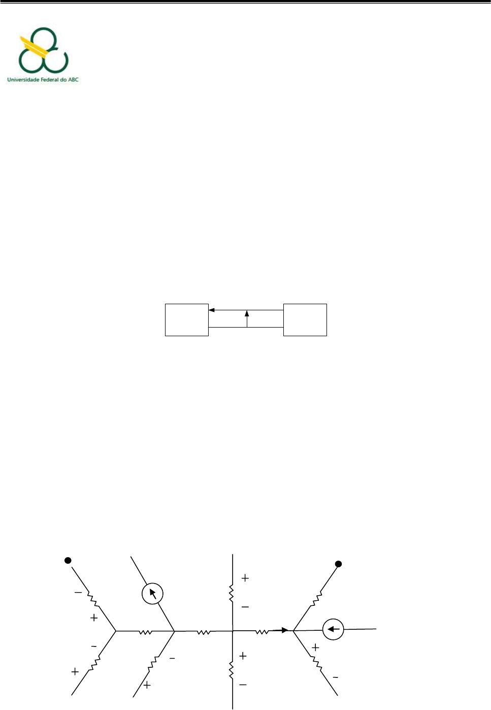 EN 2703 – Circuitos Elétricos I Lista 3 1 Circuitos Elétrico I – Lista 1 - Exercícios 1. O fio de cobre de 35 mm2 possui uma resistência de 0,524 Ω/km. Qual a condutância de 12 km deste fio? Resp:G=0,159 S. 2. Qual a potência que deve suportar um resistor de 1kΩ, atravessado por uma corrente de 50 mA? Resp:p= 2,5 W. 3. Dois circuitos A e B estão conectados conforme a Figura 1. Para cada par de valores de v e i indicados, calcule a potência nos terminais de interconexão e determine se a potência está fluindo de A para B ou vice-versa: A B i v Figura 1 a) i= 5A, v= 120V b) i= -8A, v= 250V c) i= 16A, v= -150V d) i= -10A, v= -480V Resp:a) p= 600W, B para A b) p= 2kW, A para B; c) p= 2,4kW, A para B; d) p=4,8kW, B para A. 4. Calcule a tensão Vab e a corrente I no circuito da Figura 2. Figura 2 Resp: i=5 A; Vab =39 V i 5 4 a 3 3 A 9 V 3 6 V 15 V 3 4 4 A 30 V 5 10 V 5 3 9 V 3 b I EN 2703 – Circuitos Elétricos I Lista 3 2 5. Calcule a corrente i no circuito da Figura 3. Resp:i=1,5 A Figura 3 6. Todos os resistores da Figura 4 são múltiplos de R. Determine o valor de R. Figura 4 Resp:R=60 7. Determine as tensões v1, v2 e v3 no circuito da Figura 5, utilizando análise nodal. Figura 5 Resp.: v1=5,41V; v2=7,74V; v3=46,32V 8. Utilize análise nodal para determinar V0 na rede da Figura 6. 6 6 4 4 2 2 3 3 12 i 45 V 3 4 -3A 7 1 -25A -8A v1 v2 v3 5 EN 2703 – Circuitos Elétricos I Lista 3 3 Figura 6 Resp:V0=6 V 9. Determine I0 no circuito da Figura 7 por análise de malhas e nodal. Figura 7 Resp:I0=-6,53 A 10. Determine as correntes i1, i2 e i3 no circuito elétrico da Figura 8, por análise de malhas. 2 2 4 1 3 5 V10 V10 1i 2i 3i Figura 8 Resp: i1=2,211 A; i2=0,481 A; i3=1,827 A EN 2703 – Circuitos Elétricos I Lista 3 4 11. Calcular a corrente i no circuito da Figura 9, usando análise de malhas. Figura 9 Resp:i= -1,1 A 12. Calcule a corrente i no resistor R5 da Figura 10, usando superposição. R3 15ohm R5 6ohm I1 6A R4 10ohm V1 12V V2 12V R1 3ohm Figura 10 Resp:i=4 A 13. Utilize o princípio da superposição para determinar Io na rede da Figura 11. Figura 11 Resp:I0=-5,33 A 14. Calcule o equivalente de Thévenin entre os pontos a-b da Figura 12. Figura 12 Resp: RTH =10 ; VTH =-24 V i EN 2703 – Circuitos Elétricos I Lista 3 5 15. Calcule o equivalente de Norton para o circuito da Figura 13, nos terminais do resistor R2 de 4 , e use o resultado para calcular a tensão v. R1 6ohm I2 4A I3 15A R4 8ohm R5 2ohm R2 4ohm I1 6A Figura 13 Resp: RN =8; I N =0,75 A; v=2 V 16. Calcule o equivalente de Norton entre os pontos a-b no circuito da Figura 14. Figura 14 Resp: RN =3 K; I N =1 mA 17. Calcule a potência máxima que pode ser entregue à carga Rc, no circuito da Figura 15. Figura 15 Resp: PMAX= ¾ W + - v