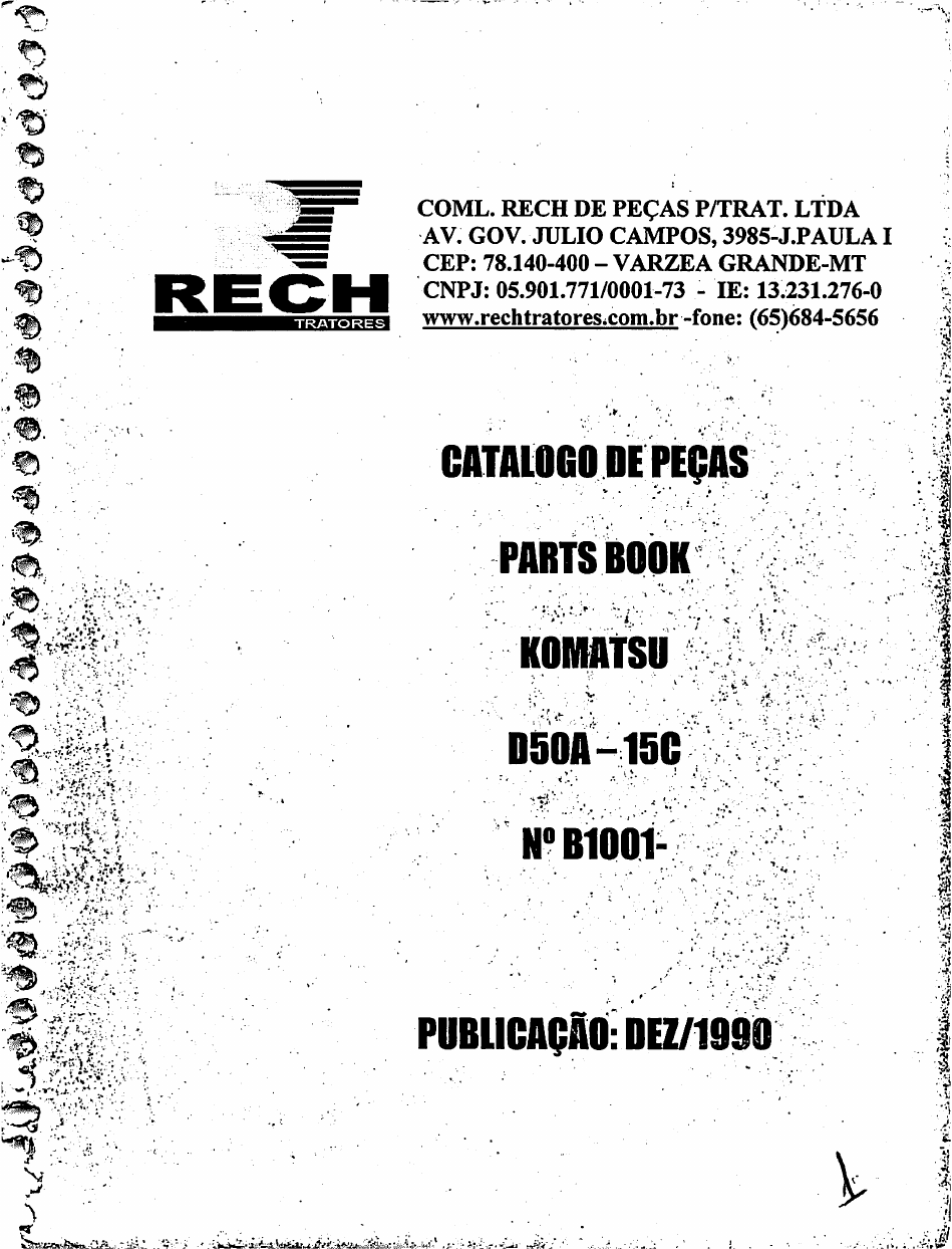 COML. RECH DE PEÇAS P/TRAT. LTDA “AV. GOV. JULIO CAMPOS, 3985-J.PAULA I CEP: 78.140-400 - VARZEA GRANDE-MT CNPJ: 05.901.771/0001-73 - IE: 13.231.276-0 www.rechtratores.com.br -fone: (65)684-5656 | | IÍ Z E O) po m n enmuogo DE Peas eanTS Book E on ae ” Boot EA o a PUBLICAÇÃO: DEZ/1990 a . . : , V o D C Te M A NR O T D a qu es ta . ro . v s o r a s a o s o r ia a m a TES Lo ca a E C a t i t t d a De o o gu e AN a c i ci a F i l o de i! p e A op A P A E E R E D da E Li Al á O p t s dit pal EA D i t a ! CATALOGO ojs, DES --Nº B1001- DATA DE PUBLICAÇÃO: DATE OF ISSUE: FECHA DE PUBLICACION: 03 DE DICIEMBRE DE 1º 096. ". traba tm ni at ii SANÍRTS CATALOGO EZAS PIS(GAS BOOK 0 ceceremiimanlda co CIaabi tic, cu amado co cas . Orsinbuidor Autorizado ea BG ai o DECEMBER 03, 1990 03 DE DEZEMBRO DE 1990 . t d o ati M L RS E D D O E a . s e S i r b i Ret a ua 9 Pro) Etr dl S PREFÁCIO Y | EE y ve m Q V O Q S Ç I C C O Este Catãlogo de Peças relaciona as peças que compõem o Chassi da maquina, assim como todas as peças necessárias para instalação do motor no chassi, controles e suas peças, radiador e componentes eletricos. Atravês de um programa constante de pesquisas e desenvolvimento, a Komatsu procura aperfeiçoar continuamente seus produtos, razão pela qual este Cata logo estã sujeito a alteraçõe s periódicas. Quaisquer informações sobre eventuais modificações na sua maquina podem ser obtidas atraves do Distri- buido: Komatsu. No pedido de peças deve constar a número e descriçao da peça, assim como o ã modelo e número de serie da maquina e a leitura do horometro.* : Cera me Na elaboração do presente Catálodo de Peças utilizaram-se os seguintes ti- tulos, simbolos e abreviaturas: ue 7 a Nº FIG.E ITEM Os números de figura e de item sempre aparecem: “em ordem numérica embora, em determinadas aplicações, alguns úeles possam estar omitidos. DESCRICAO Nesta coluna, toda peça ou componente de um conjun to principal, & relacionada abaixo desse conjuntosy e precedida por um ponto (.). te, pertence a um sub-conjunto, vem relacionada abaixo do sub-conjunto precedida por dois REREOSl e assim sucessivamente. a 9 ) QUANTIDADE (QTD) A t o me indica a quantidade de peças componentes o an x para formar o conjunto principal ou o sub-conjunt com menor número de pontos. A indicação a sa conforme necessário. = Nº SERIE Indica o número de série e modelo da maquina “emique 7%; essas peças são usadas. Se não constar o número “de: EE serie, as peças são usadas em todas as séries «emode loss Se houver um ponto (.) antes ou após. o número de series significa que esta peça € usada em maquinas com numerósta de serie indeterminados. ca N, (e) (9 69. 49 O 09 1) d n a Y Indica que 4 peça faz parte de um jogo e nao & fornec: da separadamente. A ,AVeça semi-acabada. O o 9 9 9 9 9 9 9 9 9 9 9 9 9 9 9 9 9 9 9 9 9 x Peça fora de produção, não mais fornecida. = “ 1 9 9 9 9 9 9 A i m L N L S a d np A O Feça que pode ser substituída por outra, cit. instancias. A ” ag ” E Peça que pode ser substituída por um conjunto de Peças ai; em determindadas circunstancias. r iu . d i a O a i M a u m e e a Peça de um jogo. As outras peças desse jogo na seção de jogos de reparo. US Indica peça submedida. OS Indica peça sobrened ida. 5 ) a = ; E 2 E E Ne Pr a Ema DO Je mÊ sea =" Bo mo spo ape ? & 1 E ET 7 Pr A pa RE BR é ssa E Ae E Là gn ia dessa e me . STD Indica peça padrão. OP Indica peça opcional, que não percerce 5 máquina padtão mas que pode ser fornecida com pedido especial. VD Indica peça de máquina, versão doméstica VE “Indica: peça de máquina, versão exportação. + a “ . : . . . “a . q “va . S S T 3 3) D D 2 9 9 9 : pp 4 2 9 9 9 9 9 9 9 9 9 9 9 9 9 9 9 9 9 9 9 9 9 9 9 9 9 9 9 5 2 9 9 L Q R O R >» . SN 7 A V C e a s = 9 V O O Na o O A E x í + U Q R V U ) G P V Q a a .- x (o a “ FOREWORD This Parts Book lists the parts that make up the machine chassis as well as. all parts required for proper engiue installation, controls and related parts, radiator and electric components. Komatsu is commited.to a steady research and development program which aims at constantly upgrading its products for which reason 'this publication is a subjected to periodic changes. For any information on eventual changes to your: .. machine, Please, contact your Komatsu Distributor. The parts order should bear the part number and description together with the . a machine model and serial number as well as the hourmeter reading. é In preparing this Parts Book, were used: FIG. & ITEM NO. Figure and item numbers are always shown in? ne ical sequence, although, for certain applications,: a e of-= . them may be left out. DESCRIPTION In this column every part, or component of a main assembly is listed right below such WEsembly,: je by a (.) mark. I£ the part or component bel sub-assembly, it is listed bellow thets: is preceded by a (..) mark ando so on. Ki QTY. to form a main o ora. sub-assembly ea marks. The indication C/N means "as required" . Pa toada SERIAL NO. Refers to the serial number and model 'of the machine) which the concerned parts are to be used; I£:no serial: number is stated the part may be used in alitmachine; ç series and models. Where a Aiimark is shoim:before: [27 after the serial number , it. ináicates. that. such: pec * Indicates that the part concerned belongs. isnot supplied separately ge. , Ad Semi-finished part. xe Eus creniaA parte tances. á a Eã Indicates a part which gan ai by a sit certain circunstances. Pá / O 3 K Part belonging to a sites other parts “0€ this. are found in the service” kits sectione Ê US stands for underoié. a? | | | STD Stands for standard. OP Indicates an optional part which does not belong to the standard machine but can, be supplied through a special order. . VD Indicates the part of a .machiúe for domestic market. Le . VE Indicates the part of a machine for the export market. x + 