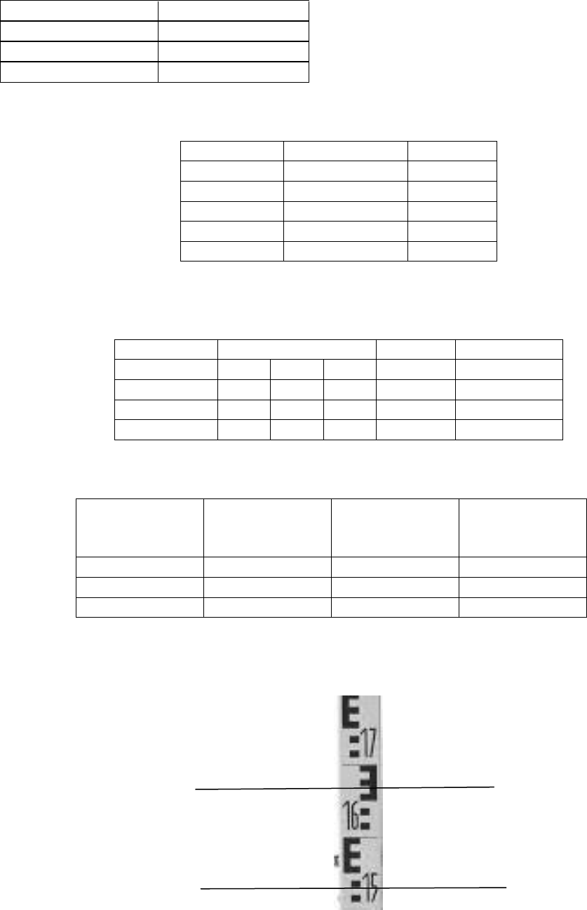 EXERCÍCIOS TOPOGRAFIA 1) Preencha as lacunas no quadro abaixo, de acordo com a correspondência entre azimute e rumo (1,0). Fazer a representação nos quadrantes, ou seja, utilizando os eixos N-S e E-W AZIMUTE RUMO a) 184 o 30’10” b) 34º12’34” SW c) 276 o 50’14” 2) Dados os ângulos a direita, calcule os azimutes dos alinhamentos. Alinhamento Ângulo a direita Azimute 1 - 2 30 o 20’58” 2 - 3 220º12’34” 3 - 4 250º23’45” 4 - 5 100º45’54” 5 - 6 178º56’21” 3) Desenhe o caminhamento do exercício 2, utilizando traços de 2 cm para representar os alinhamentos. 4) Calcule as distâncias a partir dos dados abaixo. Utilizar quatro casais decimais na distância. Fios Distância (m) Alinhamento FS FM FI Ângulo α 1 - 2 3,521 2,852 2º25’32” 2 - 3 1,514 0,856 1º14’24” 3 - 4 2,145 2,056 1º10’41” 5) Calcule as coordenadas parciais dos pontos pertencentes aos alinhamentos abaixo. Azimute 1-2 = 60º20’30”. Utilizar 4 casas decimais nas coordenadas, seno e cosseno. Alinhamento Ângulo horizontal a direita Distância (m) Azimute 1 - 2 307º 23’59” 300 60º20’30” 2 - 3 269º10’15” 400 2 - 3 323º25’43” 503,46 6) A Figura 1 ilustra uma mira estadimétrica. Preencha nos traços os valores das leituras correspondentes. Figura 1. Mira estadimétrica 7) Calcule o erro angular de fechamento da poligonal. Precisão do aparelho (20”). . Alinha mento ÂNGULO HORIZONTAL DISTÂNCI A (m) 1 – 2 258 o 36’00” 1317,52 2 – 3 210 o 47’00” 1253,94 2 – b 205 o 25’32” 902,20 3 – 4 279 o 01’10” 1208,27 4 – 5 243 o 41’00” 1899,70 5 - 1 267 o 55’10” 1148,62