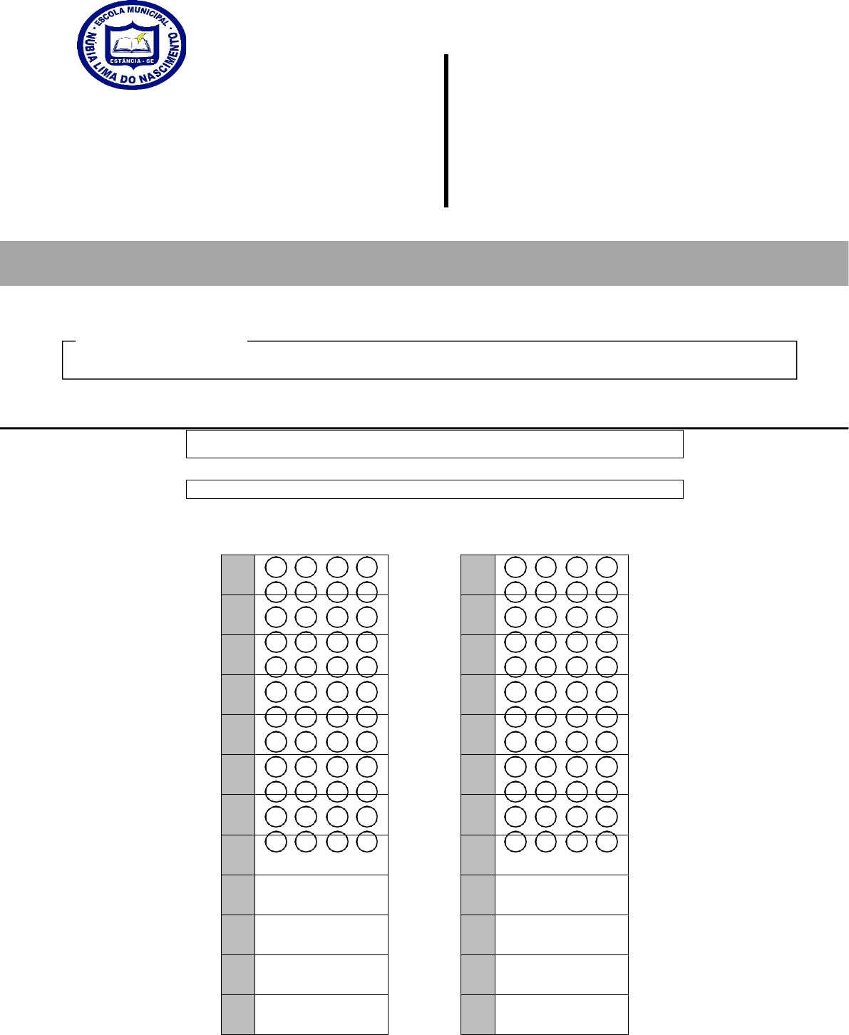 ESCOLA NÚBIA LIMA DO NASCIMENTO RUA 1 NÚMERO 383 CONJUNTO SANTO ANTÔNIO BAIRRO VALTER CARDOSO COSTA ESTÂNCIA SERGIPE 5º ano Ensino Fundamental Simulado 02 Matemática PREPARATÓRIO SAESE Nome do(a) aluno(a) DEVOLVA ESTA FOLHA PARA A ESCOLA. ATENÇÃO! TRANSCREVA AS RESPOSTAS DO SIMULADO NA ÁREA ABAIXO. CARTÃO DE RESPOSTAS 01 A B C D 13 A B C D 02 A B C D 14 A B C D 03 A B C D 15 A B C D 04 A B C D 16 A B C D 05 A B C D 17 A B C D 06 A B C D 18 A B C D 07 A B C D 19 A B C D 08 A B C D 20 A B C D 09 A B C D 21 A B C D 10 A B C D 22 A B C D 11 A B C D 23 A B C D 12 A B C D 24 A B C D Caro(a) aluno(a), Sua participação neste Simulado é muito importante para avançarmos na qualidade da educação da nossa escola. Hoje, você vai fazer atividades de Matematica. Responda com calma, procurando não deixar nenhuma questão em branco. Contamos com o seu esforço e dedicação! QUESTÃO 01 – D3 Observe a conta abaixo. 987 x 28 Qual é o resultado dessa conta? A) 959 B) 1 015 C) 27 366 D) 27 636 Um número formado por três unidades de milhar, quatro dezenas simples e cinco unidades simples, pode ser encontrado emQUESTÃO 02 – D1 A) 345 B) 3 045 C) 3 450 D) 30 045 Veja a fração abaixo.QUESTÃO 03 – D13 3 100 A forma decimal dessa fração pode ser encontrada em A) 0,03 B) 0,30 C) 1,30 D) 3,10 QUESTÃO 04 – D62 Joaquim gasta 1 hora e meia para chegar ao trabalho. Quantos minutos Joaquim gasta por dia nesse percurso? A) 60 B) 90 C) 120 D) 130 2 1 Observe abaixo a representação de um terreno que João comprou. 20 m 10 m Quantos metros de arame são necessários para cercar esse terreno? A) 30 B) 50 C) 60 D) 120 Juliana está economizando para comprar um livro. Ela precisa juntar três notas de R$ 10,00, quatro de R$ 2,00 e três moedas de R$ 0,50 para comprar o produto.QUESTÃO 06 – D63 Qual o preço do livro? A) R$ 12,50 B) R$ 32,50 C) R$ 38,50 D) R$ 39,50 QUESTÃO 07 – D4 No final de um jogo de basquete, Davi e Tadeu foram os jogadores que mais acertaram a cesta. Davi marcou 27 pontos e Tadeu marcou 12 pontos a mais que Davi. Tadeu marcou nesse jogo A) 12 pontos. B) 16 pontos. C) 27 pontos. D) 39 pontos. QUESTÃO 08 – D59 Ana Paula anda todos os dias 1,5 km de sua casa à escola. Quantos metros ela percorre nesse percurso? A) 15 B) 150 C) 1 500 D) 15 000 QUESTÃO 05 – D60 QUESTÃO 09 – D74 (Caed) O gráfico abaixo representa a quantidade de habitantes de uma cidade, distribuídos por faixa etária. De acordo com esse gráfico, essa cidade possui a menor quantidade de moradores em qual faixa etária? A) 0 a 20 anos. B) 21 a 40 anos. C) 41 a 60 anos. D) Maior que 60 anos. QUESTÃO 10 – D62 Mariana precisou ficar um terço do dia na casa de sua avó. Quantas horas Mariana passou na casa de sua avó? A) 1 B) 6 C) 8 D) 13 (Caed) Álvaro fará aniversário e homenageará seus amigos com uma grande festa de 360 minutos de duração.QUESTÃO 11 – D62 Quanto isto representa em horas? A) 3 horas. B) 4 horas. C) 5 horas. D) 6 horas. 4 3 Juliana comprou um vestido que, para pagamentos à vista ganhava-se 25% de desconto. O vestido antes do desconto custava R$ 60,00. O valor que Juliana pagou pelo vestido foi A) R$ 15,00 B) R$ 25,00 C) R$ 40,00 D) R$ 45,00 QUESTÃO 13 – D63 Em uma padaria, uma coxinha custa R$ 1,80 e o pão de queijo custa R$ 1,20. Leonardo e sua esposa, comeram juntos 3 coxinhas e 2 pães de queijo. O valor pago por essa compra foi A) R$ 3,00 B) R$ 5,00 C) R$ 5,40 D) R$ 7,80 QUESTÃO 14 – D46 Veja as figuras geométricas abaixo. As figuras II e IV, são, respectivamente A) cilindro e pirâmide B) cilindro e cone C) cone e pirâmide D) quadrado e cone QUESTÃO 12 – D9 QUESTÃO 15 – D52 Veja a planificação abaixo. Essa planificação é de um (a) A) uma pirâmide. B) um cubo. C) um paralelepípedo. D) um prisma. QUESTÃO 16 – D59 Gizele saiu com seu carro e percorreu 6 000 m. A quantidade de quilômetros percorrido por Gizele foi A) 6 B) 60 C) 600 D) 6 000 Observe a conta abaixo.3 456 – 1 345 QUESTÃO 17 – D2 Qual é o resultado dessa conta? A) 2 111 B) 2 222 C) 4 108 D) 4 801 (Caed) Observe o número no quadro abaixo.9 409 QUESTÃO 18 – D1 Qual é a ordem ocupada pelo algarismo 4 nesse número? A) Centena. B) Dezena. C) Unidade. D) Unidade de Milhar 6 5 (Caed) Dos 95 contatos do celular de Carla, 45 são de familiares e o restante, de amigos. Quantos contatos de amigos ela tem registrado em seu celular? A) 40 B) 45 C) 50 D) 95 João comprou uma TV e resolveu pagar a prazo. A TV à vista custava 1 500 reais. Já a prazo ela sofria um acréscimo de 25%.QUESTÃO 20 – D9 O valor dessa TV a prazo é A) 375 reais. B) 1 125 reais. C) 1 525 reais. D) 1 875 reais. QUESTÃO 21 – D13 1 A representação decimal da fração é 2 A) 0,2 B) 0,5 C) 1,2 D) 2,1 QUESTÃO 22 – D14 (Caed) Observe os números no quadro abaixo. 0,125 — 0,5 — 0,25 — 0,05 Qual desses números é o maior? A) 0,5 B) 0,25 C) 0,125 D) 0,05 QUESTÃO 19 – D4 QUESTÃO 23 – D73 A tabela abaixo mostra os municípios mais populosos do estado do Paraná, segundo o IBGE. De acordo com a tabela, o município menos populoso é A) Curitiba B) Foz do Iguaçu C) Maringá D) Ponta Grossa QUESTÃO 24 – D62 Paulo trabalhou 49 dias em uma livraria. Quantas semanas ele trabalhou? A) 7 B) 9 C) 24 D) 49 7 image30.png image4.png image5.png image6.png image7.png image8.png image9.png image10.png image11.png image12.png image13.png image14.png image15.png image16.png image17.png image18.png image18.jpeg image20.jpeg image19.png image20.png image1.jpeg image2.png image3.png ESCOLA NÚBIA LIMA DO NASCIMENTO RUA 1 NÚMERO 383 CONJUNTO SANTO ANTÔNIO BAIRRO VALTER CARDOSO COSTA ESTÂNCIA SERGIPE 5º ano Ensino Fundamental Simulado 02 Matemática PREPARATÓRIO SAE S E CARTÃO DE RESPOSTAS 01 A B C D 13 A B C D 02 A B C D 14 A B C D 03 A B C D 15 A B C D 04 A B C D 16 A B C D 05 A B C D 17 A B C D 06 A B C D 18 A B C D 07 A B C D 19 A B C D 08 A B C D 20 A B C D 09 A B C D 21 A B C D 10 A B C D 22 