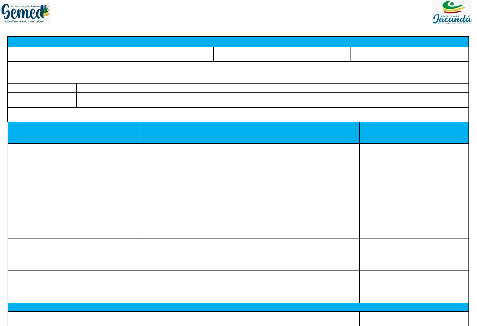 FICHA DE PLANEJAMENTO DO ENSINO FUNDAMENTAL ANOS FINAIS 2024 EMEF: TEOTÔNIO APINAGÉS Coordenador (a): LUÍZ ELÁDIO Professor(a): ELVES JOACY Turno: Ano: 2024 Turma(s): 8º anos Áreas do Conhecimento: ( ) Linguagens ( X ) Matemática ( ) Ciências da Natureza ( ) Ciências Humanas ( ) Ensino Religioso) Componentes Curriculares: ( )Língua Portuguesa ( ) Arte ( ) Educação Física ( ) Língua Inglesa ( ) Língua Espanhola ( )Matemática ( ) Ciências ( ) Geografia ( ) História ( ) Ensino Religioso Período: ( )Diagnóstico Inicial ( X ) 1º Bimestre ( ) 2º Bimestre ( ) 3º Bimestre ( ) 4º Bimestre Nº de aulas previstas: Data de início: 30/01/2024 Data de término: 12/04/2024 Nº DE AULAS DO PROJETO COMPLEMENTAR: TEMA: Números naturais, inteiros e racionais – porcentagens – potenciação e radiciação. OBJETOS DE CONHECIMENTO HABILIDADES AVALIAÇÃO (assinalar com x as habilidades alcançadas pela turma UNIDADES 1 e 2 Notação cientifica (EF08MA01) Efetuar cálculo com potências de expoentes inteiros e aplicar esse conhecimento na representação de números de notação cientifica. ( ) sim ( ) não ( ) parcialmente Potenciação e radiciação (EF08MA02) Resolver e elaborar problemas usando a relação entre potenciação e radiciação para representar uma raiz como potência de expoente fracionário. ( ) sim ( ) não ( ) parcialmente O princípio multiplicativo da contagem (EF08MA03) Resolver e elaborar problemas de contagem cuja resolução envolva a aplicação do princípio multiplicativo. ( ) sim ( ) não ( ) parcialmente Porcentagem (EF08MA04) Resolver e elaborar problemas envolvendo cálculo de porcentagem, incluindo o uso de tecnologias digitais. ( ) sim ( ) não ( ) parcialmente Dízimas periódicas : fração geratriz (EF08MA05) Reconhecer e utilizar procedimentos para a obtenção de uma fração geratriz para uma dízima periódica. ( ) sim ( ) não ( ) parcialmente FLEXIBILIZAÇÃO PARA ALUNOS ESPECIAIS OU COM DIFICULDADES ACENTUADAS DE APRENDIZAGEM: Mediante a situação ou nível de aprendizagem dos educandos, o conteúdo será adequado, a fim de atender as necessidades dos mesmos. ( ) sim ( ) não ( ) parcialmente ( ) sim ( ) não ( ) parcialmente RECURSO DIDÁTICOS/TE CNÓLOGICOS ( x ) Quadro branco e pincel ( x ) livro didáticos ( x ) lápis e borracha ( x ) lápis de cor ( x )cadernos ( x ) material impresso ( ) caixa de som/pendrive ( ) data show /computador ( )vídeos /slides/ filmes ( )livros paradidático ( x ) tesoura ( x ) cola ( )sites ( ) plataforma ( ) materiais recicláveis ( ) WhatsApp( ) blog( x ) XEROX ( ) youtube ( ) salas virtuais (Meet, classroom)( ) podcast( ) Facebook ( ) outros _____________________________ OBSERVAÇÕES: REFERÊNCIAS BIBLIOGRÁFICAS: * Matemática e realidade – Gelson Iezzi, Osvaldo Dolce e Antônio Machado * Álvaro Andrine – Praticando matemática * Caderno do Futuro – IBEP * Mec gov portal do professor image1.jpeg image2.jpeg