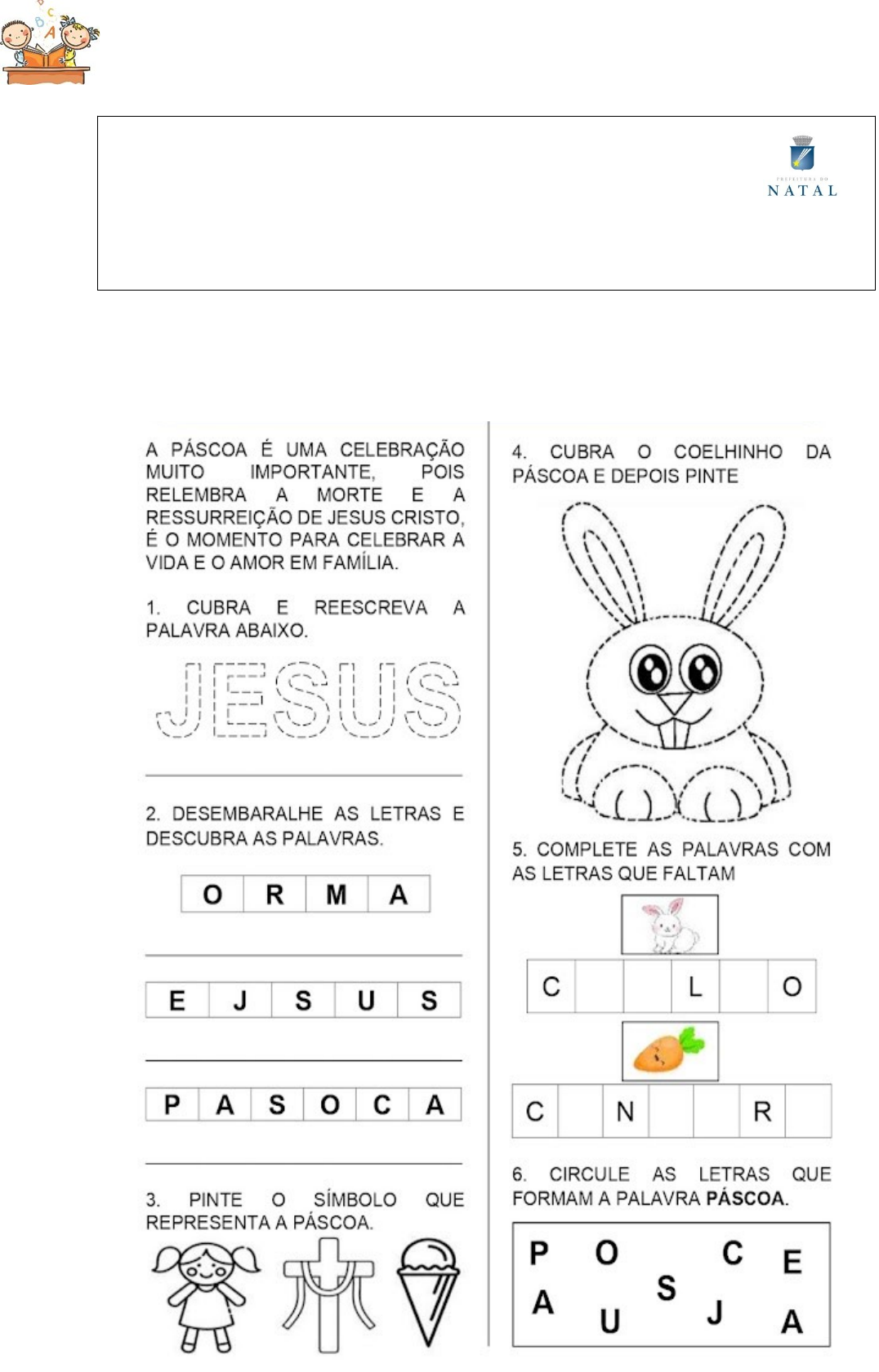 PREFEITURA MUNICIPAL DO NATAL SECRETARIA MUNICIPAL DE EDUCAÇÃO CMEI PROFA MARIA SALETE ALVES BILA PROFESSORA: THAÍSA SALUSTINO ESTUDANTE__________________________________________ DATA: 27 DE MARÇO DE 2024 image1.jpeg image2.png image3.jpeg