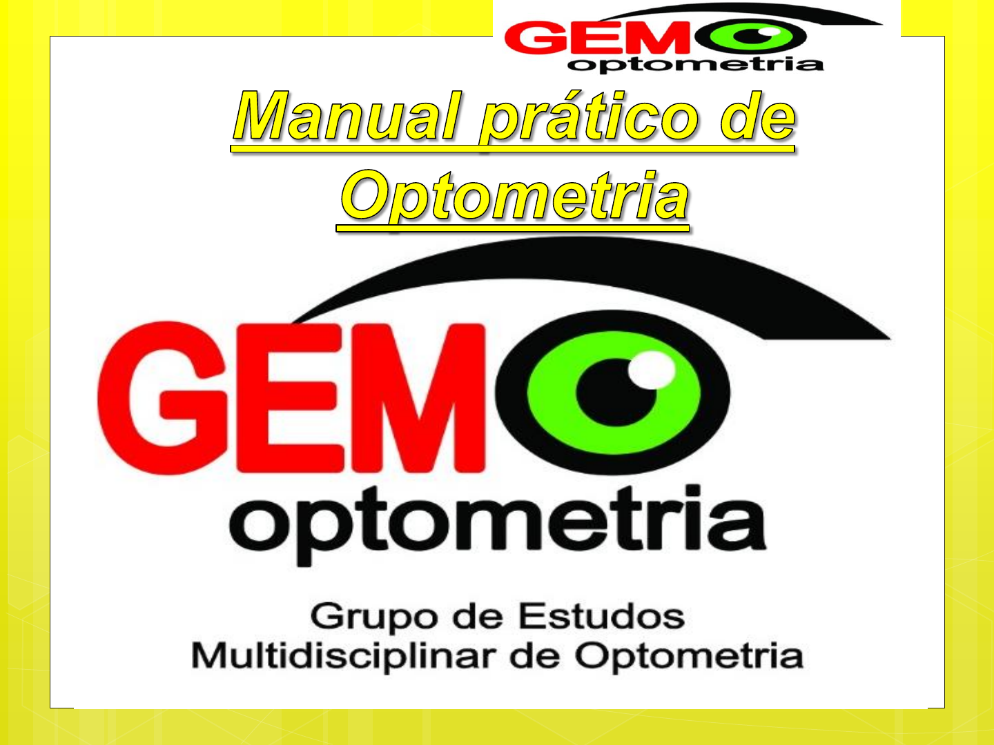 AUTORES Equipe GEMO JAMERSON DIAS Tec. em Óptica e Optometria bacharelando em Optometria ALEXANDRA BARBOSA Tec. em Óptica e optometria Pós graduada em Ortoptica Pedagoga DANILO FRANCO Tec. em optometria Bacharel em Optometria Pós graduando em Ortoptica WILSON SARAIVA Tec. em Optometria Apresentação Dedicado a todos os profissionais de Optometria, o qual se empenham em buscar maior conhecimento e qualidade de atendimento ao paciente. Optometria uma nova visão para todos. Este material vem pra servir de auxilio e um suplemento de ajuda e guia na aprendizagem dos passos da ficha clínica de optometria. além dos testes, que são de grande interesse ao profissional da saúde visual, os textos são pequenos e mostramos apenas pontos específicos e necessário para o entendimento e de cada teste. Apresenta aspectos básicos da pratica da analise e estudo dos 21 passos da ficha clínica de optometria, que sirva de ponto de partida para estudos e conhecimentos. ÍNDICE • Anamnese • Acuidade Visual • Oftalmoscopia • Motilidade (Kappa, Duções, Versões E Hirschiberg) • Ceratometria • Reflexos • Retinoscopia Estática • Retinoscopia Dinâmica (Bell, Book Getmam, Mem E Nott) • Testes Cores E Contraste (Ishihara, Semsibilidades) • Reservas Fusionais Positivas E Negativas RFP E RFN • ARP E ARN Acomodação relativa positiva e negativa • AA Amplitude De Acomodação E FA Flexibilidade De Acomodação • A/Ca Acomodação por convergência acomodativa, • PPC Ponto próximo de convergência • Maddox • Worht • Cover Test • Subjetivo E Afinação • Bicromático Anamnese é uma palavra de origem grega. Ana = trazer de volta Mnesis = memória. Ao optometrista, anamnese significa tudo que se refere á memorização dos sinais e sintomas da moléstia. Em outras palavras, é uma entrevista que busca relembrar todos os fatos que se relacionam com a doença e à pessoa doente. Conduta do exame optométrico Durante um exame optométrico, há muitos passos que finalizarão em um diagnóstico e a adoção de uma conduta que resolva motivo da consulta. Os passos estão divididos em obrigatórios ou complementares. Conduta do exame optométrico A ANAMNESE é um passo obrigatório do exame, tanto do ponto de vista clinico, quando do ponto de vista jurídico. É a partir da anamnese que serão definidos: 1 – Qual é o diagnóstico mais provável? 2 – Qual é a etiologia mais provável? 3 – Qual é o próximo passo no diagnóstico? ANAMNESE é o principal passo do exame? Atualmente, o que se tem observado é que cada vez mais os profissionais de saúde falam menos com seus pacientes. No entanto, 60% dos diagnósticos são feitos na anamnese, 30% no exame de rotina 10% nos exames complementares. 60% 30% 10% Anamnese X Tempo Equivocadamente, acredita-se que exames complementares resolverão os problemas de comunicação entre profissional e paciente. A adoção desta prática é considerada desumana e desgastante ao paciente, além da possibilidade de falsos positivos. Portanto, valorize a anamnese, aqui se começa a construir a relação optometra- paciente. A anamnese não é cara, mas laboriosa. Se bem feita, você ganhará tempo nas próximas etapas optométricas. O QUE DEVO FAZER PARA REALIZAR UMA BOA ANAMNESE? Em primeiro lugar, seja observador e saiba que você também está sendo observado. O optometrista observa todos os detalhes do paciente, ou mesmo de acompanhantes, desde o momento que o mesmo entra no consultório Desta forma, é possível colher informações a respeito da saúde do paciente de forma verbal e não verbal. Dentre muitos sinais não verbais, os que são mais comumente observados na consulta optometrica são: Dificuldades motoras Dificuldades de marcha Dificuldades de comunicação Mal estar Mal humor Excesso de piscar Intolerância a iluminação Diminuição da fenda palpebral Posição viciosa da cabeça e ombros. Tédio Ira Medo Expressão facial É extremamente importante que o profissional, esteja atento para captar informações não verbais ou corporais, diferentes das que estão sendo verbalizadas. Postura profissional A comunicação á mais fácil quando estamos sentados ou em pé confortavelmente, não tensos, e sentados na ponta da cadeira; Não devemos cruzar os braços, cerrar os punhos ou cobrir parte da face com as mãos; Não demonstro pressa, não fique olhando relógio ou celular; Nunca mostre impaciência; Mantenha distancia culturalmente aceitável; Não ter luz direta atrás do paciente ou examinador. E principalmente ouvir Aparência do profissional O uso de um jaleco pode ou não auxiliar a comunicação. Há pacientes que sofrem de síndrome do jaleco branco por exemplo, ou crianças com histórico traumáticos de visitas a profissionais da saúde, que acabam não colaborando com o exame quando encontram o profissional assim vestido. Todavia, na maioria dos casos, o uso de jaleco, funciona bem e passa segurança suficiente para que o paciente confie no profissional. Expressão Facial Manter o contato visual tanto quanto possível. Observar os olhos do paciente e as expressões faciais do mesmo de acordo com a progressão da anamnese. Distrações com ruídos, rádio, TV, telefones e celulares, limitam a comunicação. Solicite ao paciente que diminua o volume do som, desligue o celular. A privacidade é essencial. O consultório de optometria deve ter boa iluminação. As paredes devem ser limpas e de cores neutras As cadeiras devem oferecer conforto e segurança. Ambiente Escute com atenção e motive o paciente a contar sua historia. A habilidade de escutar é tão importante como a de perguntar e é difícil de aprender. Boas técnicas de escuta levam o paciente a saber que você escutou o que ele disse, bem como permitem que o paciente corrija ou complemente sua percepção sobre o um sintoma, por isso, exercite. Facilitadores da anamnese Confirmação: Quando a mensagem é simples e direta, a confirmação leva o 