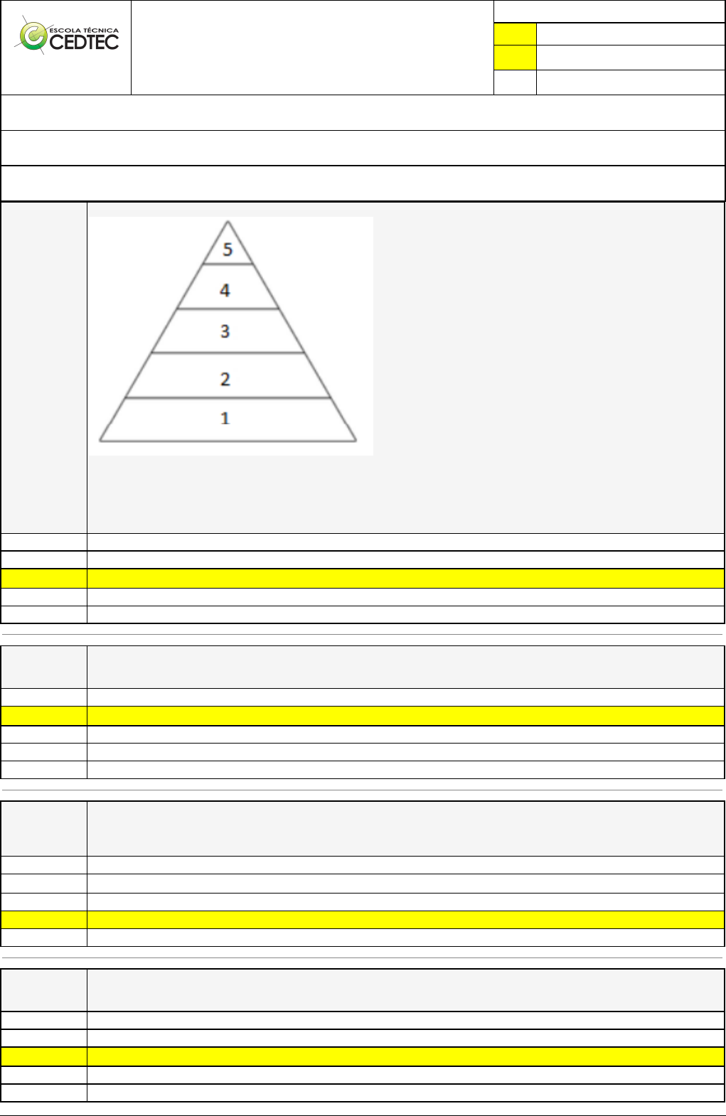Pincel Atômico - 18/08/2024 12:07:54 1/2 LUCAS HENRIQUE CARDOSO Exercício Caminho do Conhecimento - Etapa 2 (26231) Atividade finalizada em 18/08/2024 12:06:26 (2436770 / 1) LEGENDA Resposta correta na questão # Resposta correta - Questão Anulada X Resposta selecionada pelo Aluno Disciplina: AUTOMAÇÃO ELÉTRICA [894071] - Avaliação com 4 questões, com o peso total de 4,33 pontos [capítulos - 111] Turma: Curso Técnico: Eletrotécnica - Grupo: EAD - 08/23 - EAD ELE [95895] Aluno(a): 91496353 - LUCAS HENRIQUE CARDOSO - Respondeu 3 questões corretas, obtendo um total de 3,25 pontos como nota [350018_180090] Questão 001 A figura abaixo apresenta os cinco níveis de automação e controle na produção. Leia as afirmativas expostas abaixo sobre os níveis: I. O nível 1 compreende sensores, atuadores e outros elementos de hardware incluídos no nível da máquina. II. O nível 2 é chamado de nível da célula. Uma célula é um grupo de máquinas ou estações de trabalho conectadas e apoiadas por um sistema de manuseio de materiais, um computador ou outro equipamento apropriado ao processo de produção. III. O nível 3 recebe instruções do sistema de informações corporativas e as traduz em planos operacionais para a produção. IV. O nível 5 é chamado de nível do empreendimento, e se preocupa com todas as funções necessárias ao gerenciamento da empresa. Assinale a alternativa em que todas as afirmativas estão CORRETAS. Apenas III e IV Apenas I e II X Apenas I e IV Apenas II e III Apenas I, II e III [350021_180088] Questão 002 “É considerado o nível mais baixo na hierarquia de automação. Consiste basicamente de sensores e atuadores montados em malhas de controle fechadas (por realimentação) para a automação de uma parte da máquina” O texto se refere a: Nível de fábrica X Nível de dispositivo Nível de empreendimento Nível de máquina Nível de célula [350018_180094] Questão 003 A rotação de uma esteira transportadora acionada por um motor elétrico de indução é controlada por um CLP. O acionamento do motor da esteira é realizado através de um inversor de frequência. Dessa forma, se o CLP enviar um sinal elétrico variável de 0 a 10 Vcc ao conversor de frequência, este, em função da parametrização escolhida, ajustará a velocidade do motor de um valor mínimo a um valor máximo, em resposta à solicitação do CLP. Neste caso, o inversor de frequência é classificado como dispositivo: Somente de saída digital. X De entrada analógica e digital ao mesmo tempo. De saída analógica e digital ao mesmo tempo. Somente de saída analógica. Somente de entrada digital. [350019_180082] Questão 004 “Este modo é utilizado quando se tem um mau funcionamento da máquina ou uma falha. A principal finalidade é identificar a falha antes que ela ocorra, através da análise das variáveis monitoradas, ou identificar o motivo que gerou a falha, caso a máquina já esteja parada. ” O texto se refere a: Monitoramento da condição da máquina Modo de detecção de parâmetros de controle e operação X Diagnóstico de falha Monitoramento da manutenção Recomendação de procedimento de trabalho Pincel Atômico - 18/08/2024 12:07:54 2/2