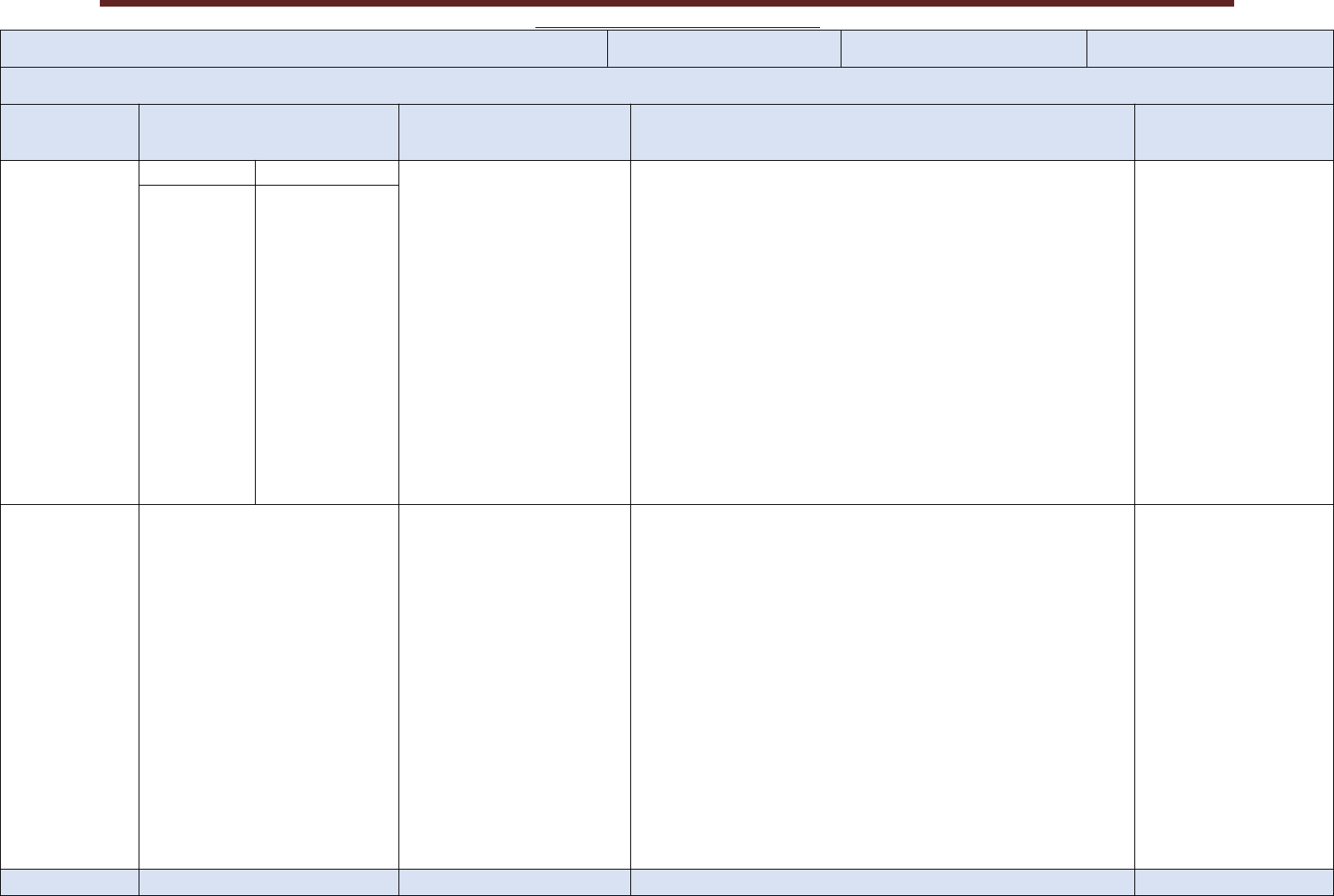 ESTADO DO MARANHÃO PREFEITURA MUNICIPAL DE PAÇO DO LUMIAR SECRETARIA MUNICIPAL DE EDUCAÇÃO- SEMED 6º MATRIZ DE PLANEJAMENTO Escola: U.E.B LÊDA TAJRA. Turma: 5º ANO Período: 15/04 a 26/04 Ano Letivo: 2024 Professor(a): ANA CLÁUDIA E ELISANGELA COMPONENTE CURRICULAR UNIDADES TEMÁTICAS/ PRÁTICAS DE LING (L.P) OBJETOS DE CONHECIMENTO HABILIDADES (CÓD. E RESUMO) RECURSOS Língua Portuguesa CAMPO EIXOS Decodificação Fluência de Leitura Compreensão da Leitura Morfossintaxe Forma de composição dos textos. Escrita autônoma Planejamento de textos (EF35LP01) Ler e compreender, silenciosamente e, em seguida, em voz alta, com autonomia e fluência, textos curtos com nível de textualidade adequado. (EF35LP04) Inferir informações implícitas nos textos lidos. (EF05LP20) Analisar a validade e força de argumentos em argumentações sobre produtos de mídia para público infantil (filmes, desenhos animados, HQs, games etc.), com base em conhecimentos sobre os mesmos. (EF04LP07) Identificar em textos e usar na produção textual a concordância entre artigo, substantivo e adjetivo (concordância no grupo nominal). (EF05LP09) Ler e compreender, com autonomia textos instrucionais... (EF1115LP05) Planejar, com ajuda do professor, o texto que será produzido ... - Livro didático; - Textos complementares; - Quadro branco Todos os Campos. Campo da vida pública Leitura/ Escuta (compartilhada e autônoma) Análise linguística/semiótica. Produção de textos Conhecimentos linguísticos e gramaticais Matemática Geometria Números Figuras geométricas espaciais: reconhecimento, representações, planificações e características. Números racionais expressos na forma decimal e sua representação na reta numérica (EF05MA16) Associar figuras espaciais a suas planificações (prismas, pirâmides, cilindros e cones) e analisar, nomear e comparar seus atributos. (EF05MA05) Comparar e ordenar números racionais positivos (representações fracionária e decimal), relacionando-os a pontos na reta numérica. - Livro didático; - Material xerocado; - Painel com imagens de sólidos geométricos; - caixas de embalagens vazias; - Material concreto de sólidos geométricos. - Massinha de modelar COMPONENTE CURRICULAR UNIDADES TEMÁTICAS OBJETOS DE CONHECIMENTO HABILIDADES (CÓD. E RESUMO) RECURSOS Ciências Matéria e energia Terra e Universo Consumo consciente Características da Terra (EF05CI03) Selecionar argumentos que justifiquem a importância da cobertura vegetal para a manutenção do ciclo da água, a conservação dos solos, dos cursos de água e da qualidade do ar atmosférico. (EF03CI07) Identificar características da Terra (como seu formato esférico, a presença de água, solo etc.), com base na observação, manipulação e comparação de diferentes formas de representação do planeta (mapas, globos, fotografias etc.). - Livro didático - Globo terrestre; - Material xerocado. História Povos e culturas: meu lugar no mundo e meu grupo social As formas de organização social e política: a noção de Estado. O papel das religiões e da cultura para a formação dos povos antigos. (EF05HI02) Identificar os mecanismos de organização do poder político com vistas à compreensão da ideia de Estado e/ou de outras formas de ordenação social. (EF05HI03) Analisar o papel das culturas e das religiões na composição identitária dos povos antigos.. Livro didático; Material xerocado. Geografia O sujeito e seu lugar no mundo Dinâmica populacional (EF05GE01) Descrever e analisar dinâmicas populacionais na Unidade da Federação em que vive, estabelecendo relações entre migrações... Livro didático Arte Arte Visual Elementos da linguagem (EF15AR02) Explorar e reconhecer elementos constitutivos das artes visuais (ponto, linha, forma, cor, espaço, movimento etc.). Folha chamex Lápis de cor Educação Física Brincadeiras e jogos Brincadeiras e jogos de matriz indígena e africana (EF35EF02) Planejar e utilizar estratégias para possibilitar a participação segura de todos os alunos em brincadeiras e jogos populares do Brasil e de matriz indígena e africana. Material xerocado. Ensino Religioso Crenças Religiosas Narrativas Religiosas (Páscoa) (EF04ER01) -Identificar e respeitar acontecimentos sagrados de diferentes culturas e tradições religiosas como recurso para preservar a memória. - Livro didático, Buriti Mais 5 Ano Avaliação: Através da participação do aluno e resolução das atividades. Habilidades Socioemocionais: Refletir sobre o nosso papel no mundo, praticando ações de participação, solidariedade e partilha. Mês: ABRIL Semana: 15 a 19/04/2024 Segunda-feira 15/04 Terça-feira 16/04 Atividades Permanentes: Leitura/ Correção atividade de casa. Atividades Permanentes: Leitura/Correção atividade de casa Componentes curriculares: LP Conteúdo: Gênero textual Resenha Crítica, Livro 49 a 54. Sugestão metodológica: - Apresentação de um jogo de adivinha: “Montando a porta do armário”, relacionando a adivinha com informações (pista) dadas e criando expectativas de qual objeto será. Leitura modelo do texto “Já pensou em conversar com o monstro que vive no armário?” fazendo questionamentos a respeito da leitura, mostrando que o texto é uma Resenha Crítica. Atividade de interpretação e localizando informações. CI- Leitura da página 18. Atividade no caderno sobre a importância de proteger as áreas verdes. Atividade das páginas 19 a 21, responder no caderno e apresentada na próxima aula. Componentes curriculares: LP Conteúdo: Estrutura de uma resenha crítica 54 a 56. Sugestão metodológica: LP- Retomada da leitura texto “Já pensou em conversar com o monstro que vive no armário?”, explorando palavras iguais com sentidos diferentes. Estudando as partes de uma resenha, observando a função dos parágrafos e identificando a posição da crítica do autor no texto, demonstrando que sua fala não se misturar, pois deve influenciar e 