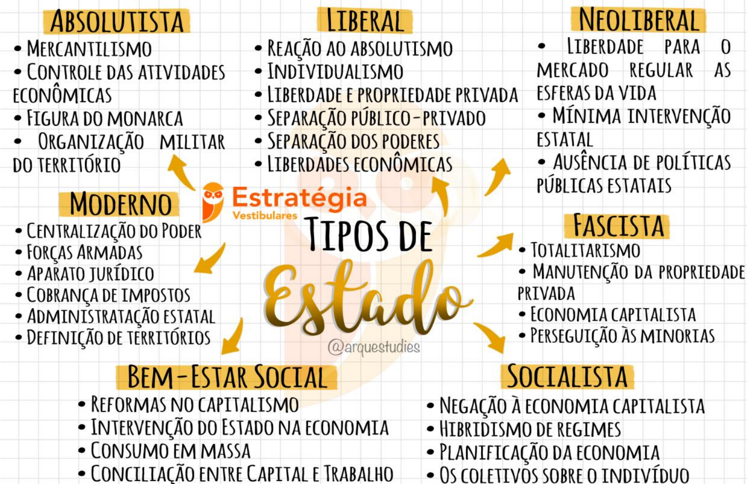 ABSOLUTISTA LIBERAL NEOLIBERAL MERCANTILISMO REAÇÃO ABSOLUTISMO LIBERDADE PARA 0 CONTROLE DAS ATIVIDADES INDIVIDUALISMO MERCADO REGULAR AS ECONÔMICAS LIBERDADE E PROPRIEDADE PRIVADA ESFERAS DA VIDA FIGURA DO MONARCA SEPARAÇÃO PÚBLICO - PRIVADO MÍNIMA INTERVENÇÃO ORGANIZAÇÃO MILITAR SEPARAÇÃO DOS PODERES ESTATAL DO LIBERDADES ECONÔMICAS AUSÊNCIA DE POLÍTICAS PÚBLICAS ESTATAIS MODERNO Estratégia Vestibulares CENTRALIZAÇÃO DO PODER TIPOS DE FASCISTA FORÇAS ARMADAS TOTALITARISMO APARATO JURÍDICO Estado MANUTENÇÃO DA PROPRIEDADE COBRANÇA DE IMPOSTOS PRIVADA ADMINISTRATAÇÃO ESTATAL ECONOMIA CAPITALISTA DEFINIÇÃO DE TERRITÓRIOS @arquestudies PERSEGUIÇÃO MINORIAS BEM-ESTAR SOCIAL SOCIALISTA REFORMAS NO CAPITALISMO NEGAÇÃO ECONOMIA CAPITALISTA INTERVENÇÃO DO ESTADO NA ECONOMIA HIBRIDISMO DE REGIMES CONSUMO EM MASSA PLANIFICAÇÃO DA ECONOMIA ENTRE CAPITAL E TRABALHO OS COLETIVOS SOBRE 0 INDIVÍDUO