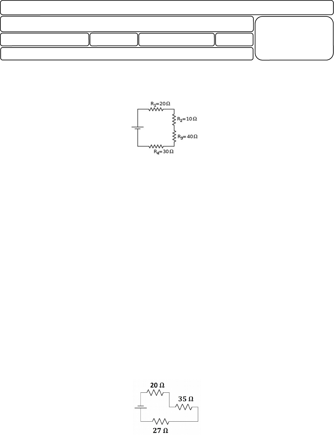 Nota: Trabalho da Sexta-Feira Cheia de Física – 2º Bimestre/2024 ESCOLA ESTADUAL FRANCISCO MARQUES PINTO Nome: N°: Data: Turma: E 2ª Série do Ensino Médio OBS: OS ALUNOS PODEM CONSULTAR O CADERNO DURANTE A REALIZAÇÃO DO TRABALHO. 1) Qual a resistência equivalente do circuito acima? a) 30 Ω b) 100 Ω c) 90 Ω d) 80 Ω 2) Um resistor de 40 Ω é percorrido por uma corrente elétrica de 5 A. A tensão elétrica entre os terminais do resistor, em volts, é igual a: a) 220 V b) 50 V c) 200 V d) 110 V 3) Qual a resistência equivalente do circuito abaixo? a) 50 Ω b) 34 Ω c) 82 Ω d) 57 Ω 4) Os resistores são elementos de circuito que consomem energia elétrica, convertendo-a integralmente em energia térmica. A conversão de energia elétrica em energia térmica é chamada de: a) Efeito Joule b) Efeito Térmico c) Condutores d) Resistores 5) (UCSal - adaptada) Um resistor de 100 Ω é percorrido por uma corrente elétrica de 1,5 A. A tensão elétrica entre os terminais do resistor, em volts, é igual a: a) 220 V b) 50 V c) 200 V d) 150 V image1.png image2.png