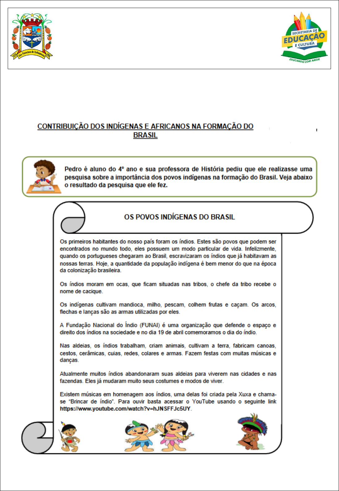 Escola Municipal Otávio Pinto de Oliveira Aluno(a):_____________________________________________ Professor(a):_____________________ Ano: 4° Turma:______ Data:___/____/2024 HISTÓRIA – 2° Bimestre Escola Municipal Otávio Pinto de Oliveira Aluno(a):_____________________________________________ Professor(a):_____________________ Ano: 4° Turma:______ Data:___/____/2024 GEOGRAFIA – 2° Bimestre Escola Municipal Otávio Pinto de Oliveira Aluno(a):_____________________________________________ Professor(a):_____________________ Ano: 4° Turma:______ Data:___/____/2024 CIÊNCIAS – 2°Bimestre Escola Municipal Otávio Pinto de Oliveira Aluno(a):_____________________________________________ Professor(a):_____________________ Ano: 4° Turma:______ Data:___/____/2024 ARTE – 2° Bimestre Escola Municipal Otávio Pinto de Oliveira Aluno(a):_____________________________________________ Professor(a):_____________________ Ano: 4° Turma:______ Data:___/____/2024 LÍNGUA PORTUGUESA – 2° Bimestre Escola Municipal Otávio Pinto de Oliveira Aluno(a):_____________________________________________ Professor(a):_____________________ Ano: 4° Turma:______ Data:___/____/2024 MATEMÁTICA – 2° Bimestre
