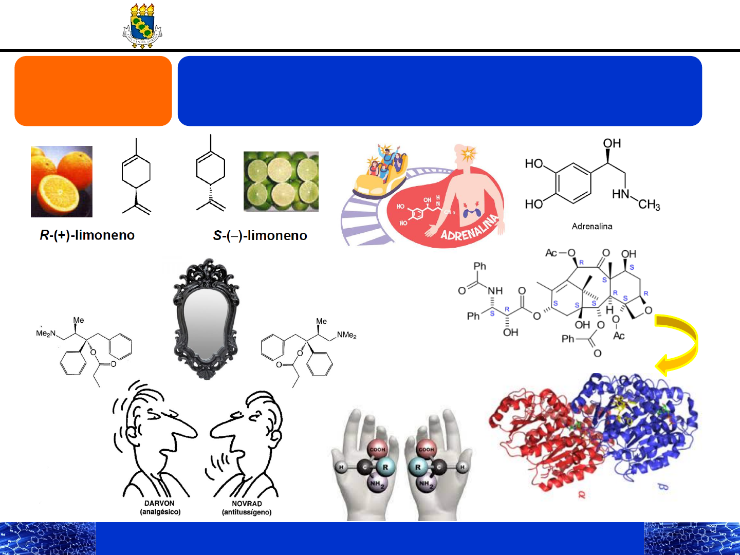 Unidade III Estereoquímica dos Compostos Orgânicos Taxol Estereoquímica é Importante? Universidade Federal do Ceará Departamento de Q. Orgânica e Inorgânica Disciplina: Química Orgânica Teórica I - Prof.: Geraldo Barbosa Estereoquímica dos Compostos Orgânicos Isômeros Estereoisômeros ou isômeros configuracionais (Mesma conectividade) Ex.: C2H6O (2 compostos) Isômeros constitucionais (Conectividade diferente) CH3 O CH3 OHCH3 Diastereoisômeros, incluindo isômeros cis/trans ou Z/E - não são imagens especulares C C Cl H Cl H C C Cl H H Cl Enantiômeros - são imagens especulares não sobreponíveis (apresentam centros de quiralidade, também chamados de centros estereogênicos) H C HO H3C COOH H C OH CH3 HOOC Mirror (−)-Lactic acid, []D = -3.82(+)-Lactic acid, []D = +3.82 Universidade Federal do Ceará Departamento de Q. Orgânica e Inorgânica Disciplina: Química Orgânica Teórica I - Prof.: Geraldo Barbosa ❑ Estereoquímica (do grego stereos = sólido) é o ramo da química orgânica que trata das investigações químicas, considerando os aspectos espaciais das moléculas. ❑ A estereoquímica pode ser dividida em: a) Estática - Estuda os aspectos espaciais das moléculas isoladamente. b) Dinâmica - Estuda os aspectos espaciais das moléculas nas reações. Universidade Federal do Ceará Departamento de Q. Orgânica e Inorgânica Disciplina: Química Orgânica Teórica I - Prof.: Geraldo Barbosa ❑ A partir de 1960 são descobertos os efeitos teratogênicos (focomelia) do fármaco talidomida, sintetizado na Alemanha em 1954 para controlar ansiedade e nauseas. Universidade Federal do Ceará Departamento de Q. Orgânica e Inorgânica Disciplina: Química Orgânica Teórica I - Prof.: Geraldo Barbosa ❑ Protagonismo da estereoquímica ❑ Estudos com as chamadas drogas quirais se intensificaram e a estereoquímica assume papel de destaque, principalmente, com o uso de técnicas de cristalografia de raios-X para se determinar o arranjo espacial dos átomos nas moléculas. Universidade Federal do Ceará Departamento de Q. Orgânica e Inorgânica Disciplina: Química Orgânica Teórica I - Prof.: Geraldo Barbosa Universidade Federal do Ceará Departamento de Q. Orgânica e Inorgânica Disciplina: Química Orgânica Teórica I - Prof.: Geraldo Barbosa Sabor doceSabor amargo ❑ Estereoquímica no cotidiano ❑ O adoçante sintético aspartame é produzido a partir de dois aminoácidos quirais. São obtidas duas formas com sabores diferentes. HH (Projeção de Fischer)(Representações em perspectiva) Ligações saindo do plano (β) Ligações entrando no plano (α) OH OH O ❑Representação de moléculas orgânicas em 3D Ác. láctico * Carbono tetraédrico ligado a 4 grupos difentes é um centro estereogênico ou estereocentro ou centro de quiralidade. OH O CH3 OH H * Observador (Ác. 2-hidroxipropanoico) Universidade Federal do Ceará Departamento de Q. Orgânica e Inorgânica Disciplina: Química Orgânica Teórica I - Prof.: Geraldo Barbosa ❑Representação de compostos com mais de um centro estereogênico H O OH H HOH 2C OH H ** 2,3,4-tri-hidroxibutanal (Projeção de Fischer) (Representações em perspectiva) H O OH OH OH Universidade Federal do Ceará Departamento de Q. Orgânica e Inorgânica Disciplina: Química Orgânica Teórica I - Prof.: Geraldo Barbosa ❑Estruturas em projeções de Fischer são bastante utilizadas para aminoácidos e carboidaratos COOH H2N H CH3 L-Serina OH O H OH OH H H OH H OH D-Glicose OH O H OH OH H H OH D-Xilose Universidade Federal do Ceará Departamento de Q. Orgânica e Inorgânica Disciplina: Química Orgânica Teórica I - Prof.: Geraldo Barbosa ❑ Diferentes formas de epresentação para carboidratos cíclicos O OH H H H OH OH H OH H OH O OH OH H H H H HOH OH OH CH2OH H OH OH H H OH H H OH O O OH OH OH OH OH -D-Glicopiranose (Representação em perspectiva) (Fórmulas de Haworth) (Projeção de Fisher) (Representação em cadeira) Universidade Federal do Ceará Departamento de Q. Orgânica e Inorgânica Disciplina: Química Orgânica Teórica I - Prof.: Geraldo Barbosa Representação de moléculas em projeções de cavalete e Newman CH 3 CH 3 H H H H Projeção de Newman CH3 H H HH CH3 Projeção em cavalete Universidade Federal do Ceará Departamento de Q. Orgânica e Inorgânica Disciplina: Química Orgânica Teórica I - Prof.: Geraldo Barbosa ❑O arranjo espacial diferenciado resultante da limitação de rotação da ligação dupla pode gerar estereoisomerismo. C C Cl H Cl H cis-1,2-Dicloroeteno p.e. = 60 °C C C Cl H H Cl trans-1,2-Dicloroeteno p.e. = 48 °C cis-Pent-2-eno trans-Pent-2-eno ❑Os descritores cis/trans são utilizados para diferenciar o arranjo espacial de átomos ou grupos iguais. Estereoisômeros e o uso de descritores esteroquímicos cis/trans e Z/E Universidade Federal do Ceará Departamento de Q. Orgânica e Inorgânica Disciplina: Química Orgânica Teórica I - Prof.: Geraldo Barbosa ❑ A conversão entre os isômeros cis/trans envolve a quebra da ligação e um gasto energético. Isômero cis Quebra da ligação Isômero trans Um exemplo: Universidade Federal do Ceará Departamento de Q. Orgânica e Inorgânica Disciplina: Química Orgânica Teórica I - Prof.: Geraldo Barbosa ❑ Isomeria cis/trans (Z/E) e a química da visão Ligação dupla cis Ligação dupla trans Rodopsina Metarodopsina II (trans-rodopsina) Luz Universidade Federal do Ceará Departamento de Q. Orgânica e Inorgânica Disciplina: Química Orgânica Teórica I - Prof.: Geraldo Barbosa ❑ Atribui-se prioridades com base nos números atômicos (Regra CIP: Canh-Ingold-Prelog). ❑ Z (do alemão Zusammen = juntos) e E (do alemão Entgegen = opostos). C C F Cl H Br A ❑ Descritores Z/E: por serem mais abrangentes são recomendados pela IUPAC. Higher priority Cl > F Br > H (Z)-2-Bromo-1-chloro-1-fluroethene Higher priority C C FCl HBr (E)-2-Bromo-1-chloro-1-fluroethene C C ClF HBr Higher priority Higher priorityMaior pr