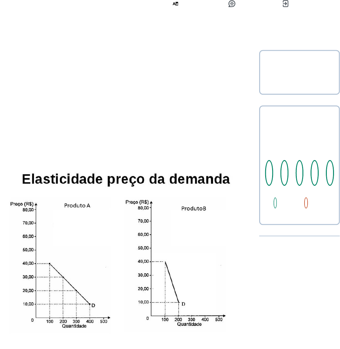 Questão 5 Correta Questão com problema? A sensibilidade a preço mede quanto a demanda (ou procura) de um produto ou serviço varia de acordo com a flutuação do preço. Observe os gráficos a seguir: Fonte: Adaptado de: .Acesso em: 17 jul. 2016. Sobre o tema abordado, considere as seguintes asserções: I - O produto A é mais sensível à alteração de preços do que o produto B, portanto, o produto A possui maior elasticidade. PORQUE II - O produto A possui uma demanda de 100 unidades a um preço de R$ 40. Se o preço cair para para R$ 10, a demanda sobe para 400 unidades, ou seja, um aumento de 400%. Pontuação 20/20 Questões realizadas: 5 de 5 1 2 3 4 5 Acertou Errou Anterior Concluir Correção do exercício da unidade Tamanho da fonte Falar com o tutor Sair da correção Já o produto B, considerando a mesma variação de preço, tem um aumento de apenas 100% na quantidade vendida. A respeito dessas asserções, assinale a alternativa correta: Sua resposta Correta As asserções I e II são verdadeiras, e a II é uma justificativa da I. Comentário A alternativa é correta. O produto A apresenta maior elasticidade na relação preço- demanda do que o Produto B, como apresentado na asserção II.
