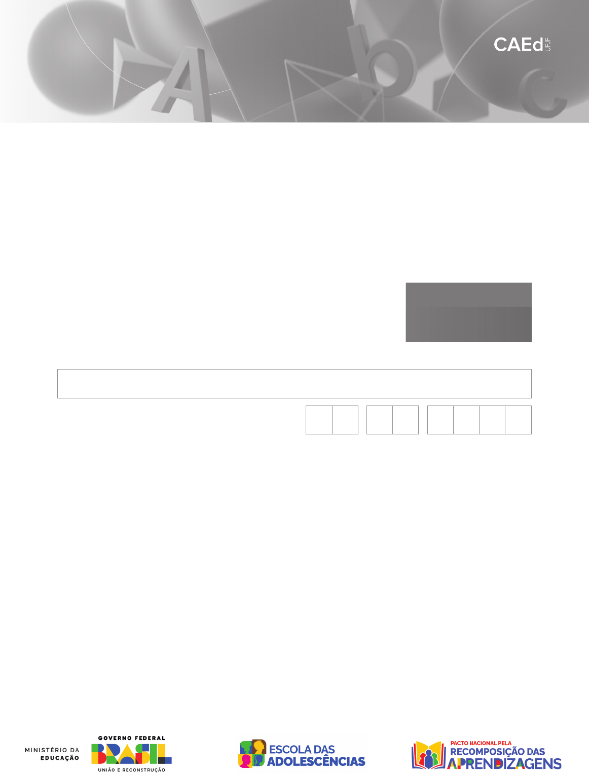 CADERNO Data de Nascimento do(a) estudante Nome do(a) estudante E P 0 6 0 1 AVALIAÇÃO CONTÍNUA DA APRENDIZAGEM NOS ANOS FINAIS - CICLO I Caro(a) estudante, Você está participando da Avaliação Contínua da Aprendizagem nos Anos Finais - Ciclo I - 2024. Sua participação é muito importante para sabermos como está a nossa educação. C Este caderno é composto de questões de Escrita. C Responda com calma, procurando não deixar nenhuma questão em branco. Bom teste! 2024 6º ano do Ensino Fundamental ESCRITA 55885511226611772277 Questão 01 - Produção de uma notícia Situação de correção A B C D E F G Competência I - Registro formal A B C D E Competência II - Coerência temática A B C D E Competência III - Gênero textual A B C D E Competência IV - Coesão A B C D E INSTRUÇÕES Prezado(a) Professor(a), para realizar a correção do teste, consulte o Guia de Correção desta etapa, disponibilizado na plataforma. Verifique as orientações para a avaliação de cada questão. Ao realizar as marcações neste formulário, preencha o círculo completamente e com nitidez, utili- zando caneta esferográfica de tinta azul ou preta. EXEMPLO DE PREENCHIMENTO resposta à questão Y = A resposta à questão Z = C FORMULÁRIO DE CORREÇÃO DO(A) PROFESSOR(A) – 6EF AVALIAÇÃO CONTÍNUA DA APRENDIZAGEM NOS ANOS FINAIS – CICLO I / 2024 Nome do(a) estudante: __________________________________________________________________________________________________ Data de nascimento do(a) estudante: ______ / ______ / ______ Nome da turma: ______________________________________________ Legenda para preenchimento das competências de I a IV FOLHA DE INFORMAÇÕES COMPLEMENTARES - AVALIAÇÃO DE ESCRITA - 4EF E 5EF 1ª Avaliação Formativa 2024 - Diagnóstica Inicial Prezada Professora Aplicadora ou Prezado Professor Aplicador, Para realizar o preenchimento do Formulário de Correção e o lançamento na Plataforma Compromisso Nacional Criança Alfabetizada, das Avaliações de Escrita do 4º e 5º anos do Ensino Fundamental, considere as informações a seguir: CHAVE DE CORREÇÃO Pág. 07 do Guia de correção: Em todas as competências avaliadas, o critério “Nível I” corresponde à opção A, o critério “Nível II” corresponde à opção B, o critério “Nível IIII” corresponde à opção C, o critério “Nível IV” corresponde à opção D, e o critério “Nível V” corresponde à opção E, como ilustrado abaixo: A B C D E Nível I Nível II Nível III Nível IV Nível V ATENÇÃO! Na plataforma Compromisso Nacional Criança Alfabetizada, em cada questão, caso necessário, sinalize uma das duas indicações abaixo: 1ª Indicação Questão em branco Marque esta opção quando nenhum dos aspectos estiver sinalizado no Formulário de Correção. Esta indicação é diferente da Situação de Correção “EM BRANCO” (opção B), prevista na pág. 01 do Guia de correção, em que não há nenhuma resposta do estudante na avaliação. ■ “EM BRANCO” (opção B): para as situações em que não há nenhuma resposta do estudante na avaliação; ■ Questão em branco: para as situações em que não há nenhuma marcação no Formulário de Correção. 2ª Indicação Dupla marcação Marque esta opção quando você observar que no Formulário de Correção há mais de uma marcação. Por exemplo, você observa que no Formulário estão sinalizadas as opções A e B para um mesmo aspecto, conforme imagem abaixo: A B C D E NÍVEL I FOLHA DE INFORMAÇÕES COMPLEMENTARES - AVALIAÇÃO DE ESCRITA - 4EF E 5EF 1ª Avaliação Formativa 2024 - Diagnóstica Inicial Prezada Professora Aplicadora ou Prezado Professor Aplicador, Para realizar o preenchimento do Formulário de Correção e o lançamento na Plataforma Compromisso Nacional Criança Alfabetizada, das Avaliações de Escrita do 4º e 5º anos do Ensino Fundamental, considere as informações a seguir: CHAVE DE CORREÇÃO Pág. 07 do Guia de correção: Em todas as competências avaliadas, o critério “Nível I” corresponde à opção A, o critério “Nível II” corresponde à opção B, o critério “Nível IIII” corresponde à opção C, o critério “Nível IV” corresponde à opção D, e o critério “Nível V” corresponde à opção E, como ilustrado abaixo: A B C D E Nível I Nível II Nível III Nível IV Nível V ATENÇÃO! Na plataforma Compromisso Nacional Criança Alfabetizada, em cada questão, caso necessário, sinalize uma das duas indicações abaixo: 1ª Indicação Questão em branco Marque esta opção quando nenhum dos aspectos estiver sinalizado no Formulário de Correção. Esta indicação é diferente da Situação de Correção “EM BRANCO” (opção B), prevista na pág. 01 do Guia de correção, em que não há nenhuma resposta do estudante na avaliação. ■ “EM BRANCO” (opção B): para as situações em que não há nenhuma resposta do estudante na avaliação; ■ Questão em branco: para as situações em que não há nenhuma marcação no Formulário de Correção. 2ª Indicação Dupla marcação Marque esta opção quando você observar que no Formulário de Correção há mais de uma marcação. Por exemplo, você observa que no Formulário estão sinalizadas as opções A e B para um mesmo aspecto, conforme imagem abaixo: A B C D E NÍVEL III FOLHA DE INFORMAÇÕES COMPLEMENTARES - AVALIAÇÃO DE ESCRITA - 4EF E 5EF 1ª Avaliação Formativa 2024 - Diagnóstica Inicial Prezada Professora Aplicadora ou Prezado Professor Aplicador, Para realizar o preenchimento do Formulário de Correção e o lançamento na Plataforma Compromisso Nacional Criança Alfabetizada, das Avaliações de Escrita do 4º e 5º anos do Ensino Fundamental, considere as informações a seguir: CHAVE DE CORREÇÃO Pág. 07 do Guia de correção: Em todas as competências avaliadas, o critério “Nível I” corresponde à opção A, o critério “Nível II” corresponde à opção 