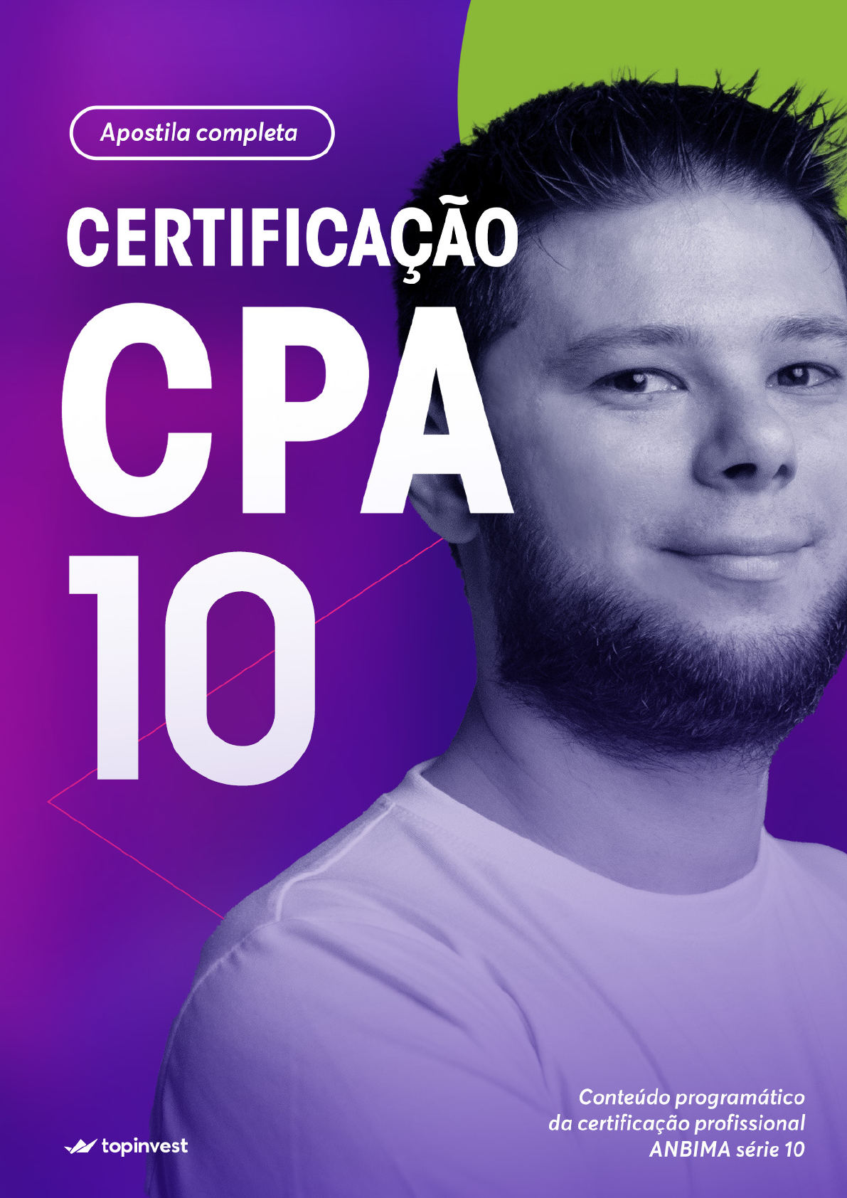 Revisada e Atualizada Janeiro de 2024 Edital da Anbima Conteúdo cobrado apartir de Janeirode2024 https://www.youtube.com/c/Topinvestbrasil?sub_confirmation=1 https://simulados.topinvest.com.br/ https://t.me/topinvest_oficial https://www.youtube.com/c/Topinvestbrasil https://www.facebook.com/TopInvestBrasil/ https://t.me/topinvest_oficial https://www.instagram.com/topinvest_oficial/?hl=pt-br https://www.topinvest.com.br/cursos/trilha-de-sucesso?utm_source=rodape&utm_medium=banner&utm_campaign=apostilas Sumário Módulo 0 14 0 Conhecendo a prova 15 0.1 O que é a ANBIMA? . . . . . . . . . . . . . . . . . . . . . . . . . . . . . . . . . . . . . . . 15 0.2 Afinal, o que é a CPA 10? . . . . . . . . . . . . . . . . . . . . . . . . . . . . . . . . . . . 16 0.3 Há pré-requisitos, Kléber? . . . . . . . . . . . . . . . . . . . . . . . . . . . . . . . . . 18 Módulo 1 20 1 SISTEMA FINANCEIRO NACIONAL 21 1.1 Conselho Monetário Nacional (CMN) . . . . . . . . . . . . . . . . . . . . . . . . . . . . 22 1.2 BACEN - BANCO CENTRAL DO BRASIL . . . . . . . . . . . . . . . . . . . . . . . . . . . . . . 24 1.3 CVM - COMISSÃO DE VALORES MOBILIÁRIOS . . . . . . . . . . . . . . . . . . . . . . . . . . . 27 1.4 SUSEP - SUPERINTENDÊNCIA DE SEGUROS PRIVADOS . . . . . . . . . . . . . . . . . . . . . . 28 1.5 O QUE SÃO INSTITUIÇÕES FINANCEIRAS? . . . . . . . . . . . . . . . . . . . . . . . . . . . . . 29 1.6 ANBIMA - Associação Brasileira das Entidades dos Mercados Financeiros e de Capitais . 30 1.7 CÓDIGOS DE REGULAÇÃO E MELHORES PRÁTICAS DA ANBIMA . . . . . . . . . . . . . . . . . . . 31 1.7.1 CÓDIGO DE REGULAÇÃO E MELHORES PRÁTICAS PARA O PROGRAMA DE CERTIFICAÇÃO CONTINUADA . . . 32 1.7.2 OBJETIVO E ABRANGÊNCIA DO CÓDIGO . . . . . . . . . . . . . . . . . . . . . . . . . . . . 32 1.7.3 ASSOCIAÇÃO E ADESÃO AO CÓDIGO . . . . . . . . . . . . . . . . . . . . . . . . . . . . . . 32 1.7.4 CERTIFICAÇÕES . . . . . . . . . . . . . . . . . . . . . . . . . . . . . . . . . . . . . 33 1.7.5 PRINCÍPIOS GERAIS DE CONDUTA . . . . . . . . . . . . . . . . . . . . . . . . . . . . . . 33 1.7.6 QUALIFICAÇÃO E TREINAMENTO . . . . . . . . . . . . . . . . . . . . . . . . . . . . . . . 35 1.8 BANCO COMERCIAL . . . . . . . . . . . . . . . . . . . . . . . . . . . . . . . . . . . . . . . 35 1.9 BANCOS DE INVESTIMENTOS . . . . . . . . . . . . . . . . . . . . . . . . . . . . . . . . . . 36 1.10 BANCOS MÚLTIPLOS . . . . . . . . . . . . . . . . . . . . . . . . . . . . . . . . . . . . . . 37 1.11 OUTRAS MODALIDADES DE BANCOS . . . . . . . . . . . . . . . . . . . . . . . . . . . . . . . 37 1.12 SOCIEDADES CORRETORAS DE TÍTULOS E VALORES IMOBILIÁRIOS . . . . . . . . . . . . . . . . . 38 1.13 SOCIEDADES DISTRIBUIDORAS DE TÍTULOS E VALORES MOBILIÁRIOS . . . . . . . . . . . . . . . 39 1.14 BOLSA DE VALORES: B3 S.A. -- BRASIL, BOLSA E BALCÃO (FUSÃO DA BM&FBOVESPA COM A CETIP) 40 1.15 SISTEMAS E CÂMARAS DE LIQUIDAÇÃO E CUSTÓDIA. . . . . . . . . . . . . . . . . . . . . . . . 41 1.16 SISTEMA DE PAGAMENTOS BRASILEIRO (SPB) . . . . . . . . . . . . . . . . . . . . . . . . . . 41 https://www.youtube.com/c/Topinvestbrasil https://www.facebook.com/TopInvestBrasil/ https://t.me/topinvest_oficial https://www.instagram.com/topinvest_oficial/?hl=pt-br 1.17 SIMULADO - MÓDULO 1 . . . . . . . . . . . . . . . . . . . . . . . . . . . . . . . . . . . . . 43 1.18 GABARITO - MÓDULO 1 . . . . . . . . . . . . . . . . . . . . . . . . . . . . . . . . . . . . . 46 Módulo 2 47 2 Ética, Regulação e Análise do perfil do investidor 48 2.1 CÓDIGO MELHORES PRÁTICAS DE DISTRIBUIÇÃO DE PRODUTOS DE INVESTIMENTO . . . . . . . . . 48 2.1.1 Definição: . . . . . . . . . . . . . . . . . . . . . . . . . . . . . . . . . . . . . . . 49 2.1.2 Objetivo e Abrangência: . . . . . . . . . . . . . . . . . . . . . . . . . . . . . . . . . 49 2.1.3 Princípios Gerais de Conduta . . . . . . . . . . . . . . . . . . . . . . . . . . . . . . 50 2.1.4 Regras e Procedimentos . . . . . . . . . . . . . . . . . . . . . . . . . . . . . . . . 51 2.1.5 Publicidade (regras gerais, material publicitário, técnico, qualificações e avisos obrigatórios) 52 2.1.6 Atividade de Distribuição de Produtos de Investimento - Regras Gerais (Cap. IX) . . . . . . . 55 2.1.7 Divulgação de informações por Meio Eletrônico . . . . . . . . . . . . . . . . . . . . . 55 2.1.8 Remuneração do Distribuidor (Seção II) . . . . . . . . . . . . . . . . . . . . . . . . . . 56 2.1.9 Know Your Costumer ou conheça o seu cliente . . . . . . . . . . . . . . . . . . . . . . 57 2.1.10 Suitability . . . . . . . . . . . . . . . . . . . . . . . . . . . . . . . . . . . . . . . 57 2.1.11 Selo ANBIMA . . . . . . . . . . . . . . . . . . . . . . . . . . . . . . . . . . . . . . 58 2.1.12 Distribuição de Fundos de Investimento . . . . . . . . . . . . . . . . . . . . . . . . . 58 2.1.13 CÓDIGOS DE REGULAÇÃO E MELHORES PRÁTICAS DA ANBIMA . . . . . . . . . . . . . . . . . . . 59 2.1.14 OBJETIVO E ABRANGÊNCIA DO CÓDIGO . . . . . . . . . . . . . . . . . . . . . . . . . . . . 60 2.1.15 ASSOCIAÇÃO E ADESÃO AO CÓDIGO . . . . . . . . . . . . . . . . . . . . . . . . . . . . . . 61 2.1.16 CERTIFICAÇÕES . . . . . . . . . . . . . . . . . . . . . . . . . . . . . . . . . . . . . 61 2.1.17 PRINCÍPIOS GERAIS DE CONDUTA . . . . . . . . . . . . . . . . . . . . . . . . . . . . . . 61 2.1.18 QUALIFICAÇÃO E TREINAMENTO . . . . . . . . . . . . . . . . . . . . . . . . . . . . . . . 63 2.2 PREVENÇÃO CONTRA A LAVAGEM DE DINHEIRO . . . . . . . . . . . . . . . . . . . . . . . . . 63 2.2.1 CONCEITO DE LAVAGEM DE DINHEIRO - LEGISLAÇÃO . . . . . . . . . . . . . . . . . . . . . . . 64 2.3 RESPONSABILIDADES ADMINISTRATIVAS LEGAIS DE ENTIDADES E PESSOAS FÍSICAS SUJEITAS À LEI E À REGULAMENTAÇÃO . . . . . . . . . . . . . . . . . . . . . . . . . . . . . . . . . . . . . 65 2.3.1 RESPONSABILIDADES E CORRESPONSABILIDADES . . . . . . . . . . . . . . . . . . . . . . . . 66 2.3.2 REDUÇÃO DE PENA . . . . 