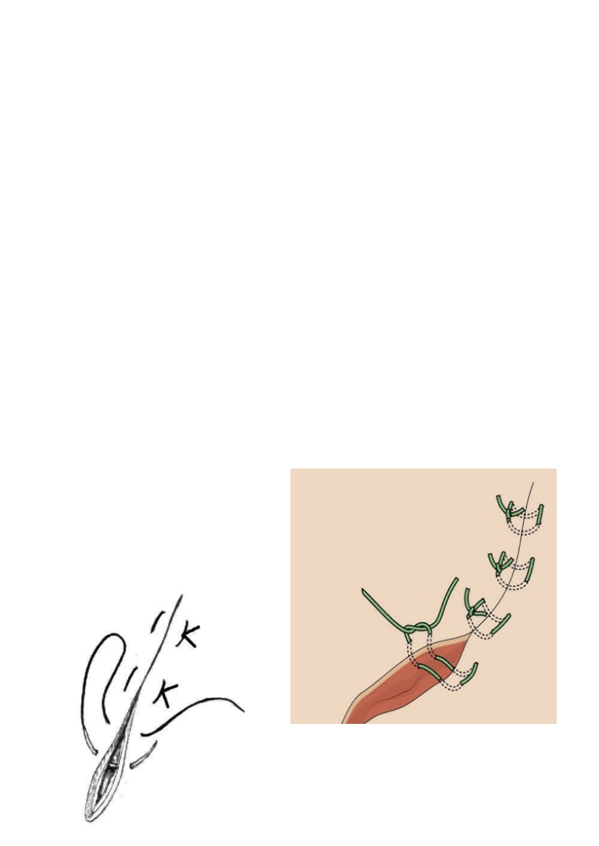 Sutura Wolff Ponto de evaginação tecidual, geralmente utilizado para capsula articular e pele, Não usar em cavidade porque as bordas ficam aparentes. Oferece boa sustentação e o nó não fica sobre a ferida cirúrgica. (pode ser interrompida ou continua) (Fora, dentro, dentro, fora- continua na mesma borda, fora, dentro, dentro fora) É uma sutura de eversão (bordas da ferida para fora) É utilizada em áreas de tensão (pele, músculos, fígado, baço...)