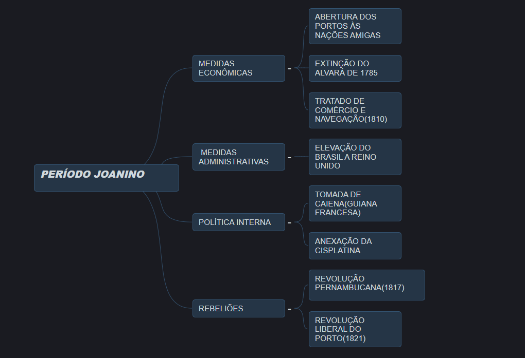 ABERTURA DOS PORTOS ÀS NAÇÕES AMIGAS MEDIDAS EXTINÇÃO DO ECONÔMICAS ALVARÁ DE 1785 TRATADO DE COMÉRCIO E NAVEGAÇÃO(1810) MEDIDAS ELEVAÇÃO DO BRASIL A REINO ADMINISTRATIVAS UNIDO PERÍODO JOANINO TOMADA DE CAIENA(GUIANA FRANCESA) POLÍTICA INTERNA ANEXAÇÃO DA CISPLATINA REVOLUÇÃO PERNAMBUCANA(1817) REVOLUÇÃO LIBERAL DO PORTO(1821)