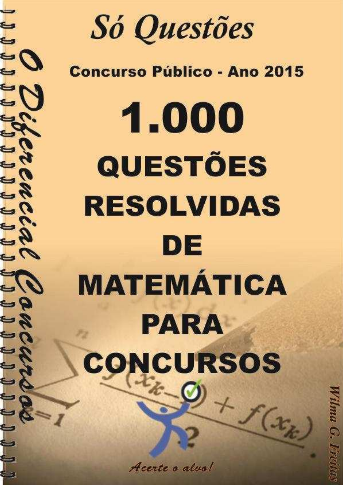 1000 Questões resolvidas de Matemática 1 1000 Questões resolvidas de Matemática 2 Para adquirir a apostila de 1000 Questões Resolvidas de Matemática acesse o site: www.odiferencialconcursos.com.br SUMÁRIO Apresentação.........................................................................................3 Álgebra....................................................................................................4 Conjuntos Numéricos..........................................................................14 Equações, Inequações e Sistemas Lineares.....................................41 Funções.................................................................................................85 Geometria e Trigonometria................................................................110 Matemática Financeira.......................................................................127 Matrizes...............................................................................................137 P.A e P.G.............................................................................................145 Porcentagem, Juros Simples e Descontos.....................................148 Probabilidade e Análise Combinatória............................................219 Razões, Proporções, Escalas e Médias...........................................230 Regra de Três Simples e Compostas...............................................259 Sistema Legal de Medidas.................................................................277 Respostas............................................................................................305 Bibliografia..........................................................................................775 file:///G:/Ano%202014%20até%2009.02.15/Ano%202014/4%20-%20DEMOS%202014/Outras%20apostilas/www.odiferencialconcursos.com.br 1000 Questões resolvidas de Matemática 3 APRESENTAÇÃO O mundo dos concursos públicos tem ganhado uma importância cada vez maior a cada ano que passa. É surpreendente o número de pessoas que concorrem todos os anos às oportunidades de emprego estável, boas condições de trabalho e salários. A disciplina de Matemática é constantemente exigida no conteúdo programático dos editais das principais bancas em diversos concursos públicos. Convém saber que é a prática de exercícios que fixa o conhecimento e prepara o candidato para reconhecer as armadilhas preparadas pelas bancas organizadoras dos certames, pois muitas vezes conhecer determinado assunto não é suficiente para assimilar a forma como este conhecimento é cobrado nas provas. Diante disso, estamos disponibilizando essa apostila com 1.000 Questões Resolvidas de Matemática para Concursos a qual abrange todo o conteúdo exigido nos editais. Nada melhor para aprofundar o conhecimento do que resolver exercícios, principalmente quando estes possuem respostas com comentários objetivos e de fácil compreensão. A quantidade de questões juntamente com a qualidade, rapidez no envio e ao compromisso de conduzir o candidato ao sucesso representam todo nosso diferencial. Wilma G. Freitas 1000 Questões resolvidas de Matemática 4 QUESTÕES 1. Um certo número X, formado por dois algarismos, é o quadrado de um número natural. Invertendo-se a ordem dos algarismos desse número, obtém-se um número ímpar. O valor absoluto da diferença entre os dois números (isto é, entre X e o número obtido pela inversão de seus algarismos) é o cubo de um número natural. A soma doa algarismos de X é, por conseguinte, igual a: a) 7 b) 10 c) 13 d) 9 e) 11 2. Um número inteiro, cujo triplo do quadrado excede a esse número de 70 unidades. a) x = 3 b) x = 8 c) x = 9 d) x = 5 e) x = 4 3. Dada as funções f(x) = 2x + 3 e g(x) = 3x – 1, calcule f(5) + g(4). a) 25 b) 34 c) 24 d) 26 e) 14 4. Sendo 18 = 18 , então K! vale: K k + 4 a) 120 b) 720 c) 840 d) 5 040 e) 40 320 1000 Questões resolvidas de Matemática 5 5. Uma pessoa possui três capitais de $ 600,00; $ 1 000,00 e $ 800,00 e os colocou à mesma taxa durante 9,5 e 8 meses, respectivamente. Calcule o tempo que deveria ser empregada a soma desses capitais, para que os juros produzidos fosse igual à soma dos juros daqueles capitais nos prazos dados. a) 6 meses b) 9 meses c) 5 meses d) 7 meses e) 8 meses 6. Dadas as matrizes A = 1 2 , B = 2 e X = a . 0 1 1 b Assinale os valores de a e b de modo que A.x = B. a) a = 0, b = 1 b) a = 1, b = 0 c) a = 0, b = 0 d) a = 1, b = 1 e) a = 0, b = -1 7. Os termos da equação 5 + x + ... + 30 = 105 formam uma P.A. Então, valor de x é: a) 6 b) 15 c) 15/2 d) 10 e) 5/2 8. Se uma Caderneta de Poupança, em regime de capitalização composta, apresentou um rendimento de 12% num mês e 15% no mês seguinte, o rendimento total desse bimestre foi de: a) 30% b) 28,8% c) 28% d) 27,32% e) 27% 1000 Questões resolvidas de Matemática 6 9. Na realização de um concurso onde foram dadas provas de matemática com peso 2, contabilidade com peso 3 e português com peso 4; e um candidato obteve 5 em matemática, nota 6 em contabilidade e 2 em português; a sua média aritmética ponderada será: a) 2 b) 8 c) 6 d) 4 e) 3 10. Se 15 operários gastam 3 horas para transportar 3 000 tijolos numa distância de 2 km; quantas horas gastarão 10 operários para transportarem 2 000 tijolos, numa distância de 3 km? a) 3h 20min b) 2h 30min c) 4h 30min d) 3h 15min e) 2h 15min 11. Desejo cimentar um terreno retangular de 35 metros de frente por 62 metros de fundo. No centro desse terreno vai ser construída uma piscina quadrada de 15 metros de lado. Calcule quantos sacos de cimento serão utilizados, sabendo-se que com uma saca cimenta-se 5m2. a) 289 b) 389 c) 189 d) 89 e) 489 1000 Questões resolvidas de Matemática 7 RESPOSTAS 1. Resposta: D Resolução Os números possíveis são: 16, 25, 36, 49, 64 e 81 (os únicos quadrados perfeitos menores que 100, ou seja, com dois algarismos). O enunciado diz que, invertendo-se o