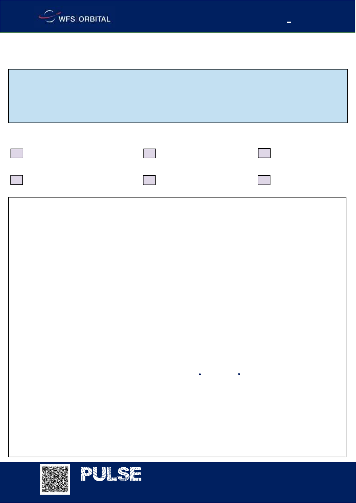 CHECK Termo de Consentimento para Realização do Exame Toxicológico de Substância Psicoativa ETSP Viu algo? Diga Algo! F-SMT-001-01 | Efetividade: Maio / 2023 Safety and Security nossa prioridade! POLÍTICA DA WFS|ORBITAL ANEXO 1 WFS|ORBITAL Serviços Auxiliares do Transporte Aéreo LTDA Nome do funcionário: ____________________________________________________________________________________________ Data de admissão: _______________________________________________________________________________________________ Função / Atividade ARSO: ________________________________________________________________________________________ TIPOS DE ETSP (EXAME TOXICOLÓGICO) INICIAL ALEATÓRIO PÓS-ACIDENTE RETORNO AO TRABALHO SUSPEITA JUSTIFICADA ACOMPANHAMENTO Em atendimento ao disposto no RBAC Nº 120 e normativas complementares da ANAC e no Programa de Prevenção ao Uso de Substâncias Psicoativas (PPSP) da Empresa, destacamos que a realização de Exames Toxicológicos são requisitos obrigatórios para as pessoas que desenvolvem suas atividades laborais nas Áreas Restritas de Segurança Operacional (ARSO) de um aeroporto. Assim sendo, declaro estar ciente deste requisito obrigatório, sem o qual não será possível desenvolver as atividades operacionais pela WFS|ORBITAL nos aeroportos. Eu,____________________________________________________________________________________________________________, CPF Nº _______________________________________, ciente da necessidade de se realizar o Exame Toxicológico de Substância Psicoativa (ETSP) para trabalhar nas Áreas Restritas de Segurança Operacional (ARSO) de um aeroporto, autorizo a sua realização, sempre que necessária para atender a Política e o PPSP da WFS|ORBITAL, bem como atender os requisitos normativos da ANAC, exigidos para pessoas que desenvolvam suas atividades de trabalho em Áreas de Risco a Segurança Operacional (ARSO) dos Aeroportos e Aeródromos brasileiros conforme determina o RBAC 120; Declaro ainda estar ciente de que o PPSP e a Política da WFS|ORBITAL sobre este tema, foram construídos com bases nas exigências normativas da ANAC. Os resultados do ETSP realizados pela WFS|ORBITAL são de caráter RESERVADO e não serão divulgados sob nenhuma hipótese e estarão à disposição do empregado para consulta, caso tenha interesse, mediante a solicitação formal, conforme procedimentos estabelecidos no PPSP da empresa, aprovado pela ANAC. Local: ______________________________________________________________________________ Data: _____ /_____ /________ . Assinatura do candidato e/ou colaborador (ARSO): _______________________________________________________________