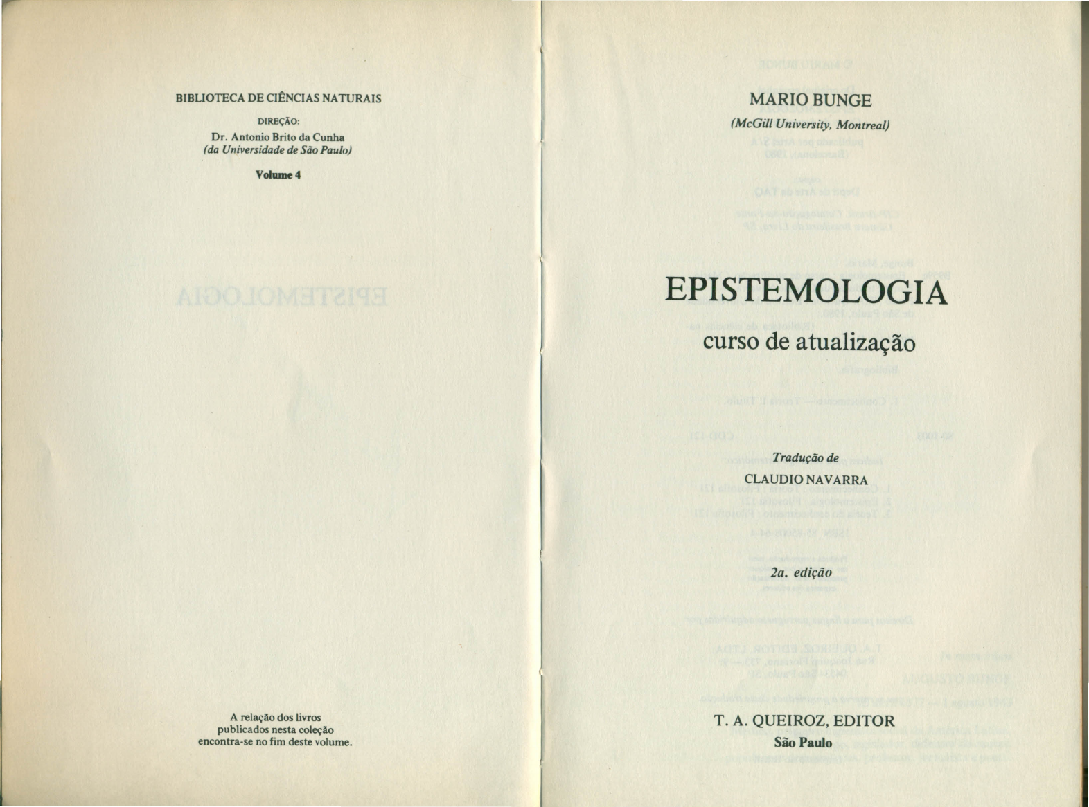BIBLIOTECA DE CIÊNCIAS NATURAIS DIREÇÃO: Dr. Antonio Brito da Cunha (da Universidade de São Paulo) Volume 4 A relação dos livros publicados nesta coleção encontra-se no fim deste volume. MARIO BUNGE (McGill University, Montreal) EPISTEMOLOGIA curso de atualização Tradução de CLAUDIO NAVARRA 2a. edição T. A. QUEIROZ, EDITOR São Paulo 80-1003 CDD-121 In memoriam © MARIO BUNGE Do original espanhol EPISTEMOLOOÍA Curso de Actualizaciôn publicado por Ariel SI A (Barcelona), 1980 capa: Depts de Arte da TAQ CIP-Brasil. Catalogação-na-Fonte Câmara Brasileira do Livro, SP Bunge, Mario. B95ge Epistemologia : curso de atualização I Mario Bunge; tradução de Claudio Navarra. - São Paulo: T.A. Queiroz : Editora da Universidade de São Paulo, 1980. (Biblioteca de ciências na- turais ; v. 4) Bibliografia. I. Conhecimento - Teoria I. Título. Índices para catálogo sistemático: I. Conhecimento: Teoria: Filosofia 121 2. Epistemologia: Filosofia 121 3. Teoria do conhecimento: Filosofia 121 ISBN 85-85008-64-4 Proibida a reprodução, mes- mo parcial, e por qualquer processo, sem autorização expressa dos editores. Direitos para a língua portuguesa adquiridos por T.A. QUEIROZ, EDITOR, LTDA. Rua Joaquim Floriano, 733 - 9~' 04534 São Paulo, SP AUGUSTO BUNGE 2S abril 1877 -1 agosto 1943que se reserva a propriedade desta tradução. 1987 Médico, primeiro higienista social da América Latina, sociólogo, legislador, defensor de causas populares e democráticas, professor, jornalista e poeta.Impresso no Brasil sUMÁRIo Prefácio............................................ 1 I. INTRODUÇÃO Capítulo 1 - QUE É. E PARA QUE SERVE A EPISTEMOLOGIA? 5 1. A recente eclosão da Epistemologia . . . . . . . . . . . . . . . . . . . . . 5 2. O período clássico da Epistemologia . . . . . . . . . . . . . . . . . . . . 6 3. A profissionalização da Epistemologia . . . . . . . . . . . . . . . . . . 7 4. Começa a Epistemologia artificial. . . . . . . . . . . . . . . . . . . . . . 8 S. Um exemplo de artificialismo: o probabilismo exagerado. . . 9 6. Outro exemplo: a teoria semântica da informação. . . . . . . . . 10 7. Em direção ao renascimento epistemológico . . . . . . . . . . . . . . 12 8. Ramos da nova Epistemologia . . . . . . . . . . . . . . . . . . . . . . . . . 15 9. Epistemologias regionais. . . . . . . . . . . . . . . . . . . . . . . . . . . . .. 16 10. Utilidade da nova Epistemologia . . . . . . . . . . . . . . . . . . . . . . . 17 Bibliografia . . . . . . . . . . . . . . . . . . . . . . . . . . . . . . . . . . . . . . . . . 18 Capítulo 2 - QUE É) E QUAL A APLICAÇÃO DO MÉTODO CIENTIFICO? 19 1. Das origens à atualidade. . . . . . . . . . . . . . . . . . . . . . . . . . . . . . 19 2. Comprovação empírica e teórica. . . . . . . . . . . . . . . . . . . . . . . 21 3. Formalização atualizada do método científico. . . . . . . . . . . . 24 4. Aplicação do método científico nas ciências sociais. . . . . . . . 26 s. Exemplo: sociologia da tecnologia . . . . . . . . . . . . . . . . . . . . . . 28 6. Universalidade do método científico. . . . . . . . . . . . . . . . . . . . 32 7. Conclusões 33 Bibliografia . . . . . . . . . . . . . . . . . . . . . . . . . . . . . . . . . . . . . . . . . 35 11. FILOSOFIA DAS CIÊNCIAS FORMAIS Capítulo 3 - NATUREZA DOS OBJETOS CONCEITUAIS 39 1. Construtos 41 2. Existência material e existência conceitual . . . . . . . . . . . . . . . 44 3. Existência e quantificação . . . . . . . . . . . . . . . . . . . . . . . . . . . . 47 4. Conclusões 49 Bibliografia . . . . . . . . . . . . . . . . . . . . . . . . . . . . . . . . . . . . . . . . . 50 Capítulo 4 - QUE É UMA PROPOSIÇÃO? . . . . . . . . . . . . . . . . . . 51 1. Proposição, oração e enunciação . . . . . . . . . . . . . . . . . . . . . . . 52 2. Tentativa de redução de proposições a orações e destas a enunciações 54 3. Significado de uma proposição. . . . . . . . . . . . . . . . . . . . . . . . . 56 4. Caracterização das proposições. . . . . . . . . . . . . . . . . . . . . . . . 58 S. Existem proposições 61 Bibliografia . . . . . . . . . . . . . . . . . . . . . . . . . . . . . . . . . . . . . . . . . 63 m. FILOSOFIA DA FÍSICA Capítulo 5 - REFERÊNCIA E CONTEÚDO DE UMA TEORIA FísICA . 1. Referência . 2. Conteúdo . 3. Conclusões : Bibliografia . ••• 67 67 68 70 71 '\ 73 73 75 77 78 79 80 82 82 Capítulo 6 - PROBLEMAS FILOSÓFICOS DA MECÂNICA QUÂNTICA . 1. A tese fenomenista da interpretação de Copenhague . 2. A equação de Schrõdinger . 3. Autovalores . 4. Função de estado . S. Desigualdade de Heisenberg . 6. Interterminismo . 7. Conclusão . Bibliografia . IV. FILOSOFIA DA BIOLOGIA Capítulo 7 - O CONCEITO DE ORGANISMO. . . . . . . . . . . . . . . 87 1. Um conceito científico-filosófico. . . . . . . . . . . . . . . . . . . . . . . 87 2. Sistemas 88 3. Quimiossistemas e biossistemas . . . . . . . . . . . . . . . . . . . . . . . . 91 4. A fronteira entre o inanimado e o vivente. . . . . . . . . . . . . . . . 94 S. Conclusão .. . . . . . . . . . . . . . . . . . . . . . . . . . . . . . . . . . . . . . . . . 97 Bibliografia . . . . . . . . . . . . . . . . . . . . . . . . . . . . . . . . . . . . . . . . . . 98 Capítulo 8 - BIOFILOSOFIA . . . . . . . . . . . . . . . . . . . . . . . . . . . . . . 99 1. Uma disciplina indisciplinada e atrasada. . . . . . . . . . . . . . . . 99 2. Função e valor. . . . . . . . . . . . . . . . . . . . . . . . . . . . . . . . . . . . . . 101 3. Meta e plano. . . . . . . . . . . . . . . . . . . . . . . . . . . . . . . . . . . . . . . . 103 4. Resultantes e emergentes. . . . . . . . . . . . . . . . . . . . . . . . . . . . . 105 S. Hierarquia ou estrutura de níveis. . . . . . . . . . . . . . . . . . . . . . . 107 6. Conclusão .. . . . . . . . . . . . . . . . . . . . . . . . . . . . . . . . . . . . . . . . . 111 Bibliografia . . . . . . . . . . . . . . . . . . . . . . . . . . . . . . . . . . . . . . . . . 111 
