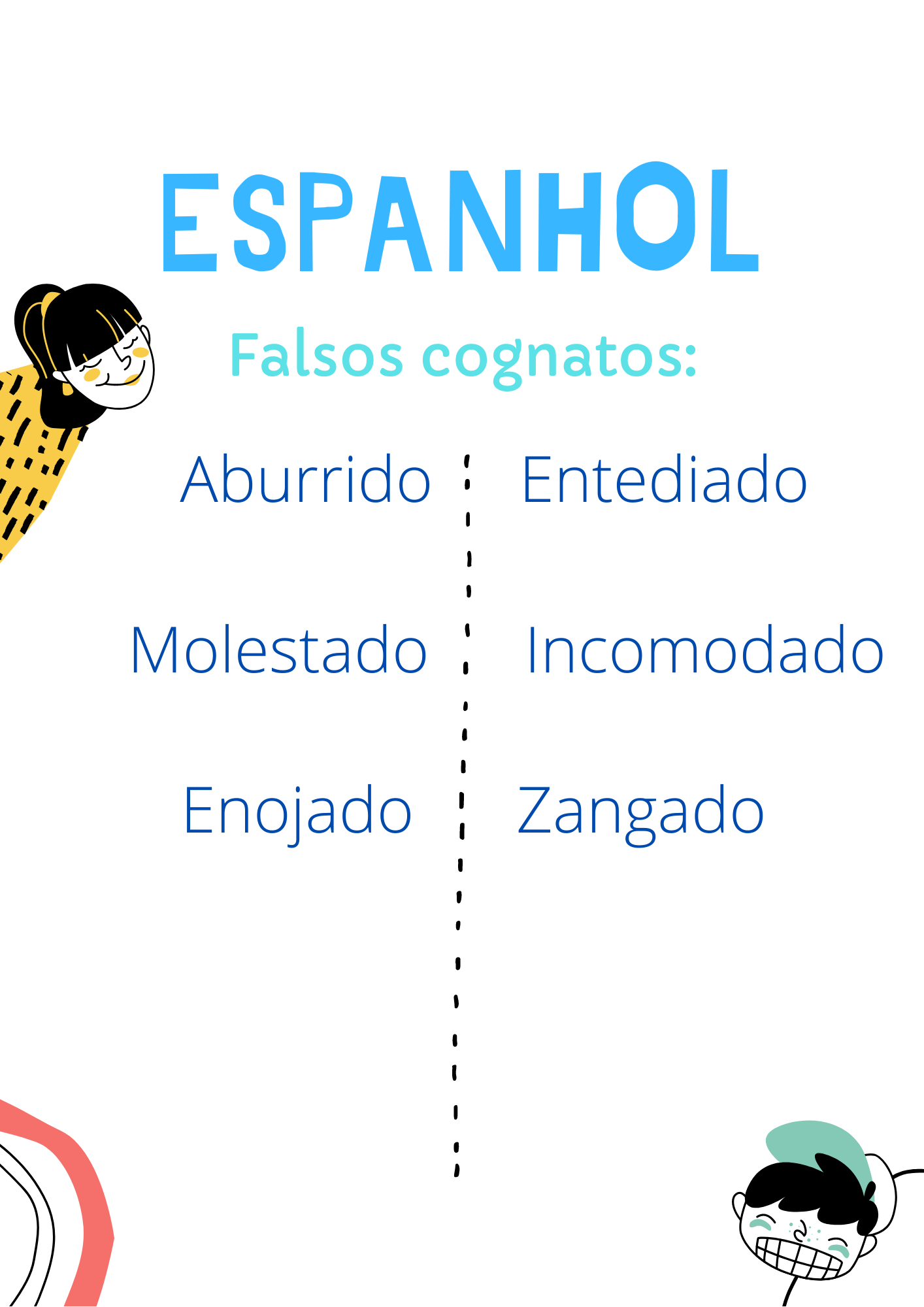 ESPANHOL Falsos cognatos: Aburrido : Entediado Molestado Incomodado Enojado Zangado