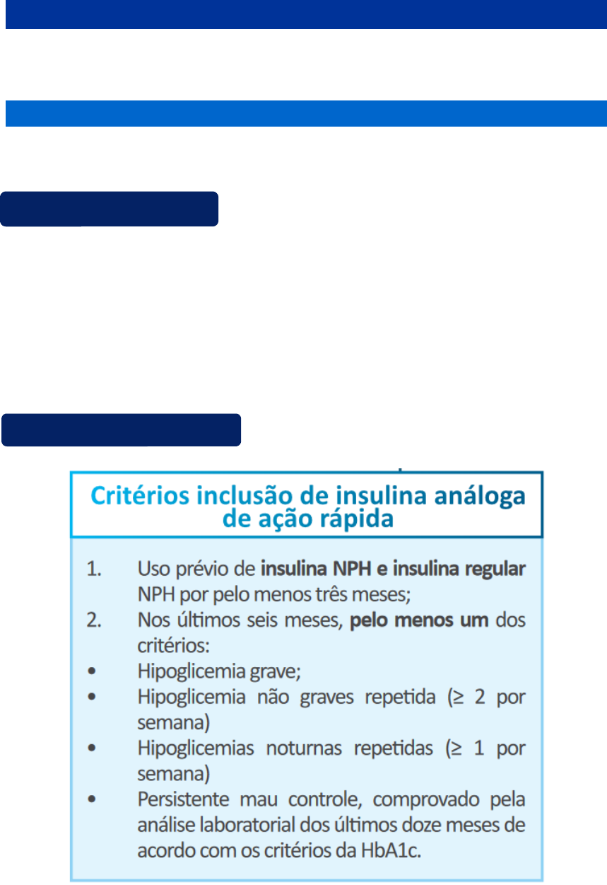 INSULINA ASPARTE Diabetes Mellitus Tipo I Informações gerais Dosagem / Apresentação: 100 U/mL (Tubetes de 3 mL) CIDs contemplados: E10.0, E10.1, E10.2, E10.3, E10.4, E10.5, E10.6, E10.7, E10.8, E10.9 Observações: Conservar em temperatura de 2ºC a 8ºC. Critérios de inclusão Pacientes com DM1 já em uso de análogo de insulina Para serem incluídos neste Protocolo, os pacientes com diagnóstico de DM1 que já fazem uso de insulina análoga deverão cumprir os critérios de manutenção de tratamento. Abertura da solicitação 1. Cópia de documentos pessoais do paciente: · Cópia da Carteira de Identidade (ou Documento de Identificação com foto); · Cópia do Cadastro de Pessoa Física (CPF); · Cópia do Cartão Nacional de Saúde (CNS); · Cópia do Comprovante de Residência; 2. Laudo de Solicitação, Avaliação e Autorização de Medicamentos (LME) do Componente Especializado da Assistência Farmacêutica original, preenchido de forma completa e legível pelo médico responsável pelo atendimento ao paciente. ATENÇÃO: O LME terá 90 (noventa) dias de validade para solicitação do medicamento, a partir da data de seu preenchimento pelo médico solicitante. 3. Prescrição de medicamento original, em duas vias, elaborada de forma completa e legível, pelo médico responsável pelo atendimento ao paciente. Uma via será encaminhada junto ao processo (não será devolvida) e outra fica com o paciente. ATENÇÂO: A prescrição médica deve conter a DENOMINAÇÃO COMUM BRASILEIRA do medicamento (INSULINA ASPARTE 100 UI/ML) atendendo a legislação vigente, tanto para casos novos quanto para demandas em atendimento. 4. Declaração autorizadora autorizando os servidores a retirar o medicamento na unidade responsável. 5. Requerimento de medicamentos preenchido pelo paciente ou responsável. Renovação (a cada 6 meses) 1. Laudo de Solicitação, Avaliação e Autorização de Medicamentos (LME) do Componente Especializado da Assistência Farmacêutica original, preenchido de forma completa e legível pelo médico do paciente. ATENÇÃO: O CID SINALIZADO NO LME DA RENOVAÇÃO DEVERÁ SER O MESMO DA ABERTURA DA SOLICITAÇÃO. O LME terá 90 (noventa) dias de validade para solicitação do medicamento, a partir da data de seu preenchimento pelo médico solicitante. 2. Prescrição de medicamento original, em duas vias, elaborada de forma completa e legível, pelo médico. Uma via será encaminhada junto ao processo (não será devolvida) e outra fica com o paciente. 3. Requerimento de medicamentos preenchido pelo paciente ou responsável. Outras informações ONDE ACOMPANHAR O ANDAMENTO DA SOLICITAÇÃO A análise do processo de abertura ou renovação pode ser consultada por vocês pelo MG App ou pelo Portal MG. MG App (Android) https://www.google.com/url?sa=t&source=web&rct=j&opi=89978449&url=https://play.google.com/store/apps/details%3Fid%3Dbr.gov.prodemge.projetosocialminas%26hl%3Dpt_BR&ved=2ahUKEwjIkfLcs6KHAxWzr5UCHQeHCX8QFnoECBQQAQ&usg=AOvVaw2eZ4RKR5i3-lXqzTowQwcc MG App (iOS) https://www.google.com/url?sa=t&source=web&rct=j&opi=89978449&url=https://apps.apple.com/br/app/mg-app/id1057649491&ved=2ahUKEwjIkfLcs6KHAxWzr5UCHQeHCX8QFnoECBAQAQ&usg=AOvVaw2mxE8qQUWjZC6_6GxBmOEt Portal MG (https://cidadao.mg.gov.br). POSOLOGIA E CÁLCULO Atenção à posologia da insulina. ⚠️ A quantidade de canetas que consta no Laudo para Solicitação de Medicamentos (LME) tem que ser IGUAL à da receita médica. Cada caneta possui o total de 300UI. Então é necessário multiplicar a dose diária por 30 (dias). Por exemplo: Maria faz uso de 10UI de insulina de manhã e 20UI à noite. Logo, Maria utilizará 30UI por dia. Cálculo: 30UI (insulina) x 30 (dias) = 900UI de insulina por mês. Se cada caneta tem 300UI, preciso utilizar 3 canetas ao mês. Caso não dê número inteiro, arredonda-se para cima. Exemplo: 22UI (insulina) x 30 (dias) = 660 UI por mês. 660 UI ÷ 300 UI (refil) = 2,2 ARREDONDA-SE PARA 3. ATENTEM-SE PARA DOSE MÉDIA DIÁRIA É necessário colocar a dose média diária quando é orientado a fazer CORREÇÕES ao aplicar a insulina. Exemplo: O médico prescreveu para Ana administrar 30UI de Asparte pela manhã, porém se a glicemia capilar for acima de 180mg/dL, Ana deveria administrar 2UI a mais, totalizando 32UI. Agora, se a glicemia capilar for abaixo de 180 mg/dL, deve administrar 30UI fixas. Sabendo que tem dias que a glicemia de Ana pode oscilar acima de 180mg/dL e outros não, o médico deve levar em consideração que caso a SES distribua somente as 30UI iniciais, irá faltar insulina. Dessa forma, a DOSE MÉDIA DIÁRIA seria 32UI. QUANTIDADE PRESCRITA Nos meses em que receberem canetas/refis a MENOS do que prescrito, é porque a Secretaria Estadual de Saúde (SES) faz o cálculo das sobras. Por exemplo, a caneta vem com 300UI. Caso faça uso apenas de 260 UI por mês, restarão 40UI naquela caneta. Então a SES vai encaminhar apenas a quantidade de canetas/refis para completar o tratamento no próximo mês. Isso não ocorre quando a dose mensal corresponde a múltiplos de 300. (300, 600, 900, 1200, 1500, 1800, 2100, 2400...). DOCUMENTOS E MODELOS DE PREENCHIMENTO DOS FORMULÁRIOS Dr. Beltrano de Tal CRM-MG 1235 O RESPONSÁVEL POR PREENCHER O CAMPO 18 DEVERÁ ASSINAR O CAMPO 23 O CID NAS RENOVAÇÕES DEVE SER O MESMO DA ABERTURA EM CASO DE DÚVIDAS, PERGUNTE AO FARMACÊUTICO OU CONSULTE NO SITE GOV CIDADÃO. COLOCAR SOMENTE O NÚMERO NÃO COLOCAR QUANTIDADE EM UNIDADES (300UI) NEM LETRAS (1 FR OU 1TB) LME PARA QUEM É CONSIDERADO CAPAZ O RESPONSÁVEL POR PREENCHER O CAMPO 18 DEVERÁ ASSINAR O CAMPO 23 X O CID NAS RENOVAÇÕES DEVE SER O MESMO DA ABERTURA EM CASO DE DÚVIDAS, PERGUNTE AO FARMACÊUTICO OU CONSULTE NO SITE GOV CIDADÃO. COLOCAR SOMENTE O NÚMERO NÃO COLOCAR QUANTIDADE EM UNIDADES (300UI) NEM LETRAS (1 FR OU 1TB) Dr. Beltrano de Tal CRM-MG 1235 LME PARA QUEM É CONSIDERADO INCAPAZ MODELO – RECEITA Marca ou símbolo do estabelecimento ou serviço de 