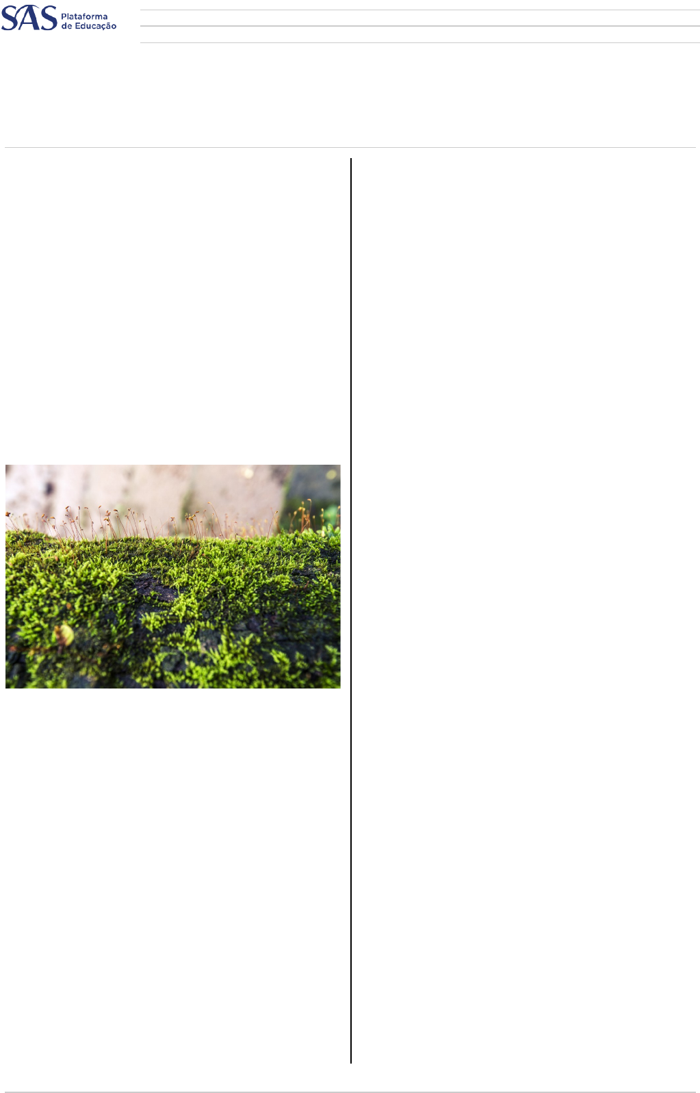 projeto medicina Data: / / Aluno: Turma: Professor: Modelo: 1 2 3 4 INSTRUÇÕES PARA REALIZAR A AVALIAÇÃO 1. Verifique se sua prova está completa (questões e páginas). 2. Leia com calma e atenção as questões solicitadas, respondendo-as com clareza. 3. Todas as respostas deverão ser escritas a caneta no cartão-resposta. 4. Nas questões descritivas das disciplinas exatas, os cálculos serão obrigatórios. 5. Escreva com letra legível, coloque seu nome e revise sua prova antes de entregá-la. INSTITUTO NOSSA SENHORA DA PIEDADE Questão 01 O processo de desaparecimento de animais em um ambiente, conhecido por defaunação, pode causar um dano profundo aos ecossistemas. Em florestas tropicais, muitas árvores dependem de animais como macacos e antas. Na agricultura, a produção de muitas culturas depende das abelhas, que estão desaparecendo. Os animais citados no texto, mamíferos e abelhas, atuam, respectivamente, A) Na dispersão das sementes e na polinização. B) Na dispersão das sementes e no controle de pragas. C) Na polinização e na dispersão das sementes. D) No controle de pragas e na dispersão das sementes. E) No controle de pragas e na polinização. Questão 02 ©Shutterstock/c1a1p1c1o1m1 Caso o tronco retratado na imagem seja colocado em um ambiente com baixa quantidade de chuva e alta incidência de luz solar, a reprodução dos indivíduos que se encontram sobre ele A) não será influenciada. B) será prejudicada, pois, para ocorrer a fecundação, é necessária água, uma vez que os gametas são flagelados. C) será prejudicada, pois os indivíduos sofrerão desidratação. D) será facilitada, pois a maior incidência de sol permite maior taxa de fotossíntese. E) será facilitada, pois, em ambiente seco, haverá menor competição pelos nutrientes disponíveis. Questão 03 As briófitas são pequenas plantas herbáceas (a maioria até 10 cm) representadas por três filos: hepáticas (filo Hepatophyta), musgos (filo Bryophyta) e antóceros (filo Anthocerophyta). Os pesquisadores acreditam que as hepáticas, os musgos e os antóceros foram as primeiras linhagens a divergirem do ancestral comum das plantas terrestres. Dessa forma, são consideradas as pioneiras na transição do ambiente aquático para o terrestre. No mundo, são conhecidas cerca de 17.900 espécies e, no Brasil, aproximadamente 2.950 espécies. A característica que impede que esses vegetais consigam atingir uma grande estatura é A) a ausência de um gametófito como fase dominante. B) a ausência de vasos condutores. C) a presença de uma semente que protege o embrião. D) a presença de um gameta masculino flagelado. Questão 04 Um estudo realizado pelo Departamento de Botânica da Universidade Federal de Juiz de Fora identificou 16 espécies de briófitas no Parque Halfeld, uma praça no movimentado centro urbano de Juiz de Fora, uma das maiores cidades do estado de Minas Gerais. Esse resultado ressalta as cidades como repositórios de biodiversidade. Sobre as Briófitas é CORRETO afirmar: A) Apresentam tecidos para o transporte de água e sais minerais. B) O embrião está protegido pela semente. C) A fase dominante do ciclo de vida é a diplóide. D) Foi o primeiro grupo de plantas a habitar o ambiente terrestre. E) Não dependem da água para a sua reprodução. Questão 05 No período reprodutivo das samambaias, formam-se pontinhos escuros, na superfície inferior das folhas, denominados soros. Esses soros são formados para a produção de A) Esporos, pelos esporângios. B) Anterozoides, pelos arquegônios. C) Oosferas, pelos esporângios. D) Esporos, pelos anterídios. Questão 06 Relativo aos diferentes grupos vegetais, analise as afirmativas abaixo e assinale a alternativa correta. A) As samambaias e avencas são classificadas como Pteridófitas e apresentam como características presença de vasos condutores e ausência de sementes. B) As coníferas são plantas denominadas Gimnospermas e apresentam como características presença de frutos e ausência de vasos condutores. C) Os ciclos de vida das Angiospermas e Gimnospermas se assemelham, pois em ambos os grupos há produção de estróbilos para garantir a reprodução. D) Os musgos do gênero Sphagnum formam as turfeiras e pertencem às Briófitas, sendo caracterizados pela presença de vasos condutores e se desenvolverem em locais secos. E) Os estames e os carpelos são os elementos férteis das flores nas Gimnospermas, e podem variar em número, tamanho e posição. Questão 07 Fuvest-SP As células do gametófito de uma briófita de ciclo normal têm 30 cromossomos. Quantos cromossomos serão encontrados no esporo, na haste, na cápsula e no anterozoide? A) 30 60 – 60 – 30 B) 30 60 – 15 – 45 C) 60 30 – 30 – 30 D) 15 30 – 60 – 60 E) 30 30 – 30 – 30 Questão 08 Nas pteridófitas, como em certas samambaias, estão presentes, na face inferior das folhas, pequenas estruturas circulares, enfileiradas, esverdeadas ou marrons denominadas soros. Cada soro está constituído por um conjunto de esporângios, geralmente recobertos por uma estrutura que desempenha uma função de proteção. A essa estrutura denomina-se A) Caliptra. B) Indúsio. C) Folíolo. D) Protalo. E) Protonema. Questão 09 O esquema reproduz, de forma simplificada, o ciclo reprodutivo das pteridófitas. Considerando-se as informações expressas na ilustração e os conhecimentos a respeito da reprodução desse grupo vegetal, é correto afirmar: A) Na etapa sexuada 1, ocorre a liberação dos esporos de dentro dos ovários. B) Na etapa 2, se caírem em um substrato adequado, os esporos germinam, dando origem ao embrião. C) Na etapa 3, ocorre produção de gametas masculinos e femininos que se unem, originando o prótalo hermafrodita. D) No esporângio das plantas, através de meiose, as células diploides são transformadas em haploides. E) Na fase assexuada, as paredes do anterídio se rompem, liberando os anterozoides, que nadam até o
