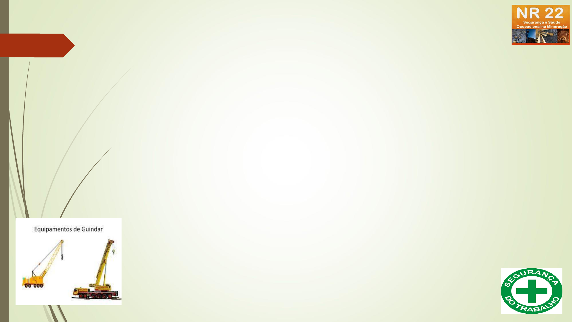 NORMA REGULAMENTADORA 22 SEGURANÇA E SAÚDE OCUPACIONAL NA MINERAÇÃO 22.12 Equipamentos de Guindar 22.12.2 Poços com guincho devem ser equipados, no mínimo, com as seguintes instalações e dispositivos: a) bloqueios que evitem o acesso indevido ao poço; b) portões para acesso à cabine ou gaiola em cada nível; c) dispositivos que interrompam a corrente elétrica do guincho quando a cabine ou gaiola, na subida ou na descida, ultrapasse os limites de velocidade e posicionamento permitidos; d) sinal mecanizado ou automático em cada nível do poço; e) sistema de telefonia integrado com os níveis principais do poço, com o guincho e a superfície; f) sistema de sinalização sonora e luminosa ou através de rádio ou telefone, que permita comunicação ao longo de todo o poço para fins de revisão e emergência.